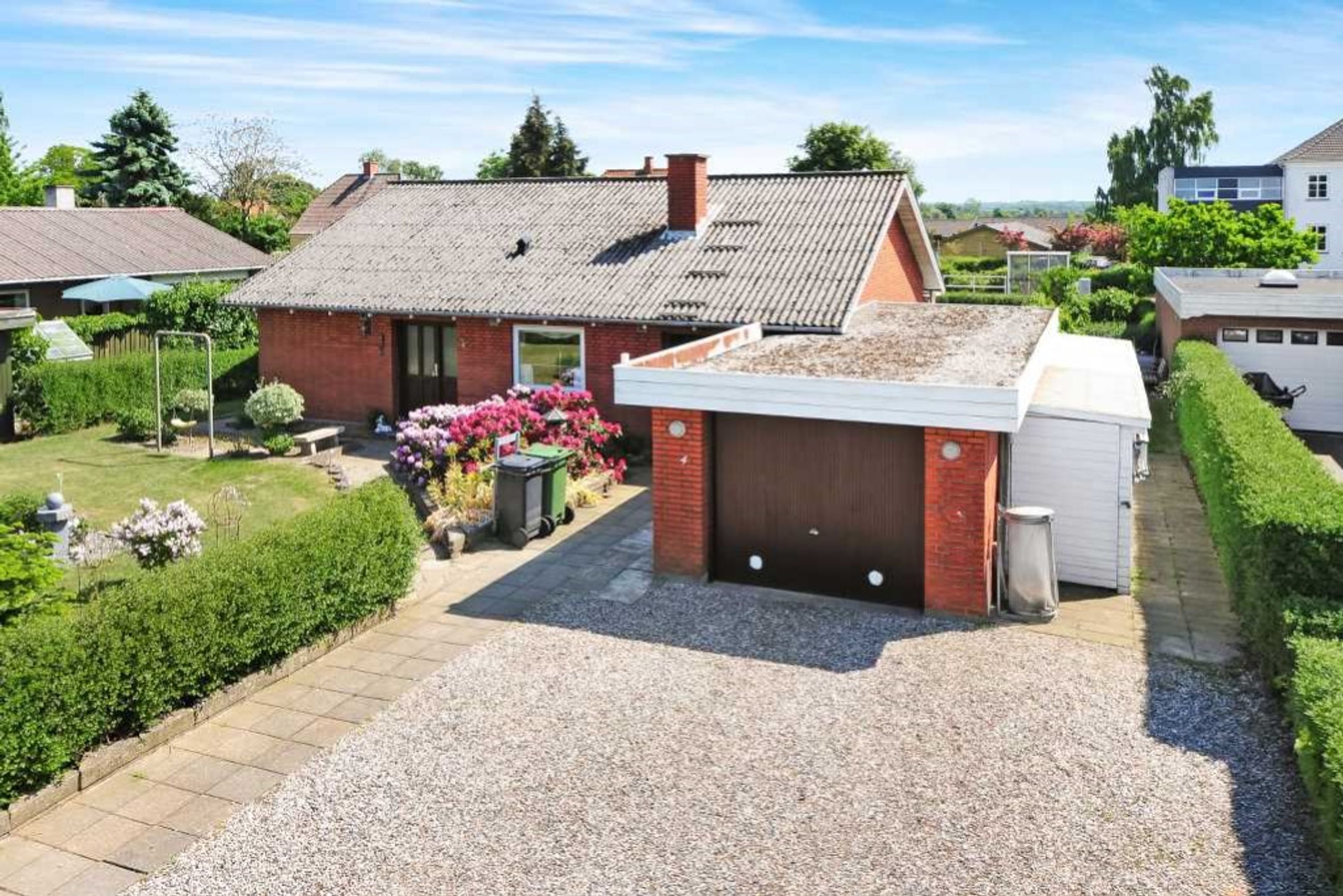 Et dejligt og velholdt hus venter dig her på Æblevej 4. Indgangspartiet er belagt med brede fliser og lægger sig mellem perlegrusindkørslen på den ene side og forhavens tætte hække på den anden. For enden af indkørslens lyse sten står den murede garage med skure langs siden og port - her kan bilen holde lunt og tørt. Havens grønne plæner står fortil med sirligt plantede blomsterbede og et yndigt, lille gyngestativ, mens baghavens vidder ligger solbadet mod syd omsluttet af hækkens blade. Her breder en herlig træterrasse sig både med varme solstrejf og overdækket udehygge, hvis våde dryp skulle falde fra himlen.