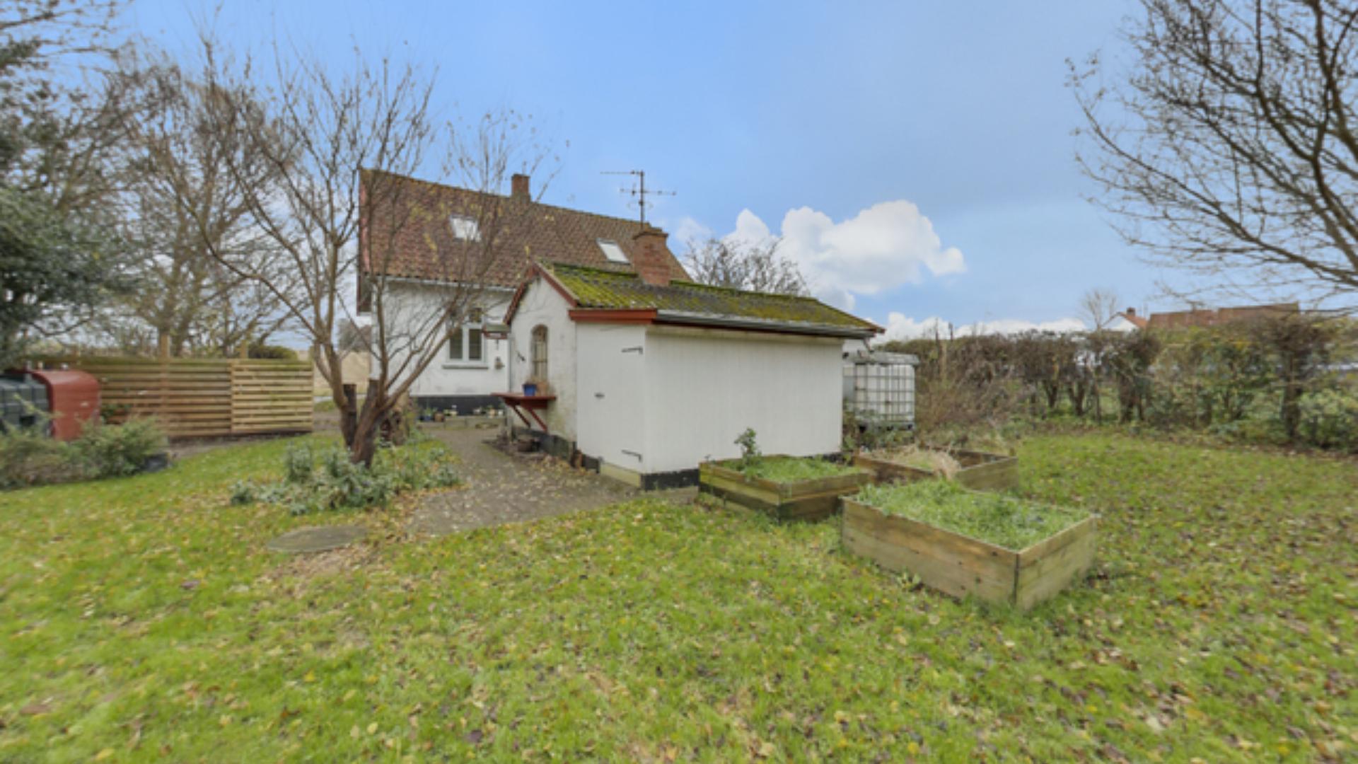 Klassisk villa i 2 plan fra 1915 med om-/tilbygning iår 2000 med et velindrettet boligareal på 102 m2. Facader i hvidmalet mursten, tag med røde tegl, elegante Dannebrog's vinduer, oliefyr med nyere brænder, brændeovn, alment vandværk og septiktank.