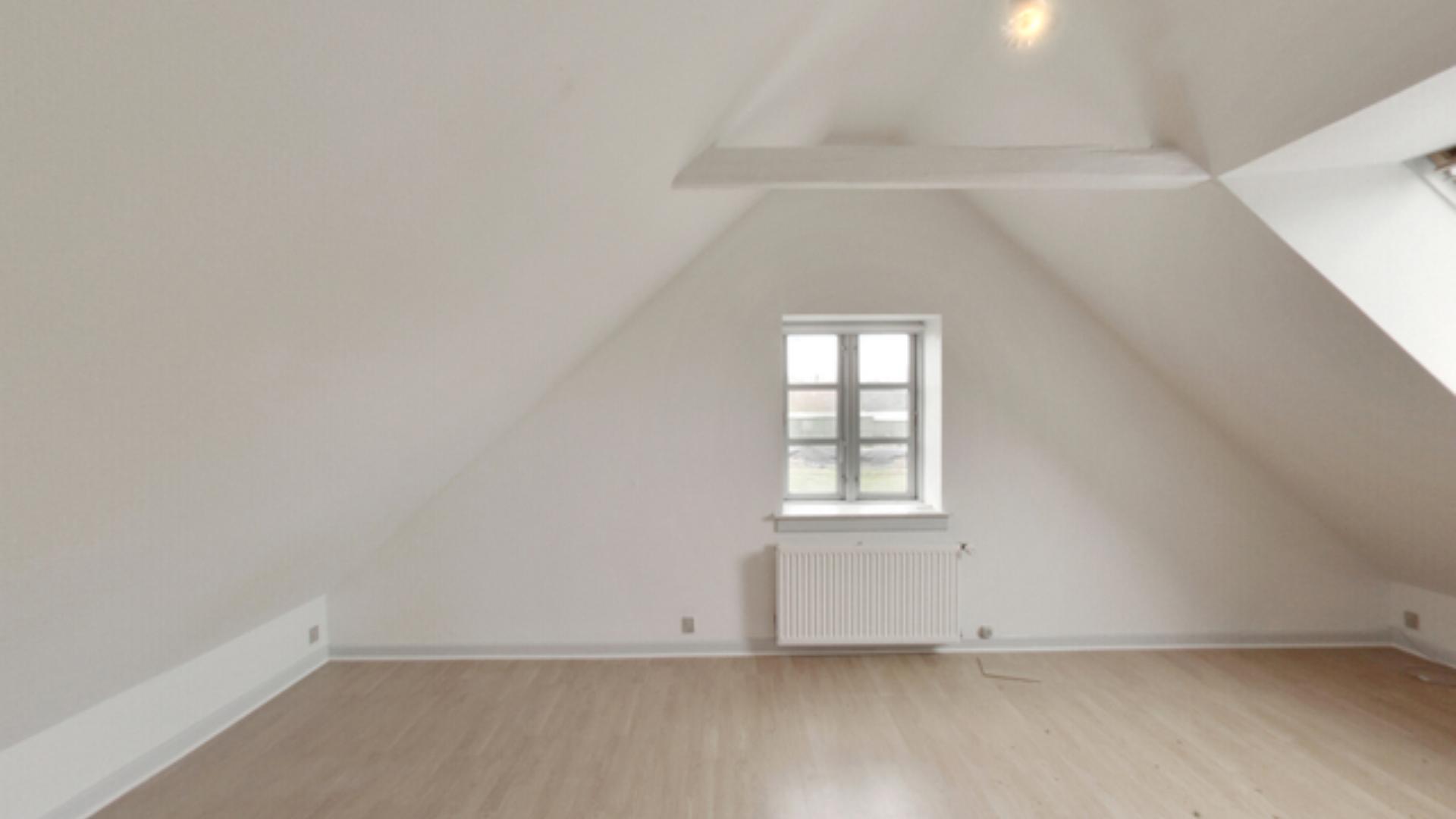 1. sal har repos med laminatgulv, loft til kip med synlige hanebånd og skabe, dejligt gavlværelse med laminatgulv, loft til kip og synlige hanebånd og tagvindue samt stort soveværelse i gavl med laminatgulv, loft til kip med synlige hanebånd, tasgvindue og skabe.