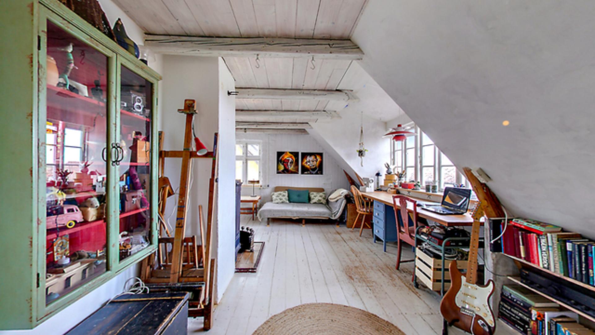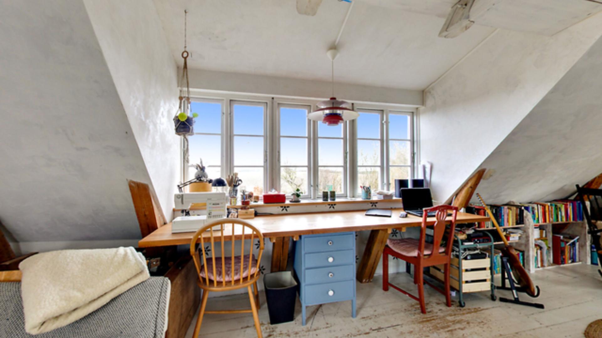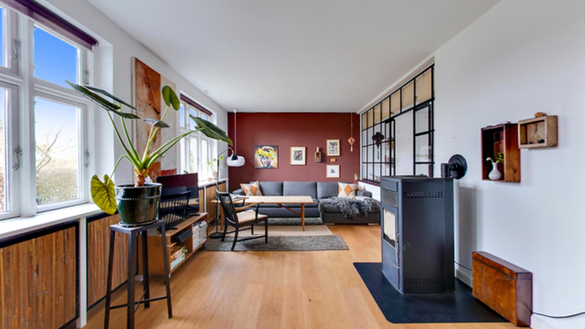 Den flotte stueetage med runmelige opholdsstuer og køkkenet bliver familiens absolutte samlingssted, og sofaen kan praktisk placeres i nærhed af pilleovnen, mens spisearealet indrettes nærmest køkkenet. Køkkenet har skakternet gulv og fine indretningsdetaljer, der gør rummet personligt. Endvidere er der flere detaljer, som er værd at bemærke, såsom den industrielle New Yorker-væg, der fungerer som rumdeler i stuen uden at stjæle det gennemgående lysindfald. Videre finder I et badeværelse, mens første sal byder på fritlagte loftsbjælker, to soveværelser og en stue.