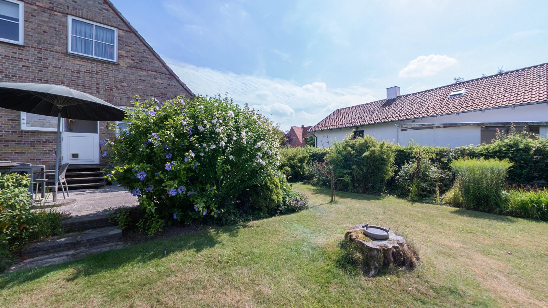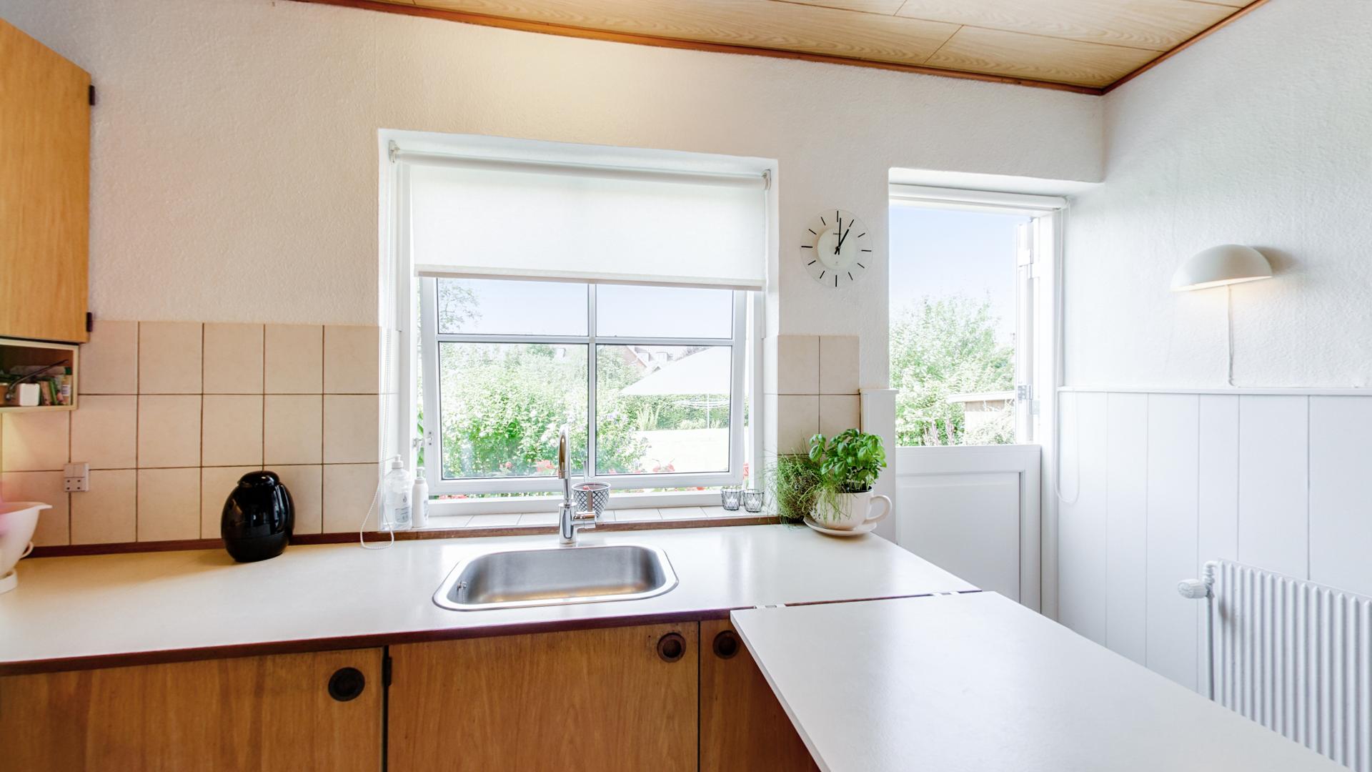 Udenfor kan I se frem til en dejlig, ugeneret have med træer, høj randbeplantning og en græsplæne til børnenes leg. Her er også en skøn terrasse, hvor det i sommerhalvåret er oplagt at nyde frokosten under åben himmel.