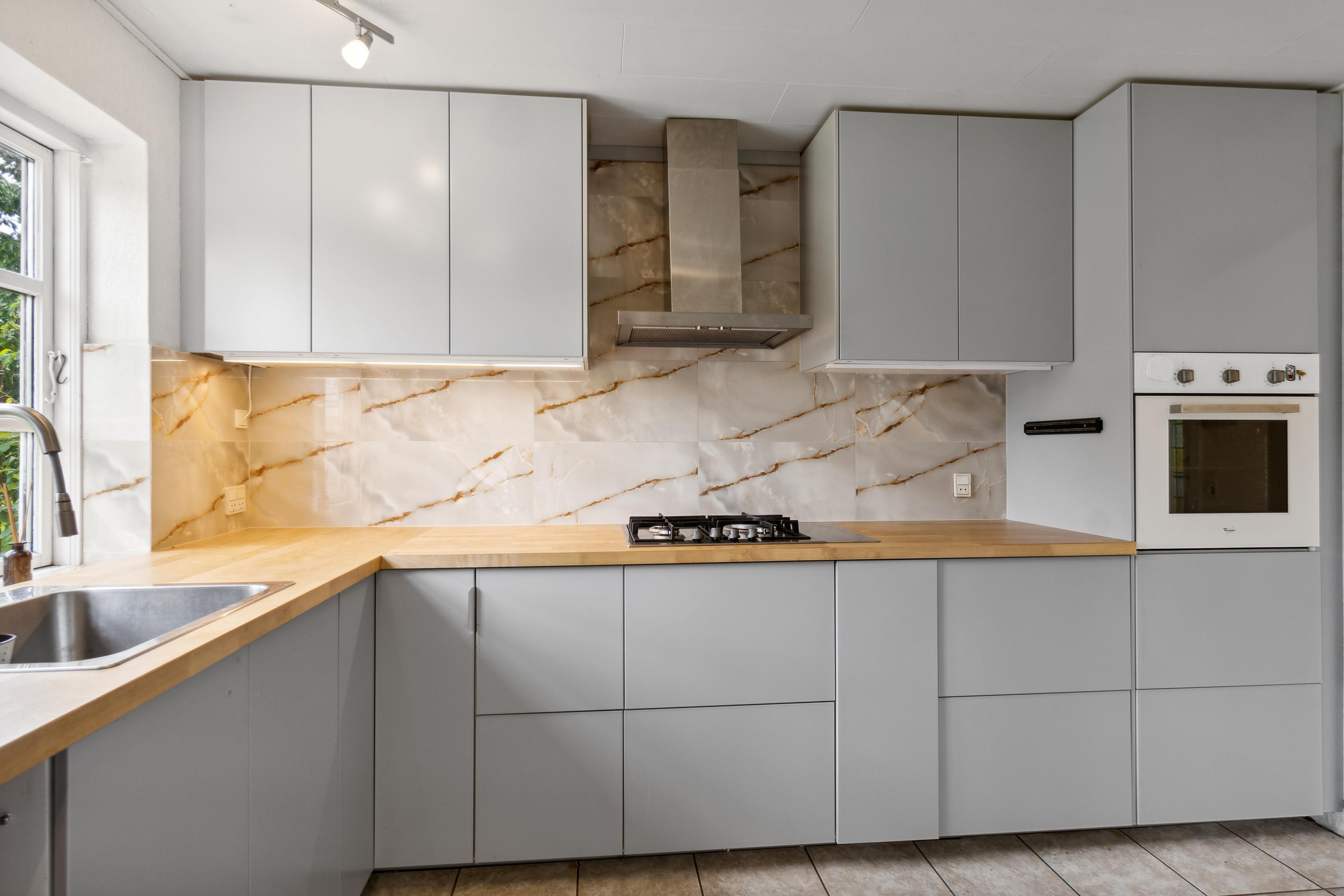Jungshovedvej 68 er placeret på en stille stikvej, og her venter jer et skønt hjem med plads til hele familien. Når I ankommer til adressen, bliver I budt velkommen af en klassisk gulstensvilla, der oprindeligt blev opført af bygmesteren selv i 1960, og som i 2023 blev sat i stand med isolering af