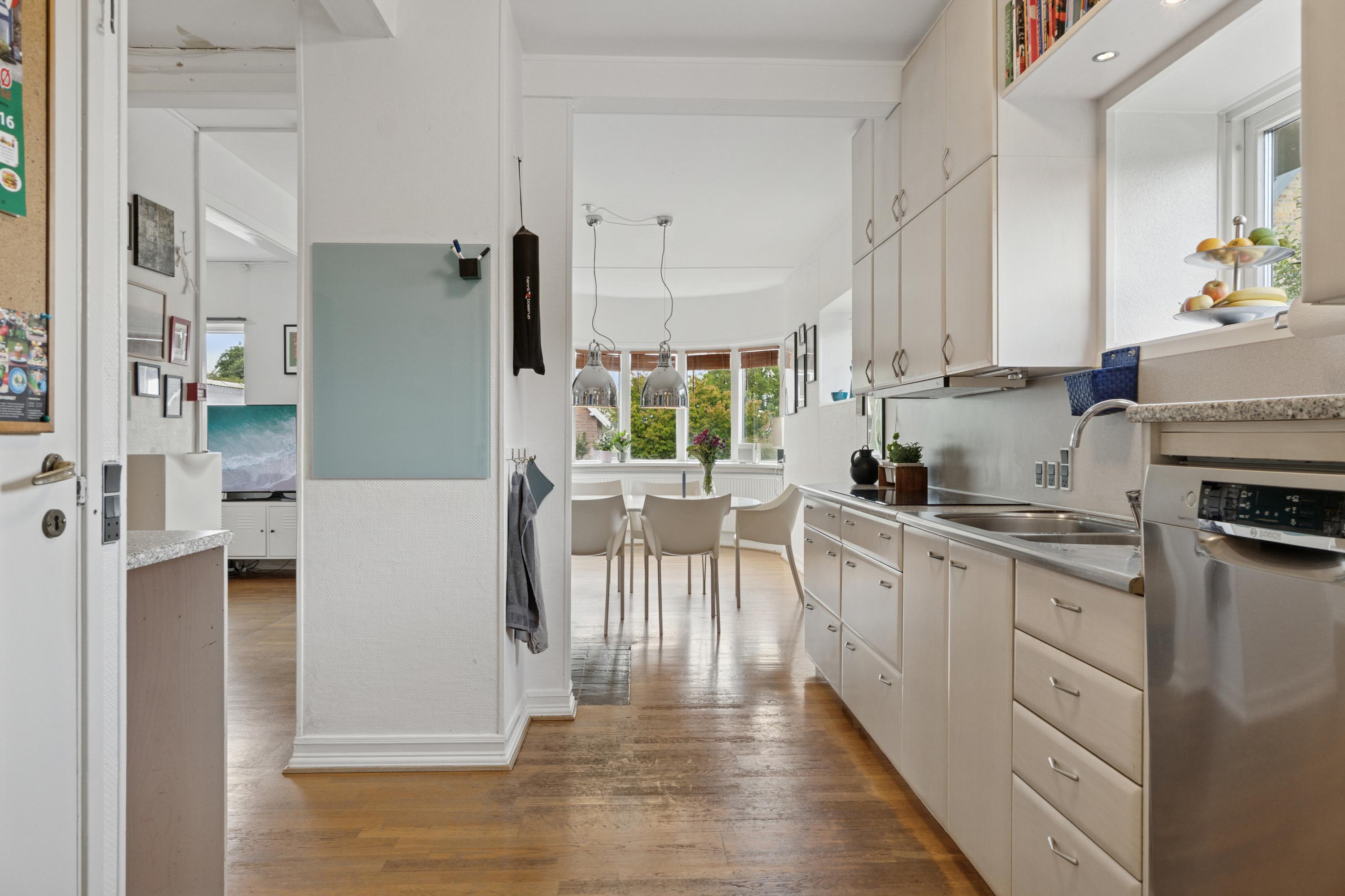 Det er i et skønt, ældre kvarter i købstaden Præstø, at denne super spændende villa med et unikt design og tre etager er placeret. Gennemgående fremtræder hjemmet lyst og indbydende med mange vinduespartier, der giver dagslyset frie rammer til at strømme ind.