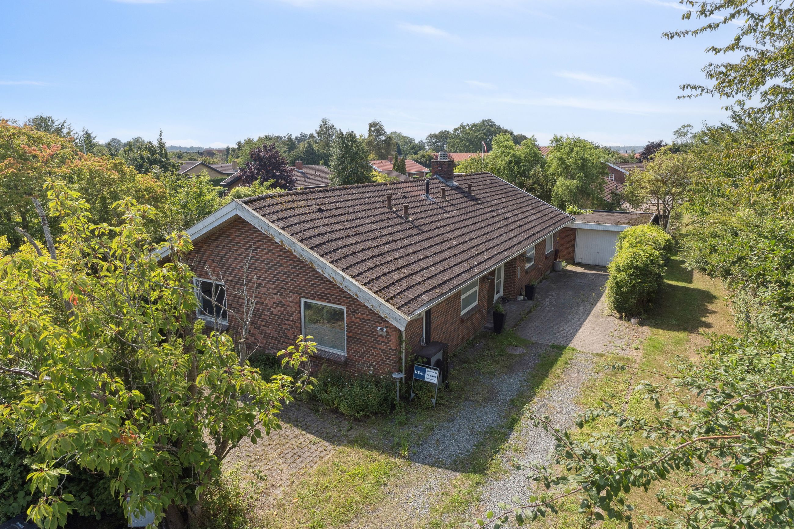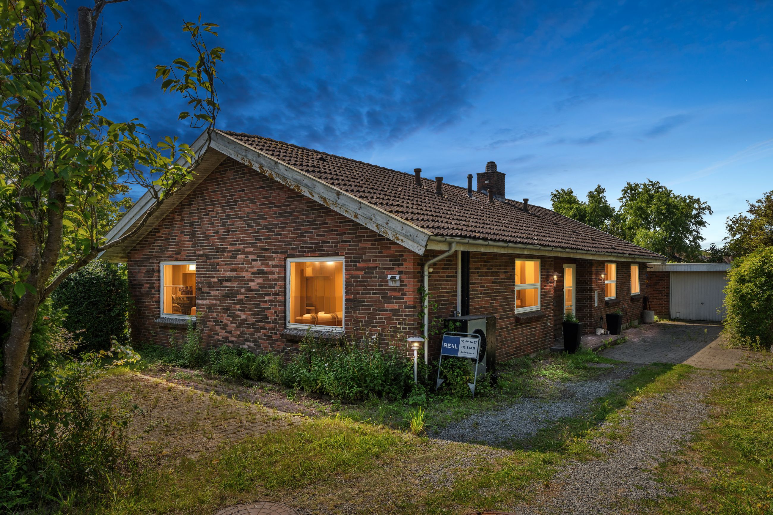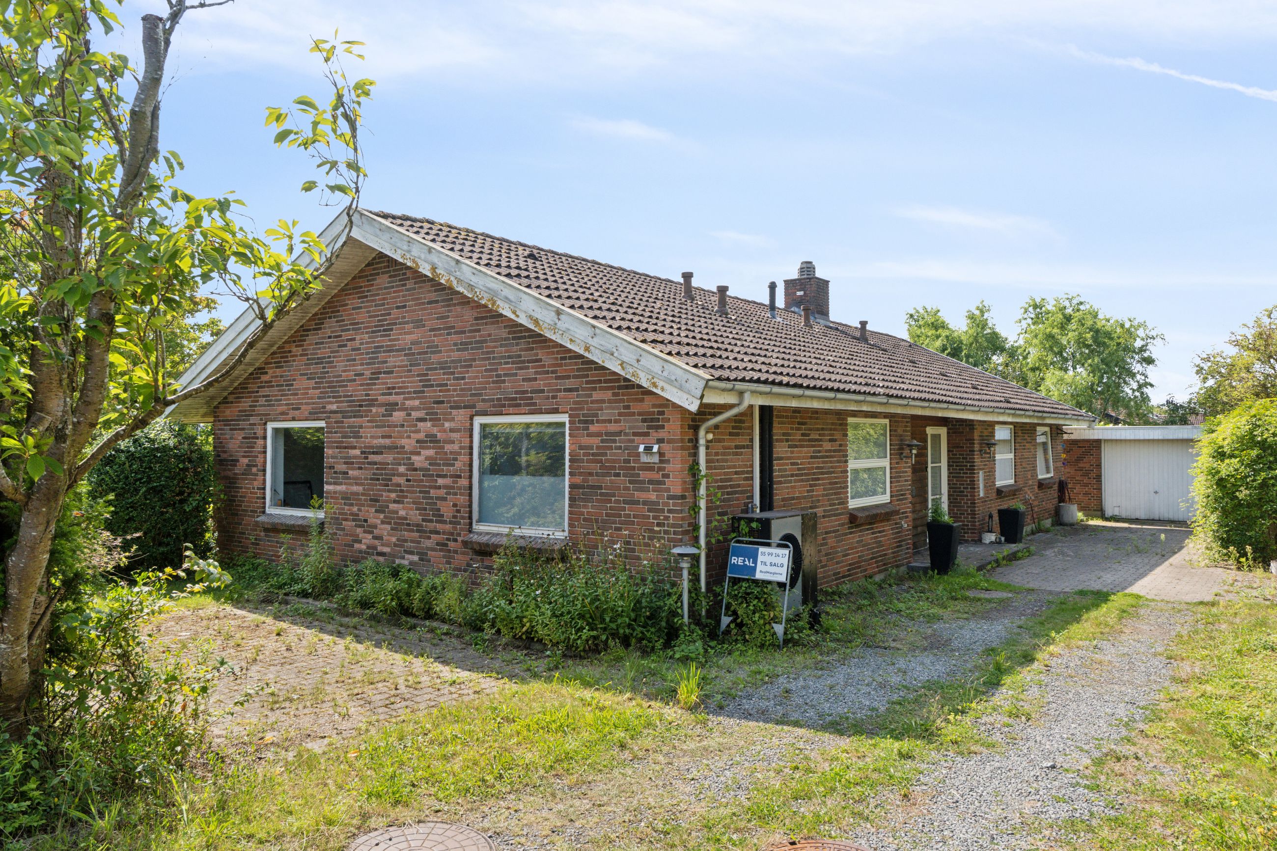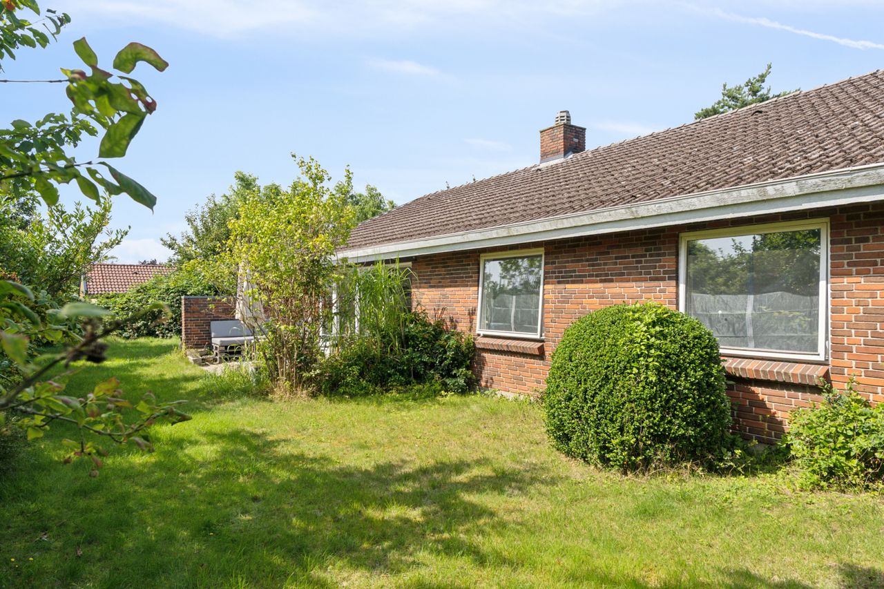 Haven er anlagt, så der uanset sæsonen altid er noget kønt at se på. Den frodige beplantning inkluderer såvel bærbuske som frugttræer, og det lune vejr kan nydes på de to terrasser, som vender perfekt i forhold til solen. Med til ejendommen følger endvidere en muret garage, der er på 25 m2.