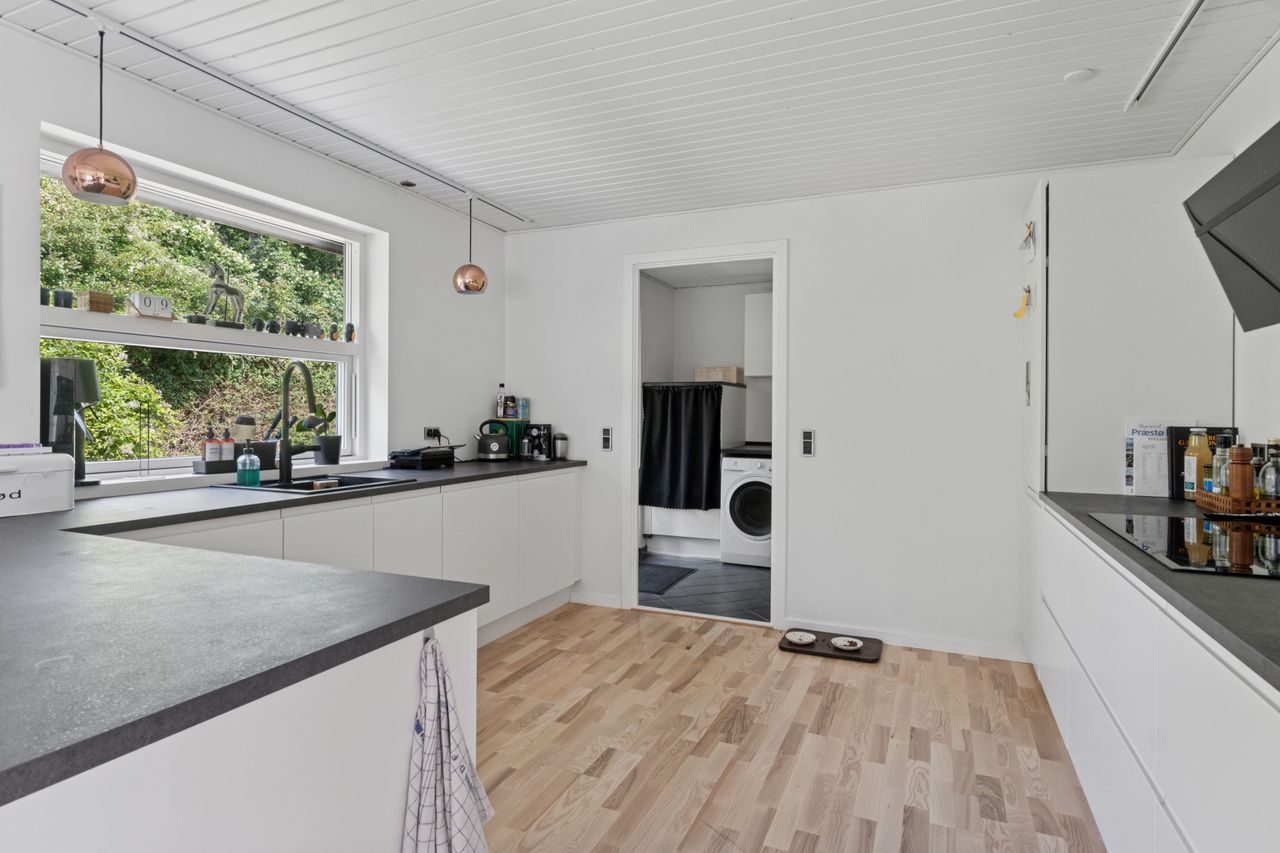 Afslutningsvis indeholder huset et funktionelt bryggers, der tillige fungerer som hjemmets entré.