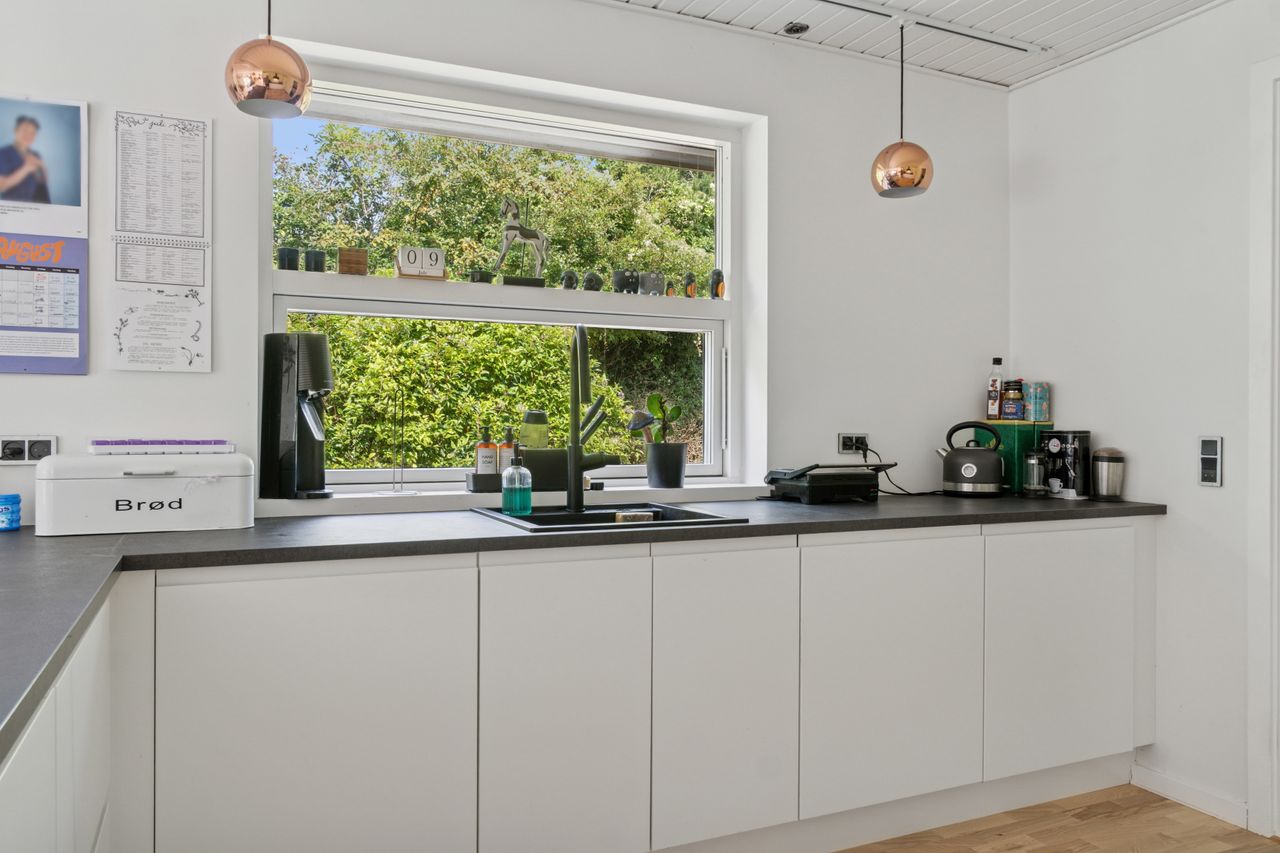 Ejendommen ligger på en lukket vej i et naturskønt og attraktivt kvarter. Fra den fredelige adresse er der få hundrede meter til fjorden og til et stort, grønt fællesområde, der har bade- og bådebro. Som endnu et plus har I gåafstand til centrum, som byder på handelsstrøg, spisesteder, kulturtilbud og lystbådehavn. Skoler og daginstitutioner er ligeledes inden for rækkevidde, så hverdagen bliver nem og bekvem.