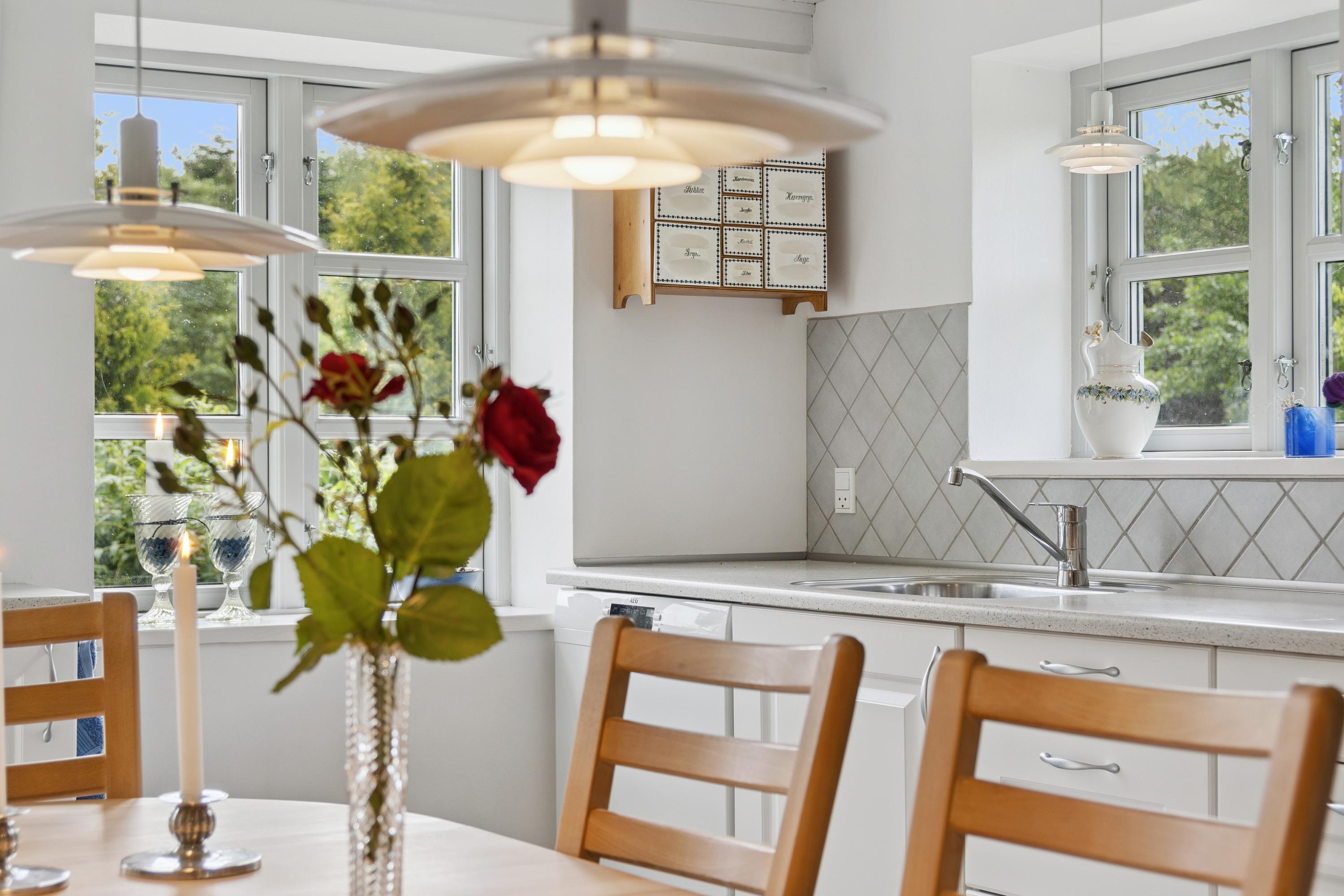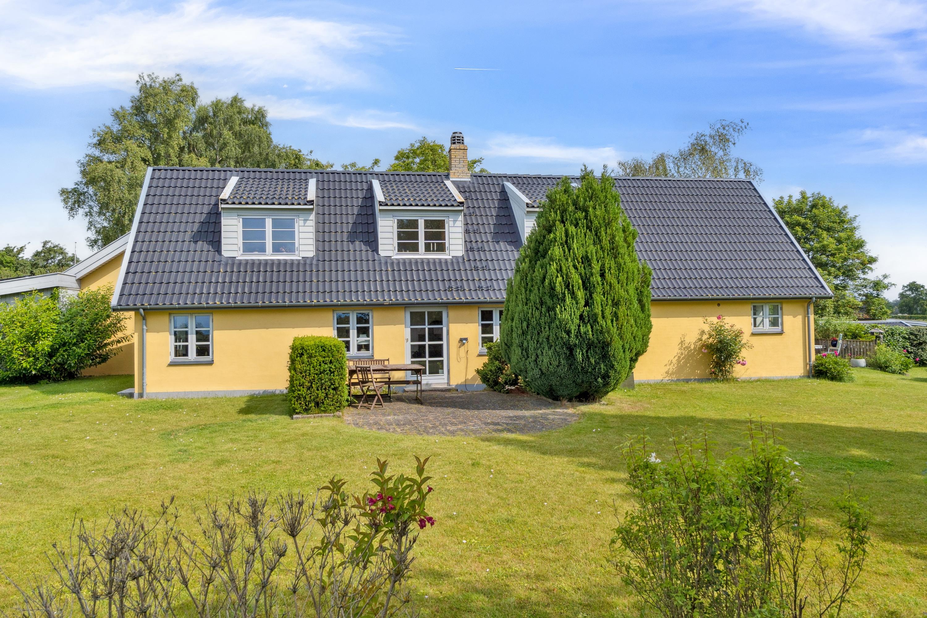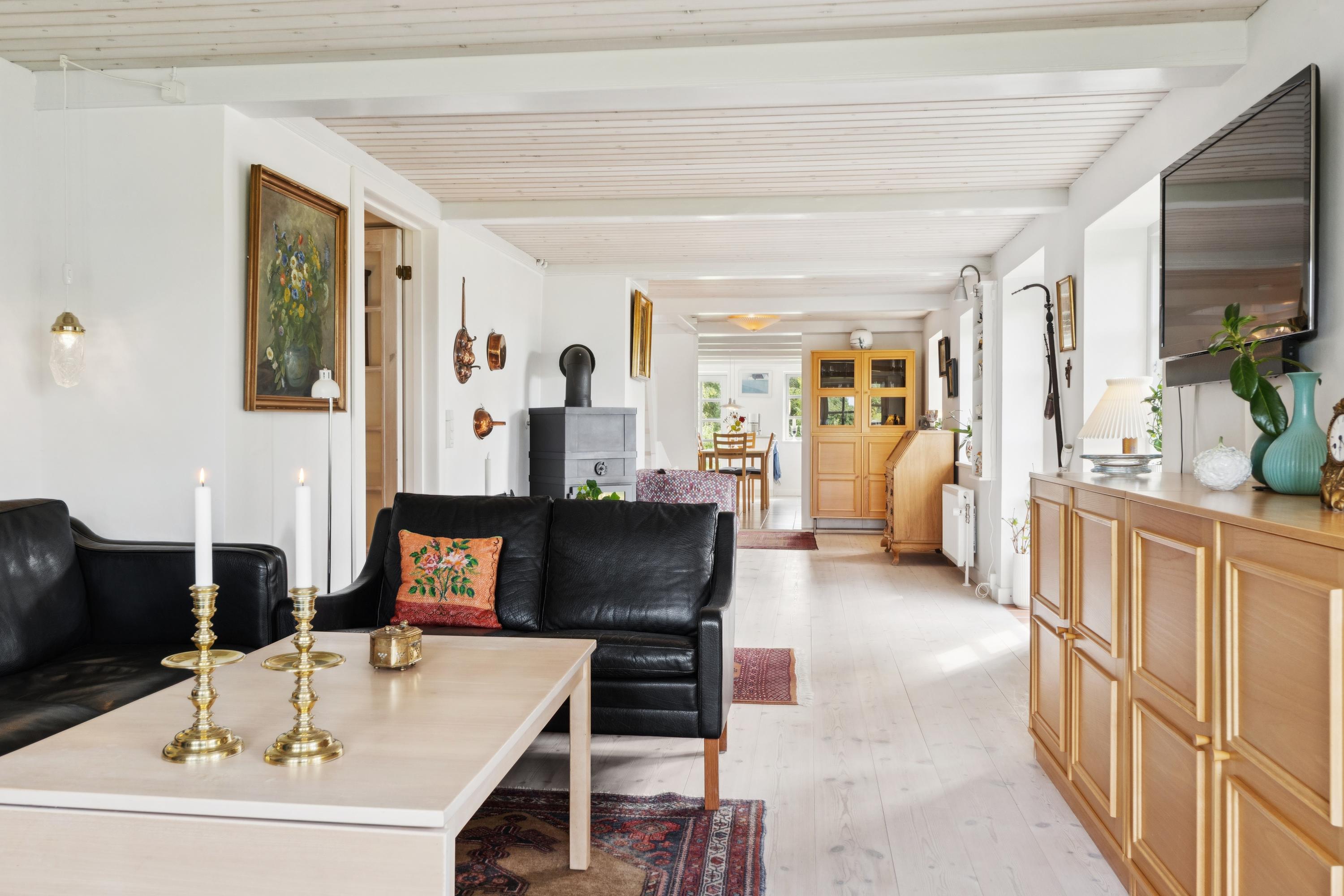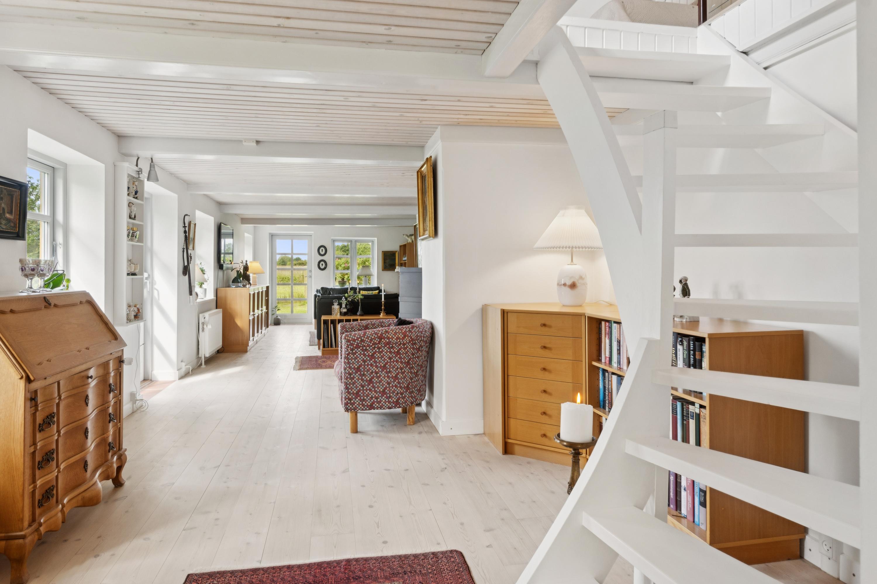 Helt ugeneret for enden af lukket vej midt i naturen og med kig til Hjelm Bugt ligger denne smukt renoverede ejendom på 335 kvm med mulighed for flexbolig. Her får du fred, ro og højt til himlen, kun 5 minutter fra stranden og