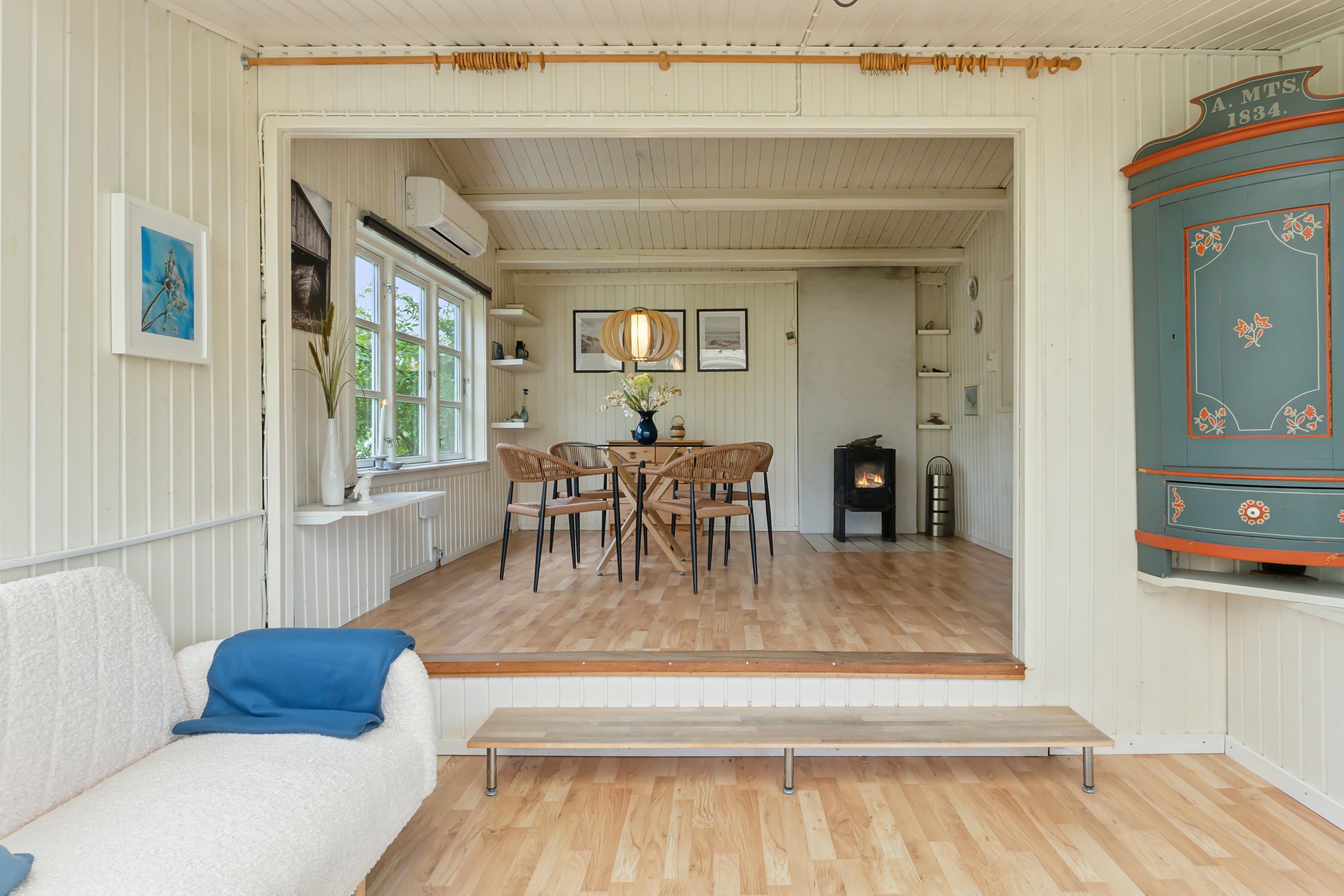 Drømmer I om et sted, hvor børnene kan løbe barfodede gennem græsset, hvor morgenkaffen nydes til fuglesang, og hvor stranden kun er en lille gåtur væk? Så er dette charmerende sommerhus på Berberisvej 4 i naturskønne Ulvshale måske jeres næste fristed.