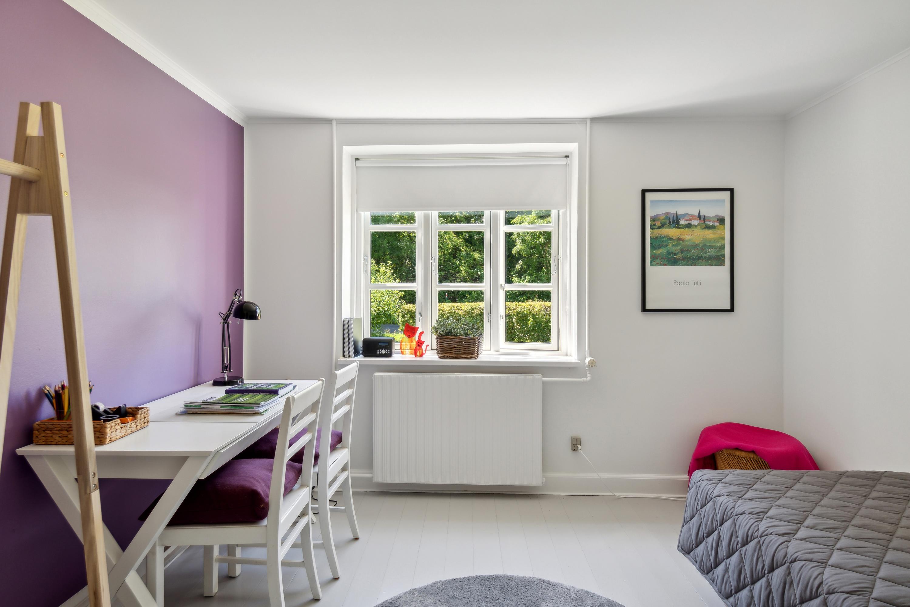 en grøn oase i udkanten af Vestmøn, med kik til Sjælland og øerne. Skolen blev opført i 1820 og nedlagt i 1962 og har siden fungeret som almindelig bolig dog med den store skolestue og sjælen i behold. Huset er med højloftede, lyse rum, der
