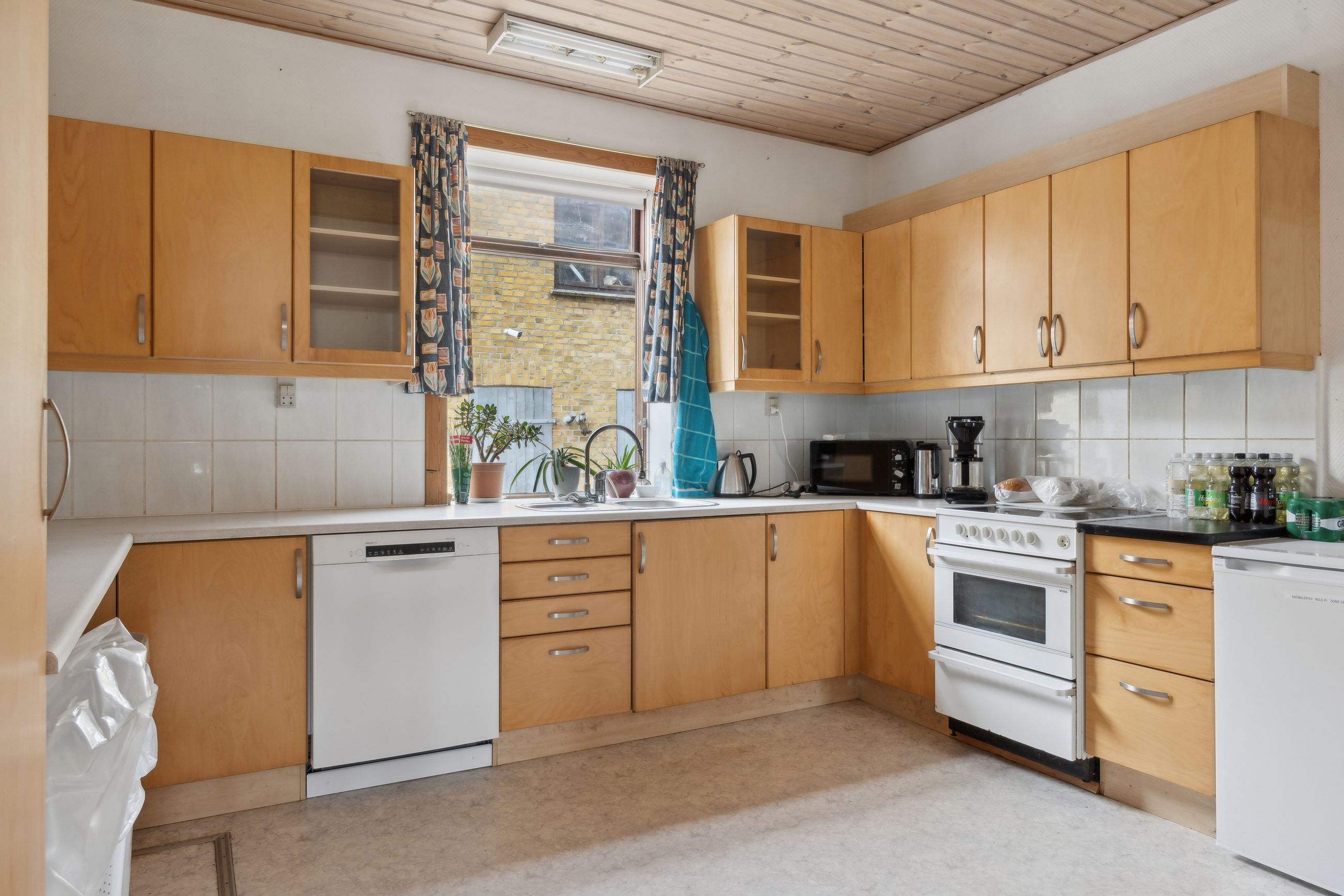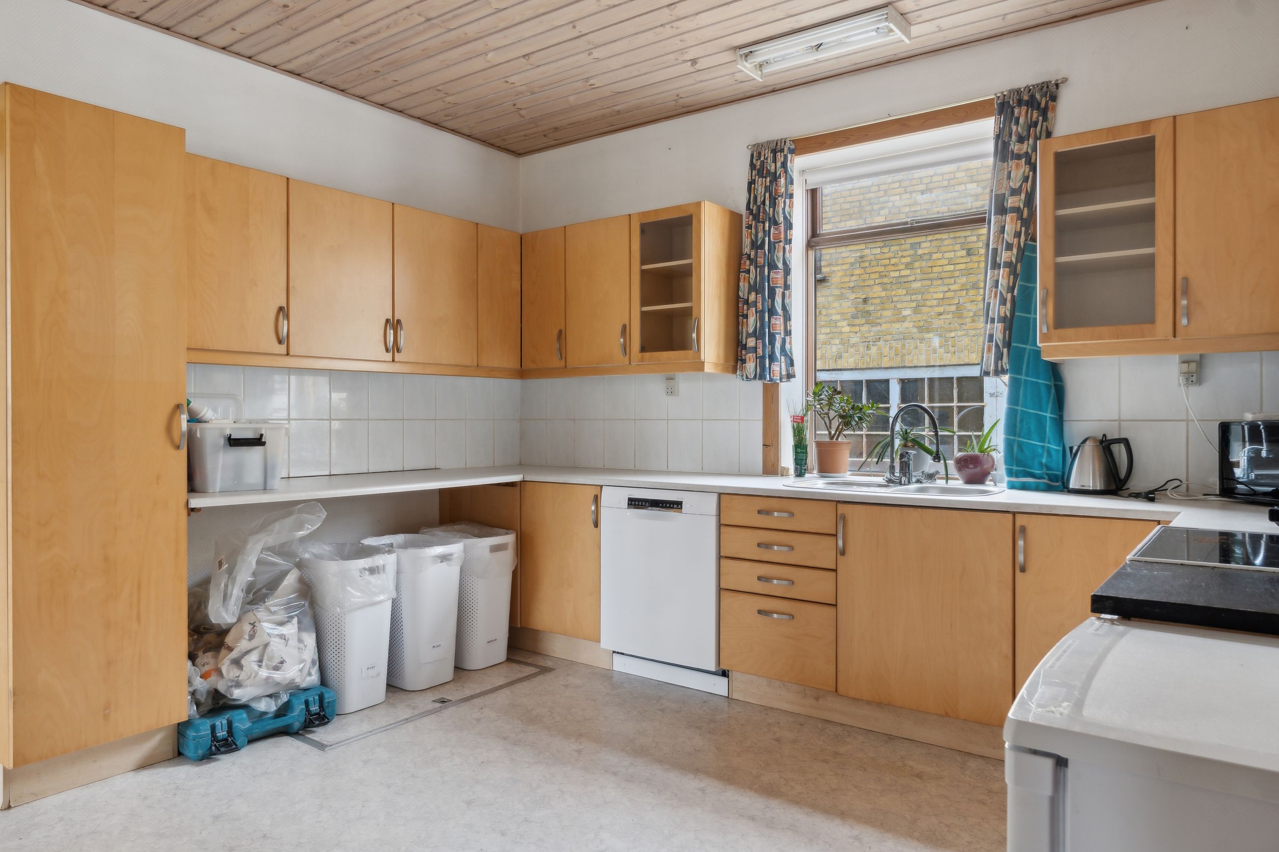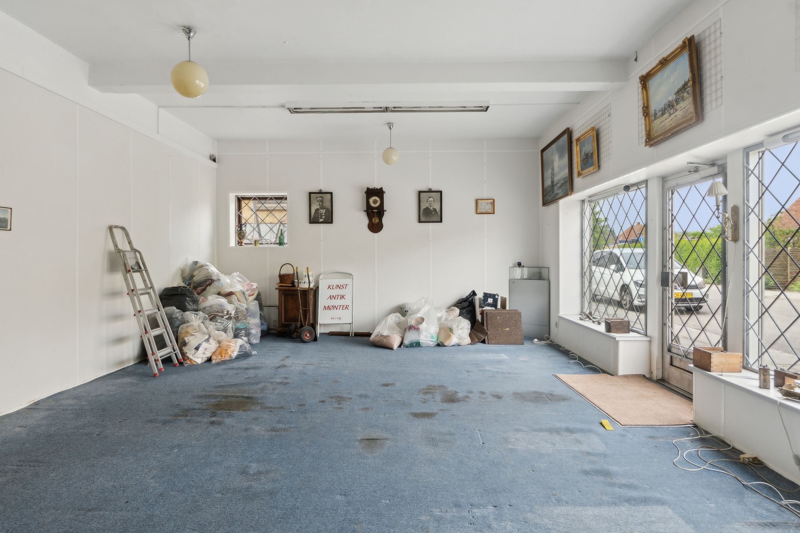 Ejendommen består af to separate bygninger med et gårdmiljø imellem. Den ene bygning rummer både bolig og erhverv, mens den anden er et anvendeligt udhus med ekstra opbevarings- eller anvendelsespotentiale. Erhvervsdelen er velindrettet og kan tilpasses mange formål – kontor, showroom, værksted, klinik m.m.