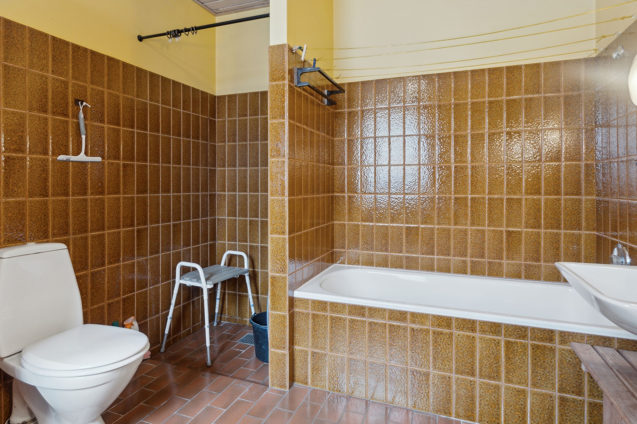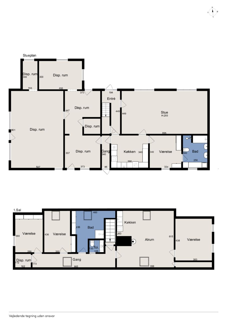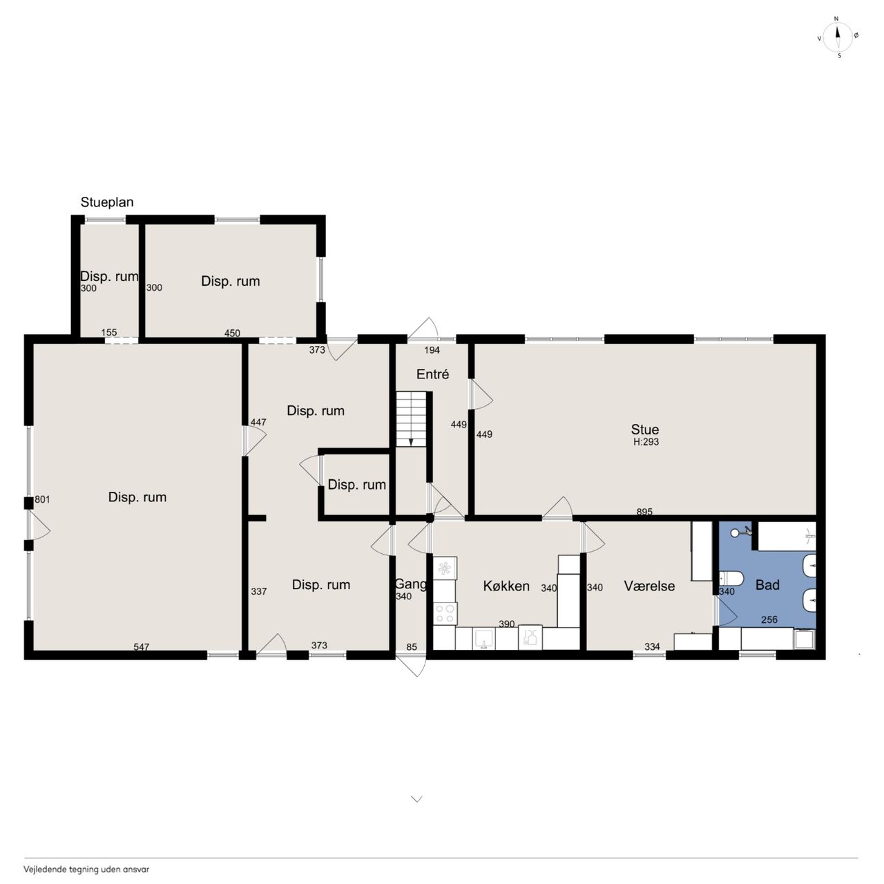 Boligen er indrettet med entré med fordeling til rummelig stue, spisekøkken, soveværelse med forbindelse til stort badeværelse. Dertil mellemgang med lille kælder erhvervslokalerne. 1. salen er indrettet med køkken alrum, soveværelse, toilet og rum med bruseniche samt to værelser mere. Her er gode muligheder for at lave en separat bolig.
