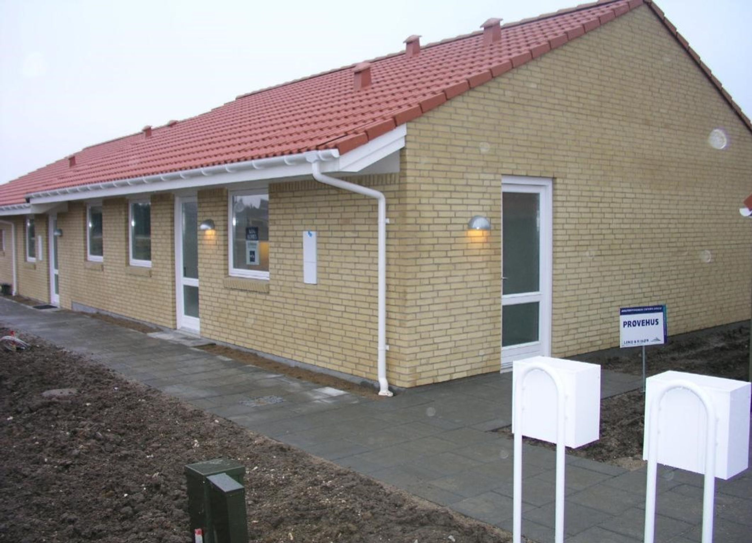 Tag: Koralrød betontagsten. Tagrender/nedløb: Hvid plast. Ydervægge: Fuldbrændt BS gul mursten. Bagmur/skillemur: 10 cm. letbeton. Vægflader: Glasvæv opsættes på samtlige vægge og males til fuld dækning. Gulv: Parketgulv i stue. Fliser i baderum, klinker i entre, bryggers og køkken. Tæpper i øvrige rum. Indvendige døre: Hvide kanaldøre. Loftoverflader: Ubehandlede trælofter. Vinduer/døre: Oplukkelige med ventilations- og natstilling. Udført i træ, 2-lags energirude.(BR)(BR) Badeværelse: Hvid sanitet fra IFO. Køkken, bryggers og garderobe: HTH skabe. Opvarming: Elvarme med paneler overalt- Huset har varmegenvindingsanlæg og mekanisk ventilation med kombineret varmluft- og varmbrugsvandproduktion, således at der er lave varmeudgifter og altid et behageligt indeklima. Udhus: Der er et udhus på ca. 4 m2.(BR)(BR) Loftrum: Eget loft med gangbro og loftlem med udtræksstige. Have: Haveanlæg tilsås med græs og foran havedøre anlægges 12 m2 fliseterrasse, som afgrænses til nabo med ca. 1.8 meter højt træhegn... Læs mindre...