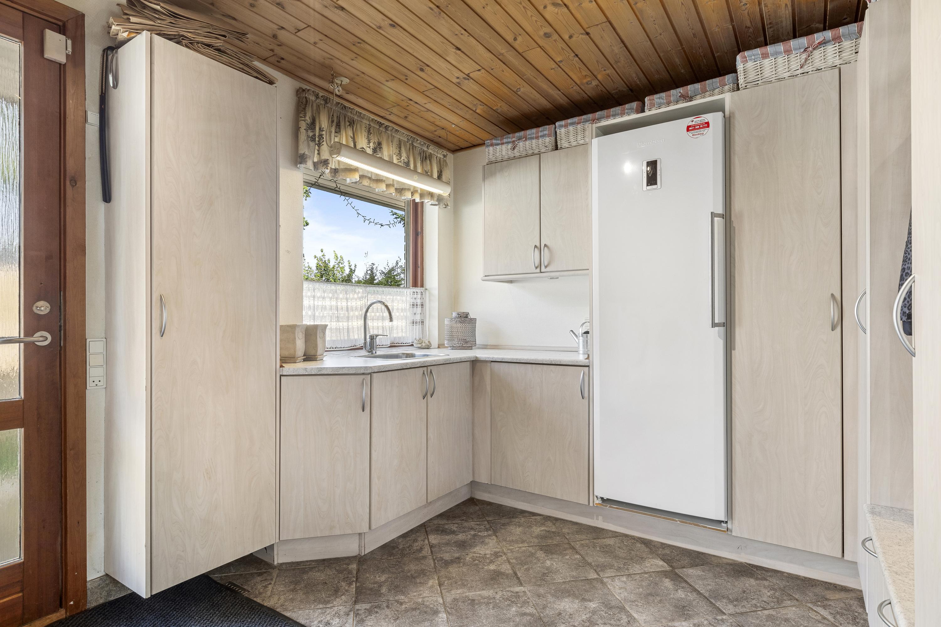 Stort bryggers/fyrrum med indgang, håndvask, masser