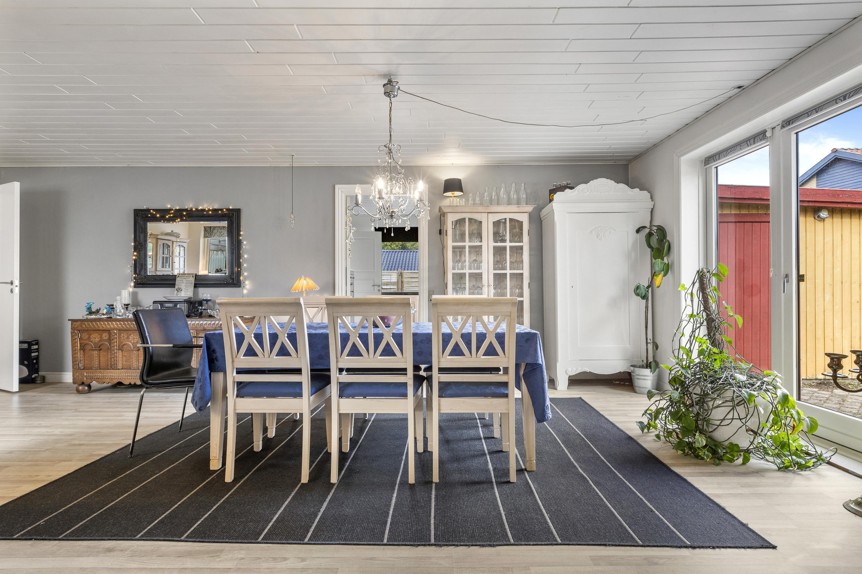 Opvarmes med fjernvarme og pille-brændeovn. 2-lags termovinduer.