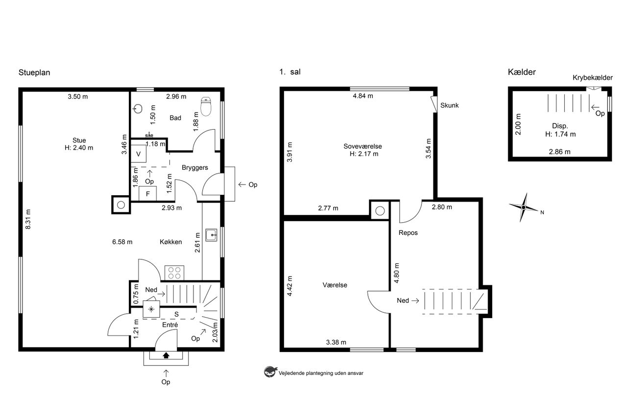 Stort repos med plads til garderobe, stort værelse samt stort soveværelse. Der er mulighed for anden indregning af 1.salen.