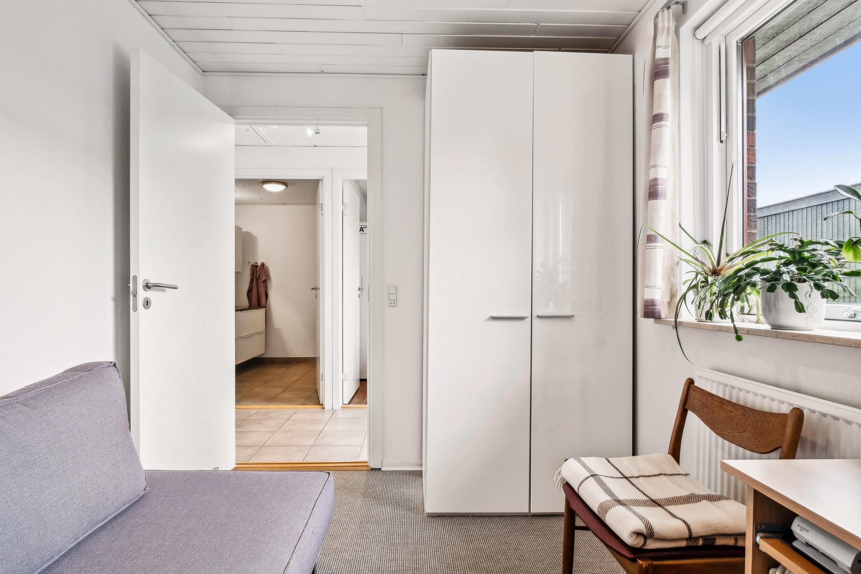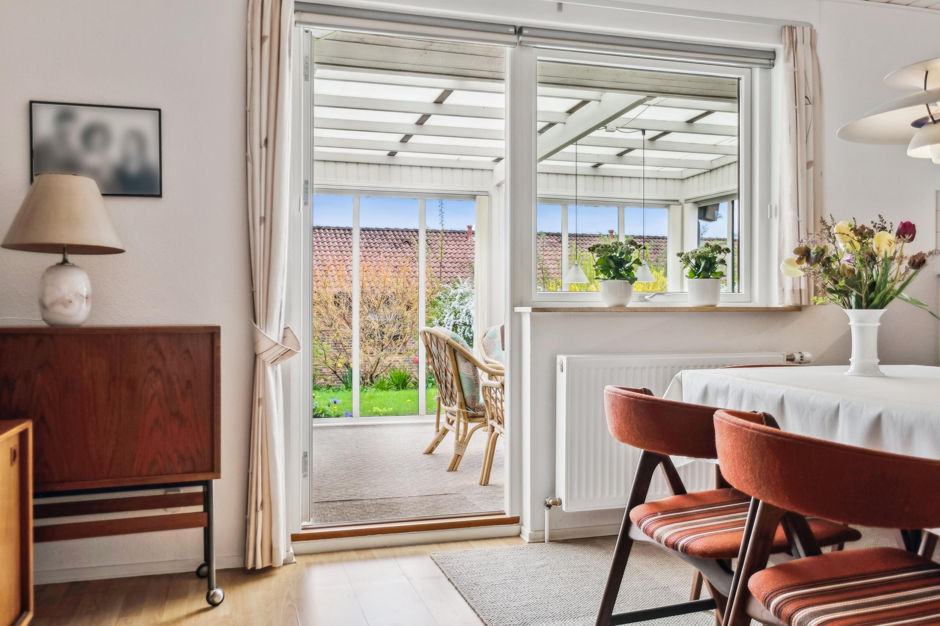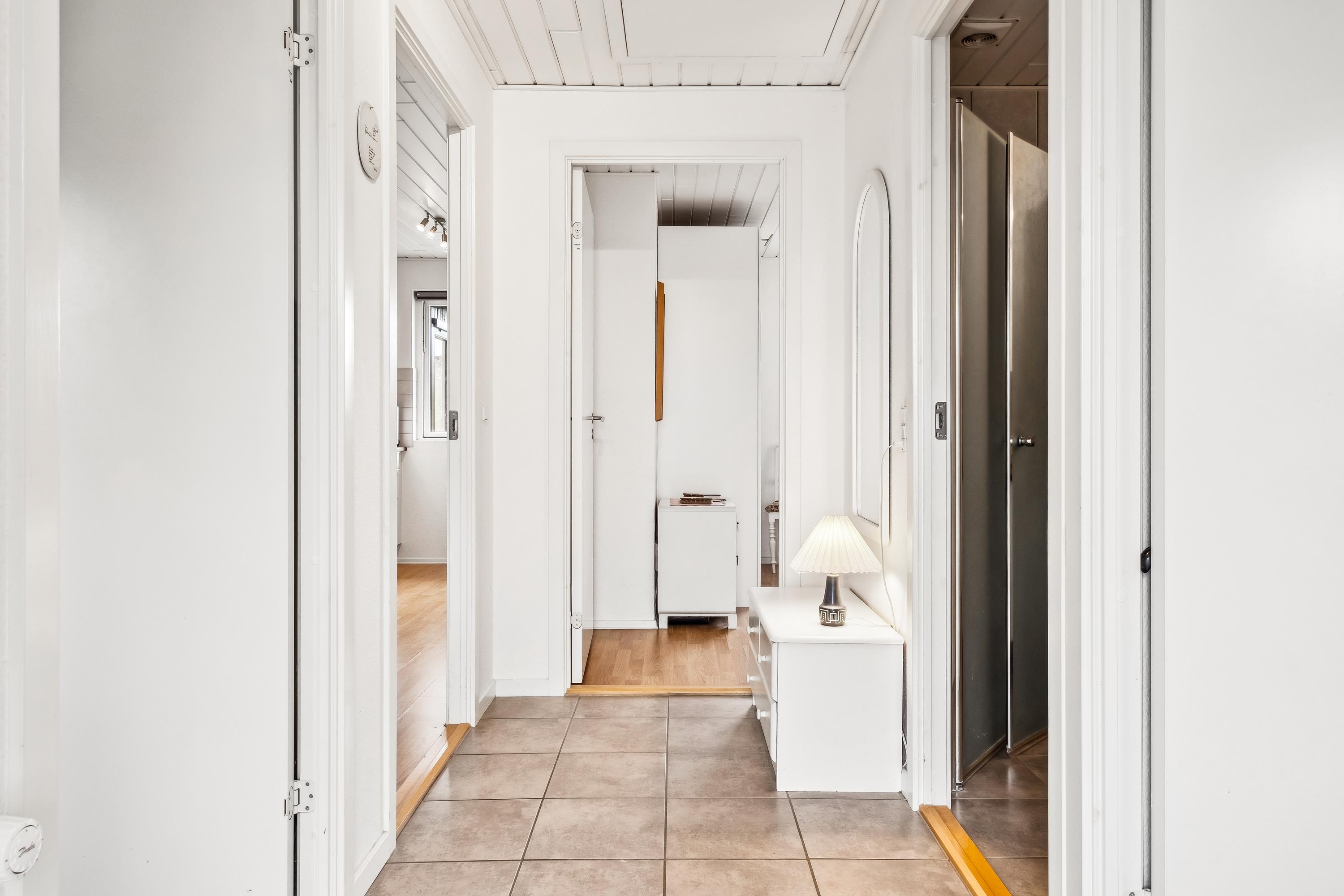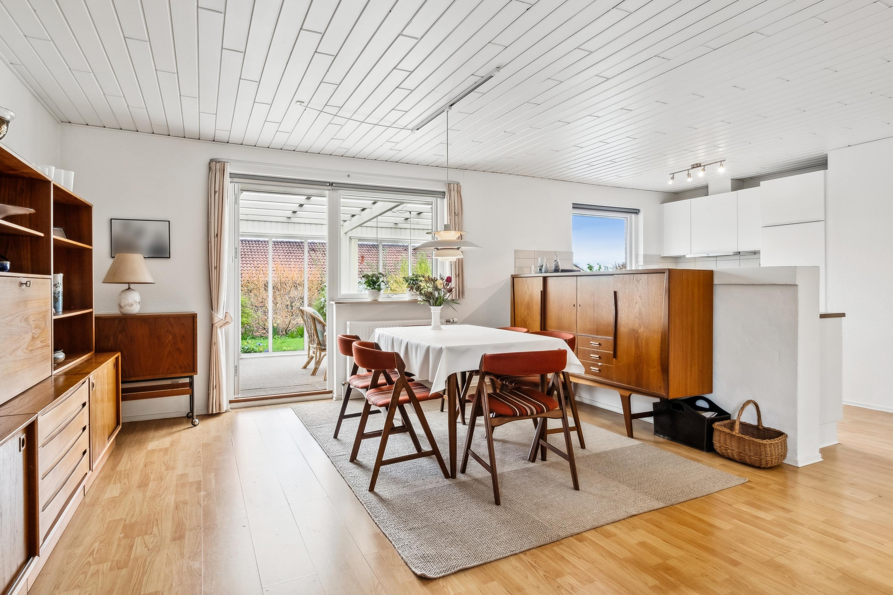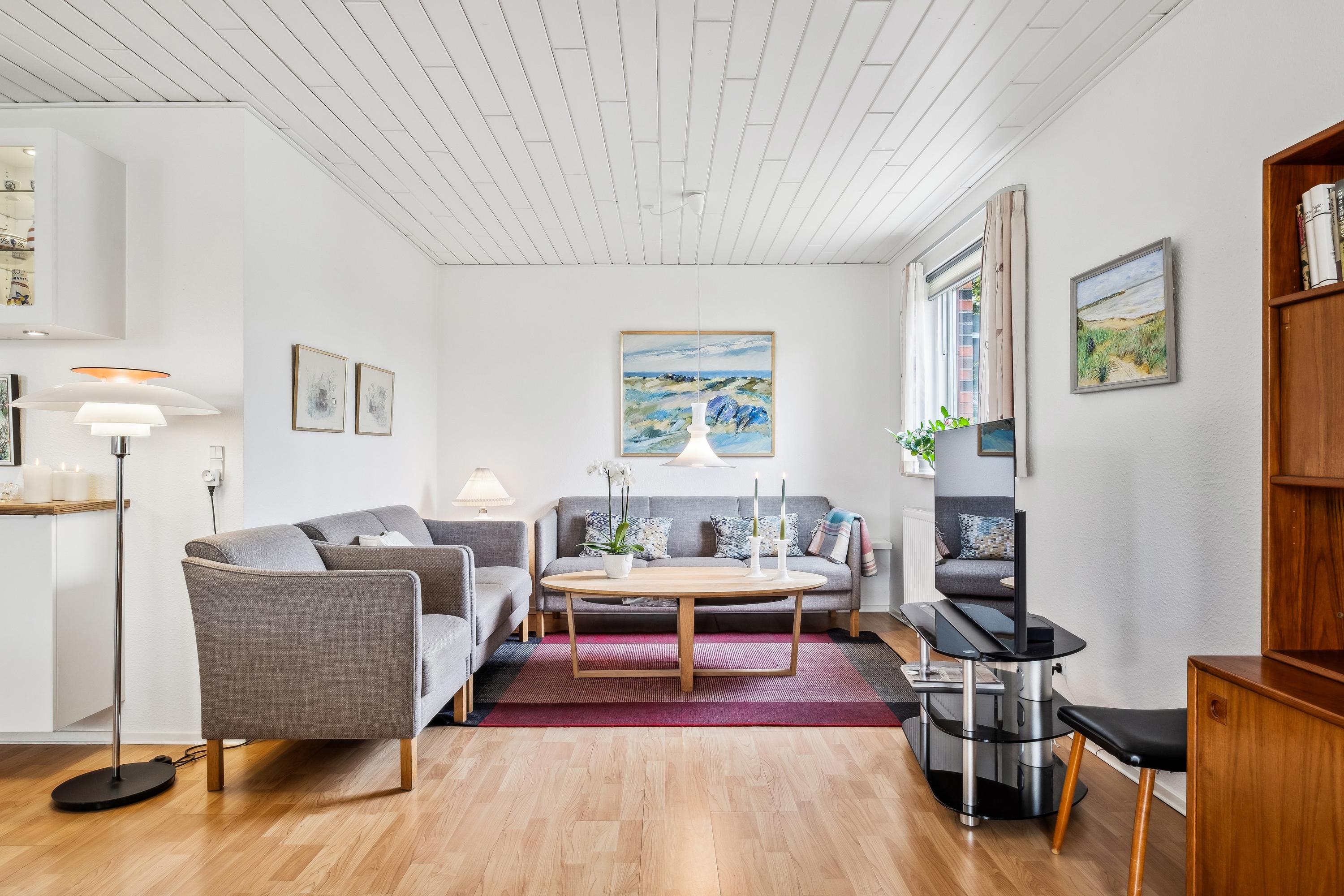 Til-salg-skiltet er sat op ude foran denne dejlige andelsbolig, der er trygt placeret på et lukket vænge. Huset byder bl.a. på en veludnyttet planløsning og tidløse kvalitetsmaterialer, og det passer til den brede køberskare så det unge par, det midaldrende såvel som solisten kan føle sig