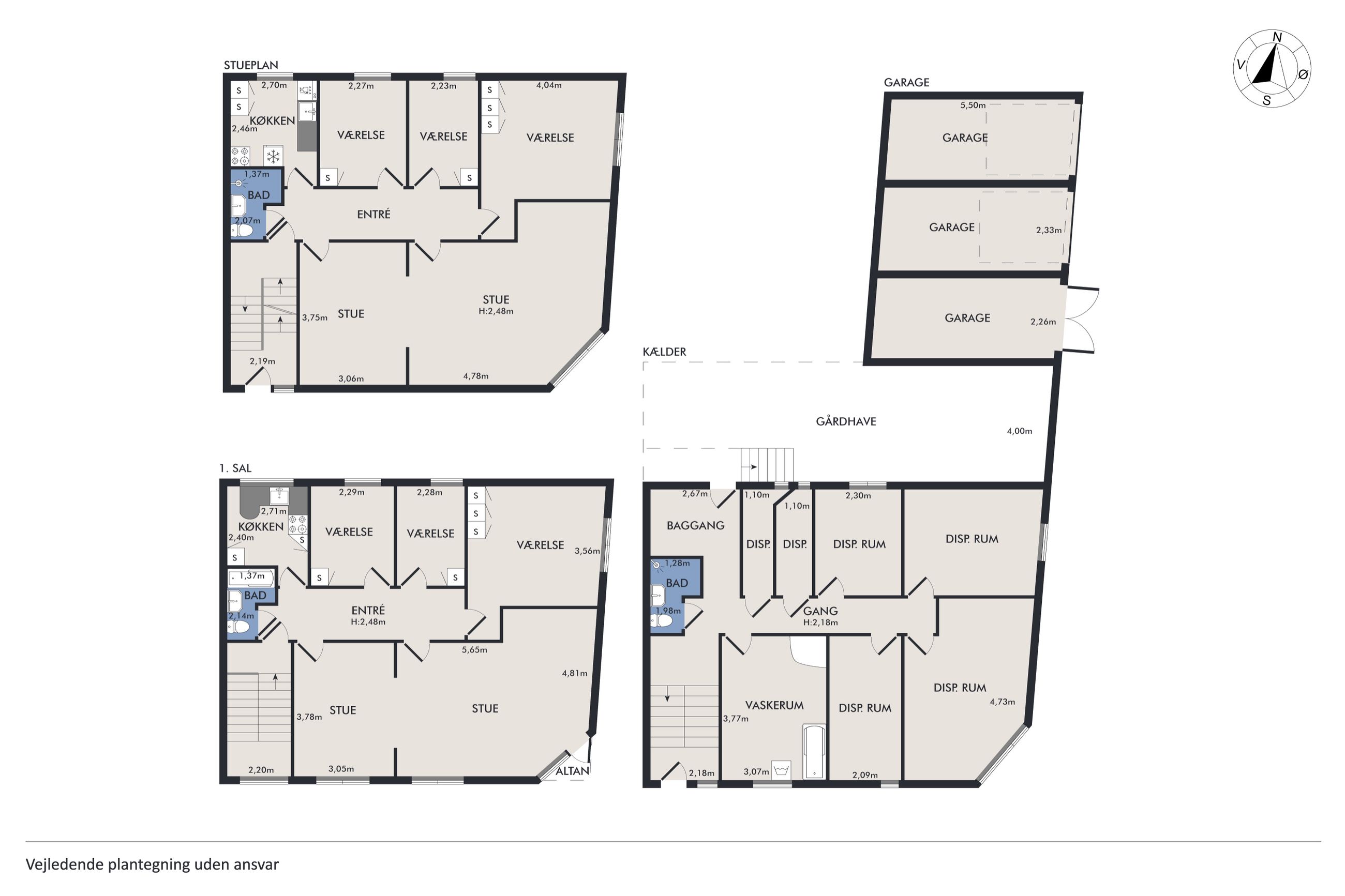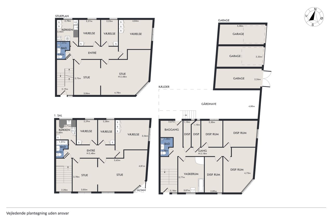 Her er således rigelig plads til den store familie, mulighed for generationsbolig – eller mulighed for at lave en attraktiv investering med henblik på udlejning. Med hele 3 garager og en solvendt gårdhave er både funktionalitet og hygge i højsædet på denne ejendom.