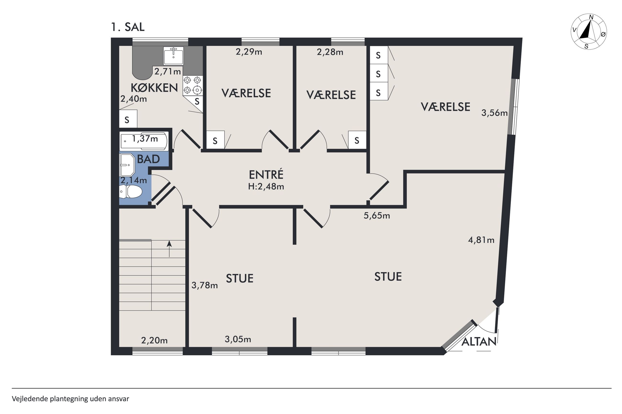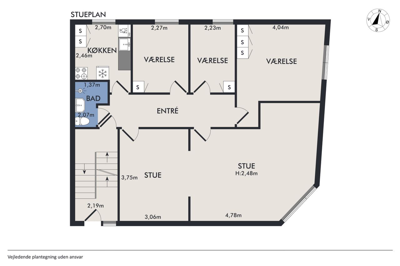 Ejendommen rummer hele 312 etagemeter fordelt på to store, separate lejligheder - hver på 104 kvm. samt tilhørende højloftet kælder.