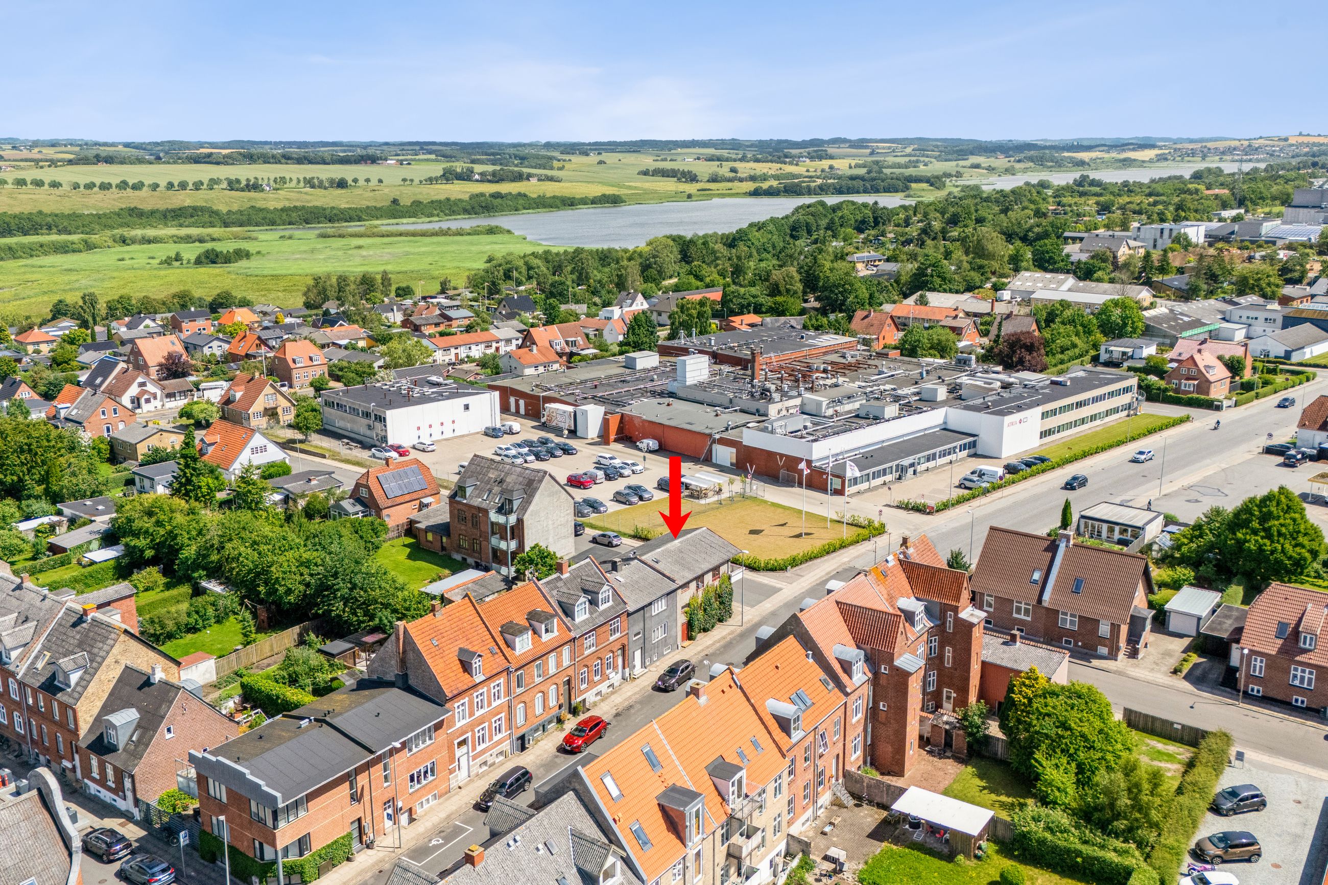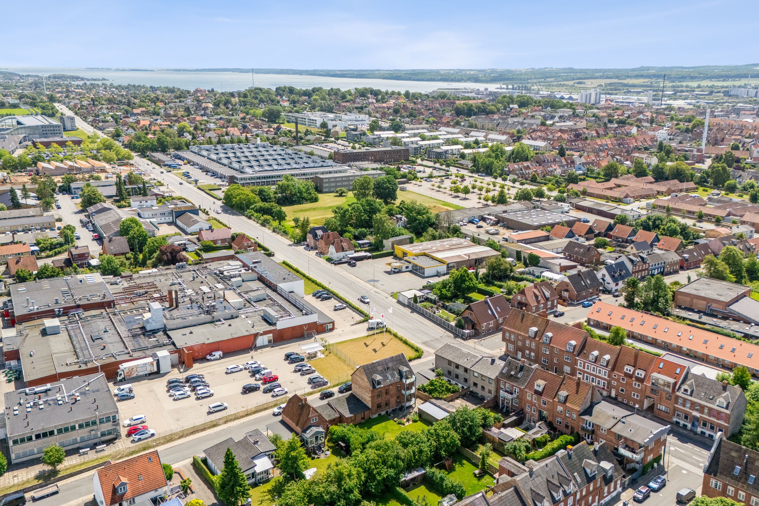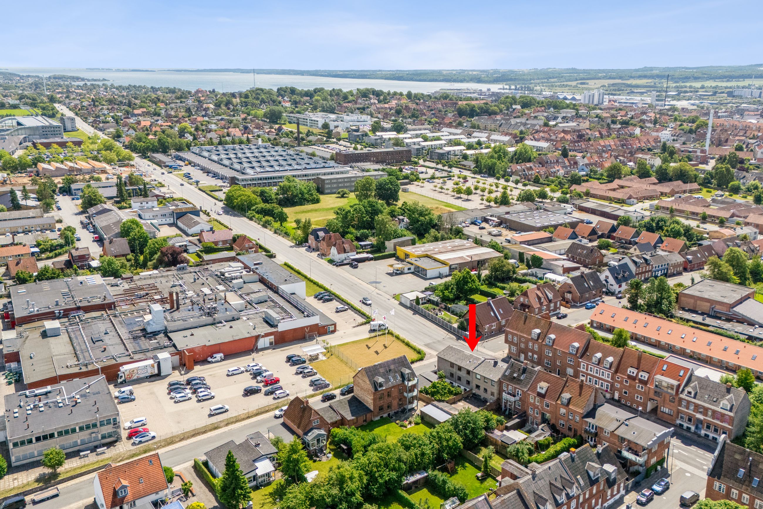 Beliggenheden er i top – midt i byen, men tæt på naturen. Nørrestrand, et fredet vildtreservat og rekreativt område med stier og borde/bænkesæt, ligger i gåafstand. Alle hverdagens fornødenheder er lige ved hånden, og der er let adgang til både landeveje og E45.