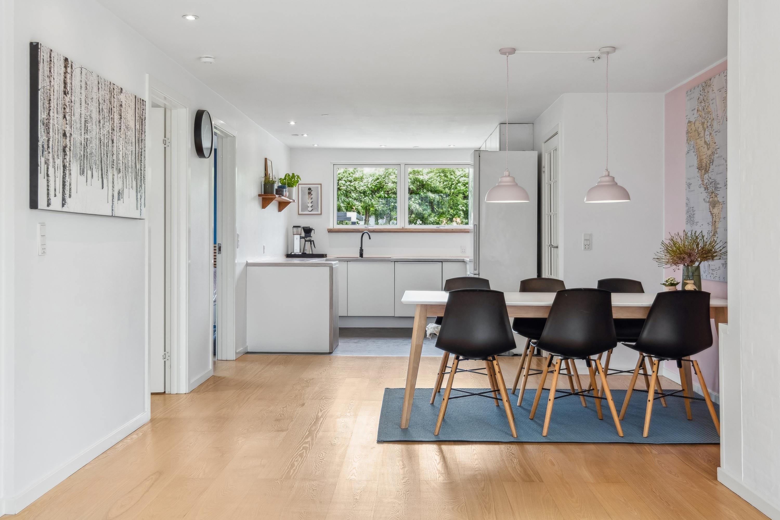 Moderne 1 plans villa på lukket og stille vænge- perfekt til børnefamilien