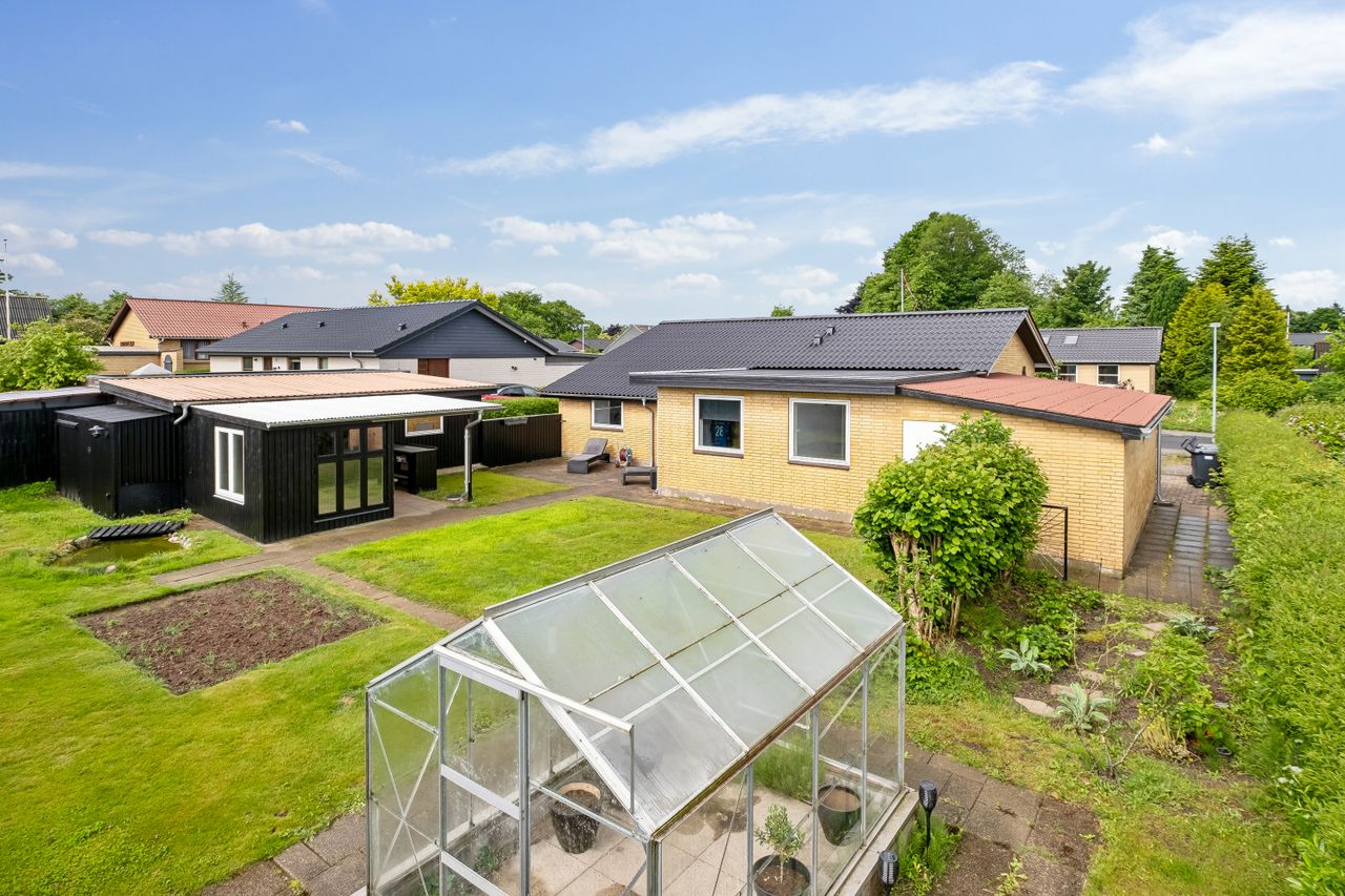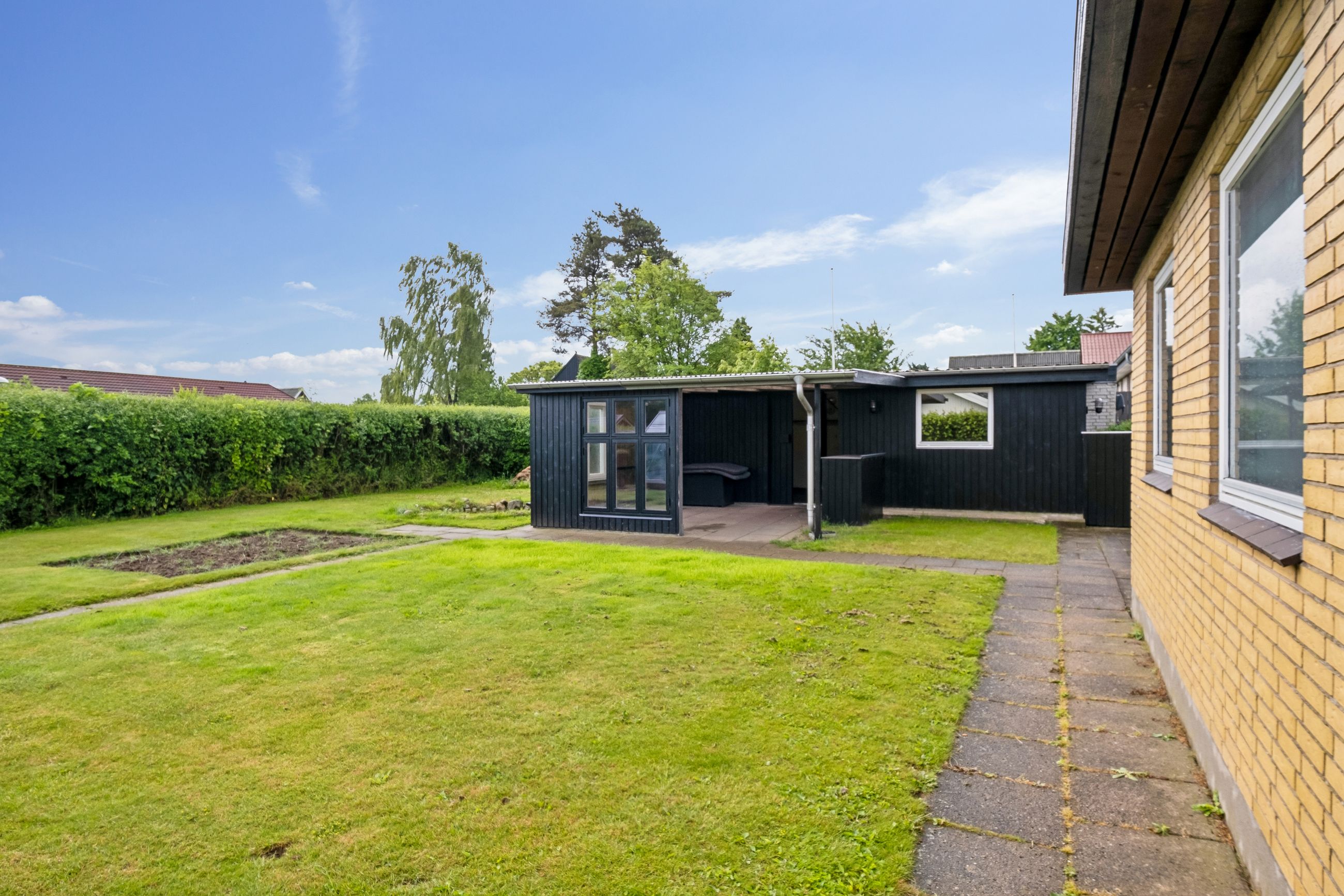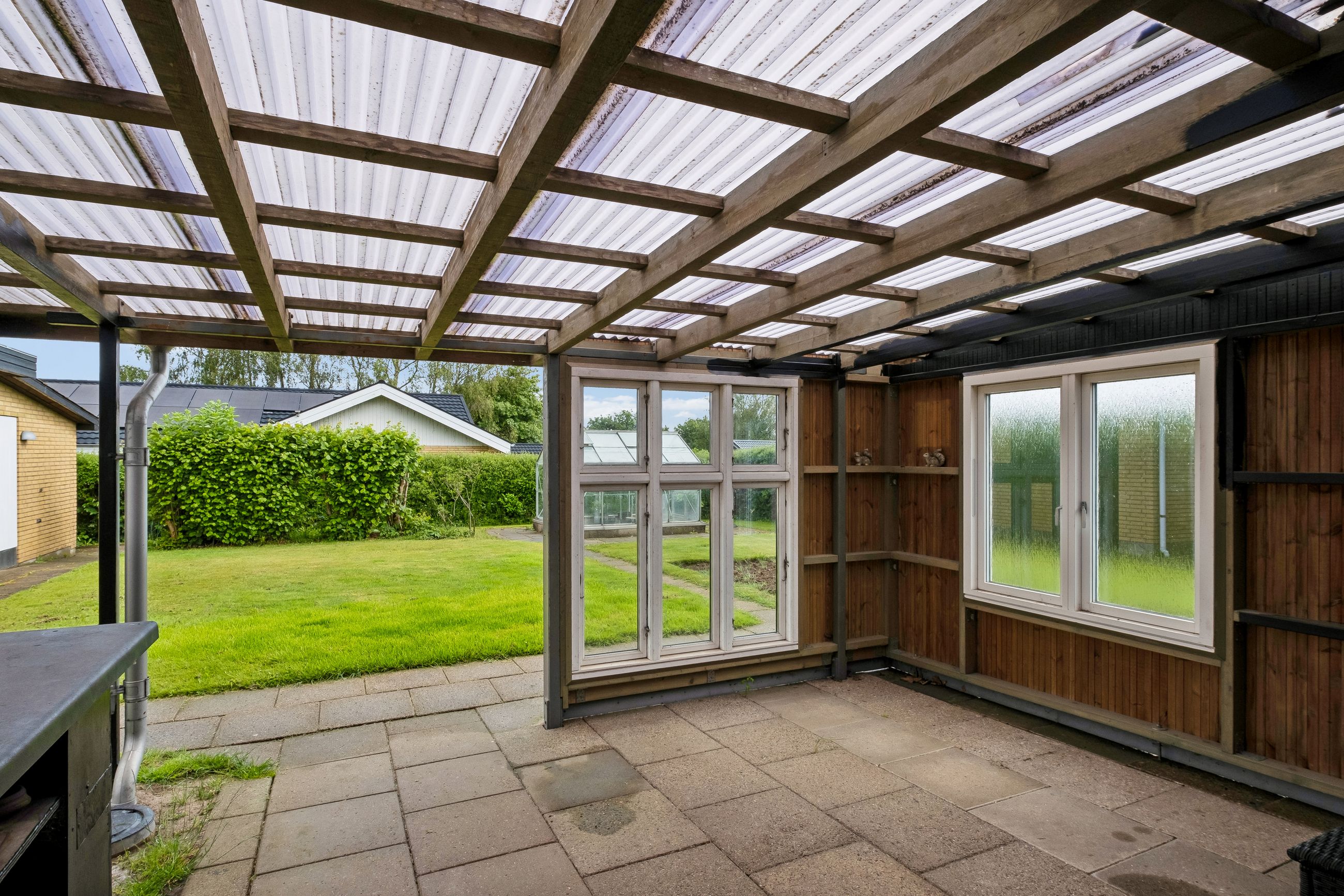 Selv udenfor fortsætter herlighederne med en lækker overdækket gårdhaveterrasse på 20 m2 i forbindelse med det yderst anvendelige værksted/hobbyrum på 35 m2 som både er isoleret, opvarmet og installeret med flere kraftstik – til sammen ideelt til hyggelige sommeraftener eller kreative projekter året rundt. Endvidere findes der en garage på 24 m2 og et drivhus. Den lukkede have sikrer privatlivets fred og danner rammen om leg eller afslapning.