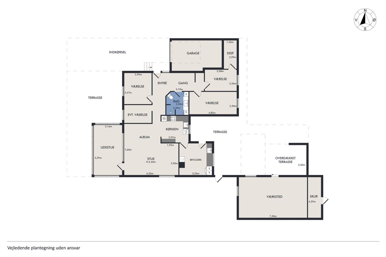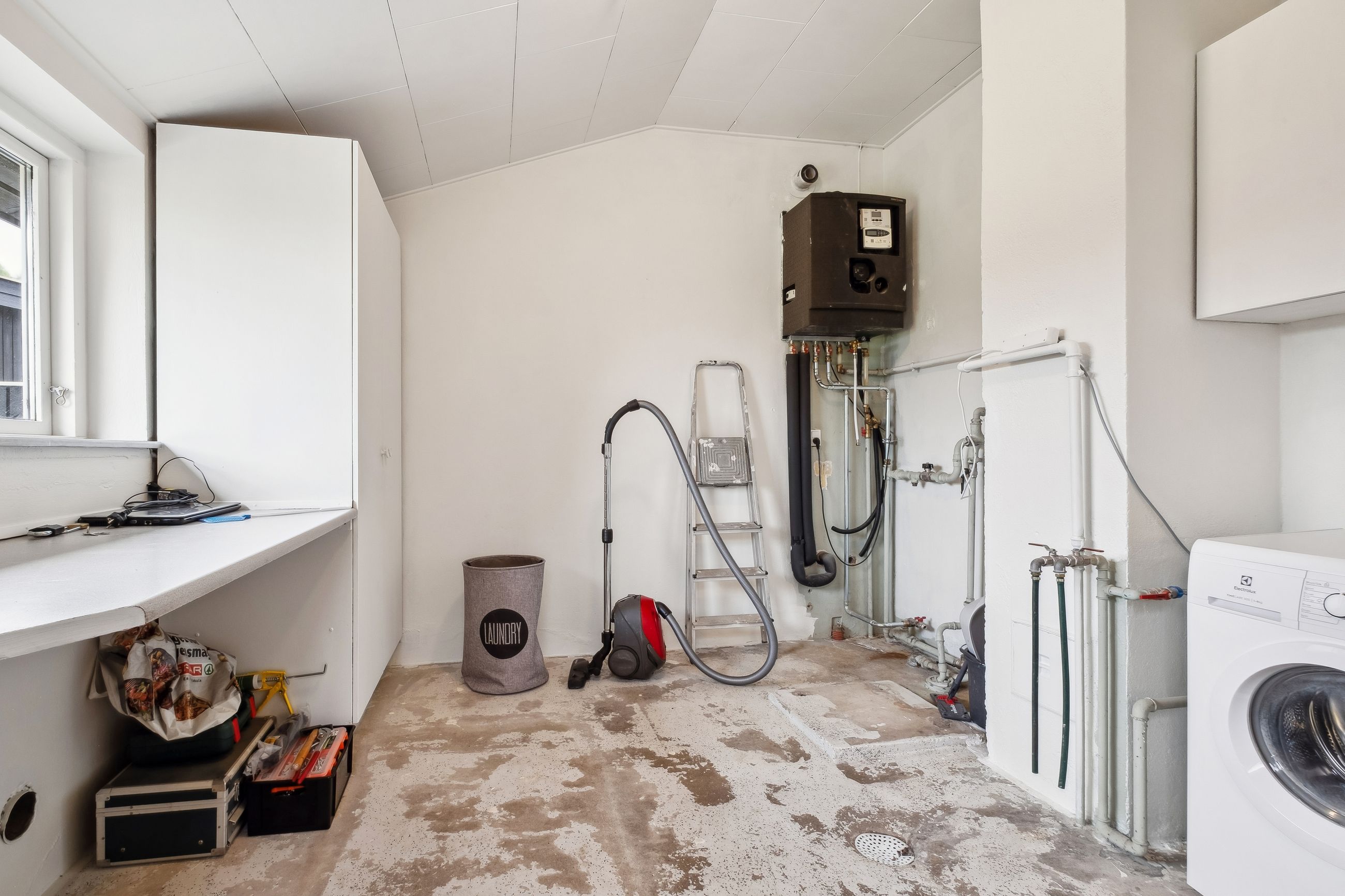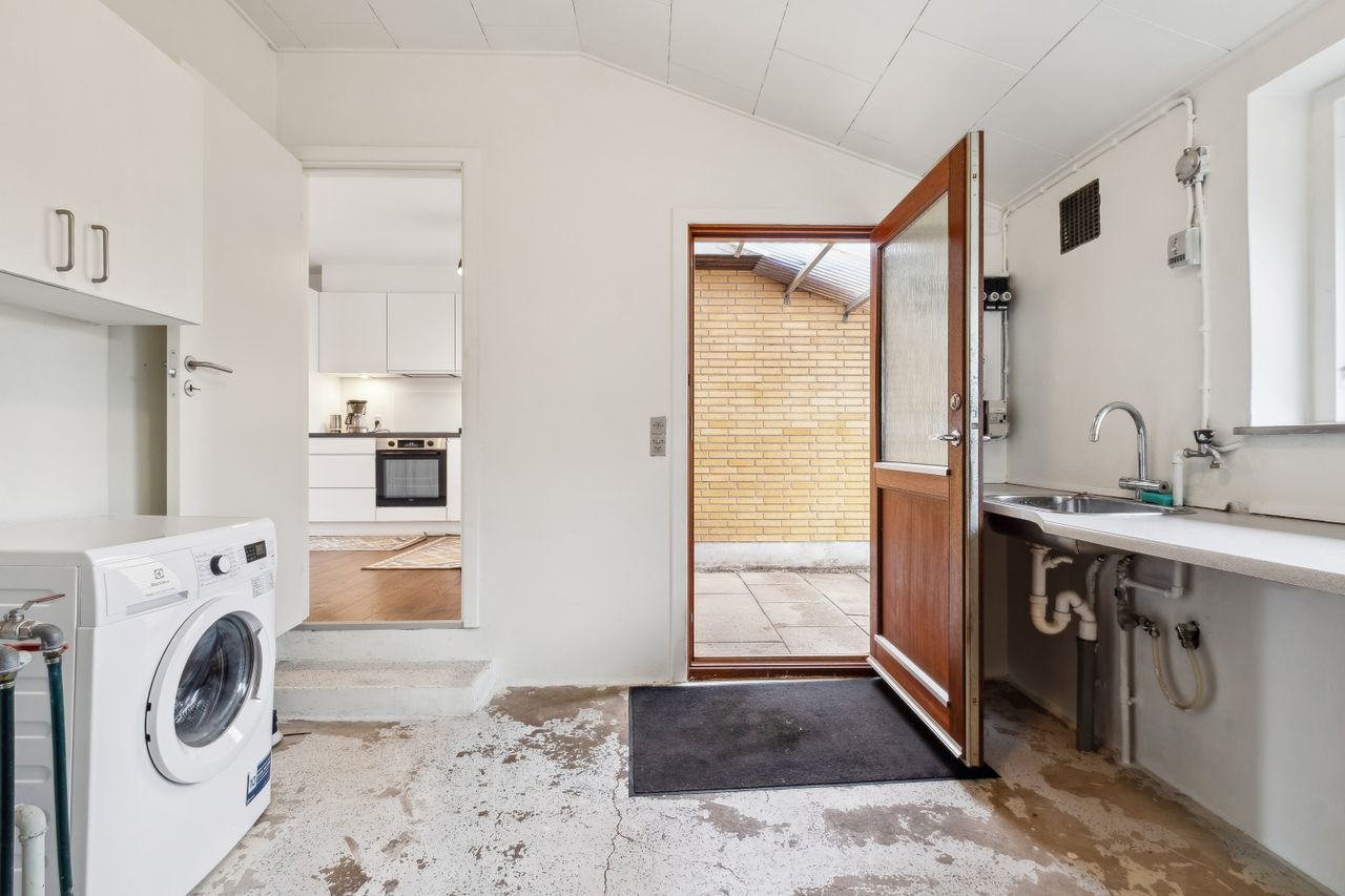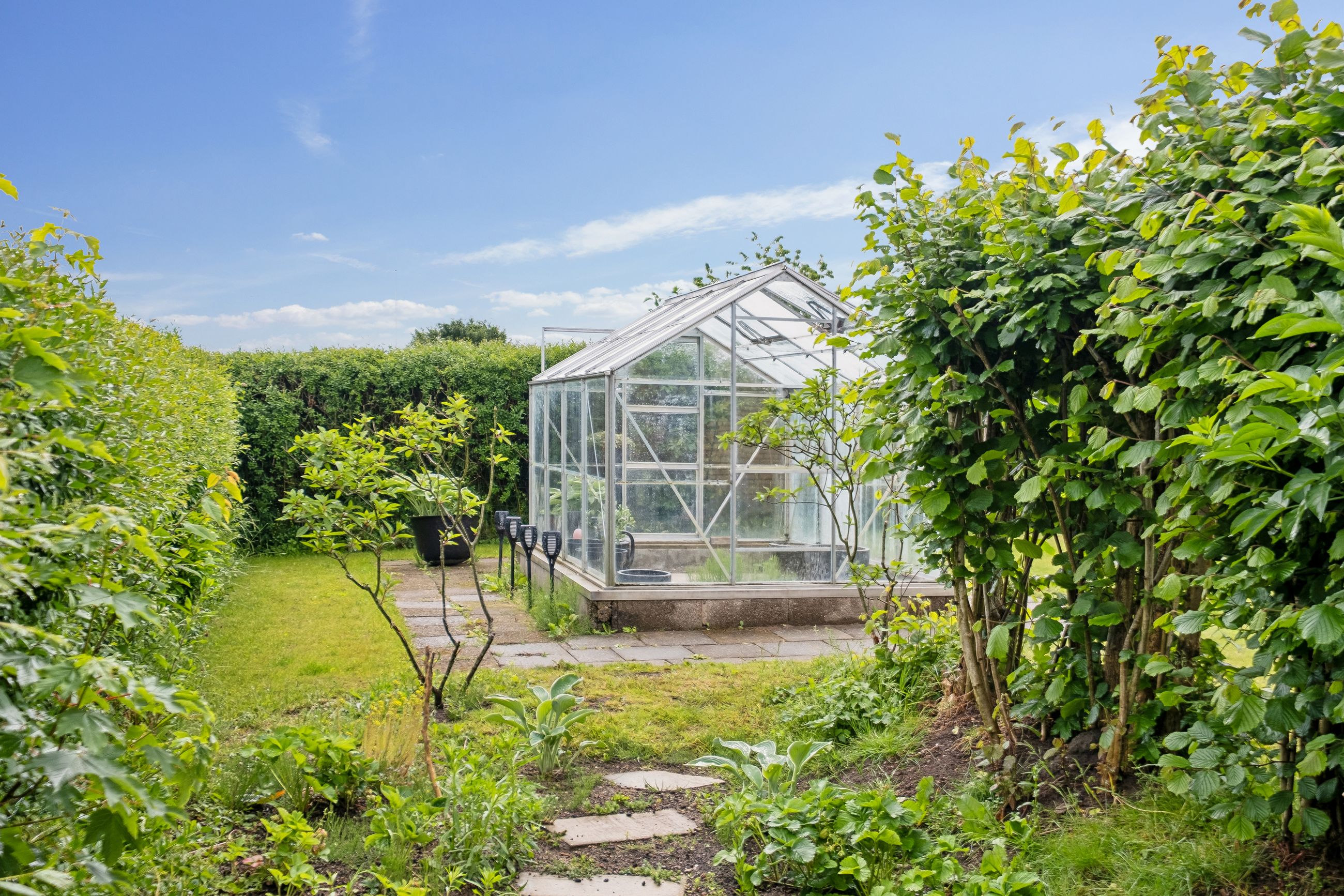 Selv udenfor fortsætter herlighederne med en lækker overdækket gårdhaveterrasse på 20 m2 i forbindelse med det yderst anvendelige værksted/hobbyrum på 35 m2 som både er isoleret, opvarmet og installeret med flere kraftstik – til sammen ideelt til hyggelige sommeraftener eller kreative projekter året rundt. Endvidere findes der en garage på 24 m2 og et drivhus. Den lukkede have sikrer privatlivets fred og danner rammen om leg eller afslapning.