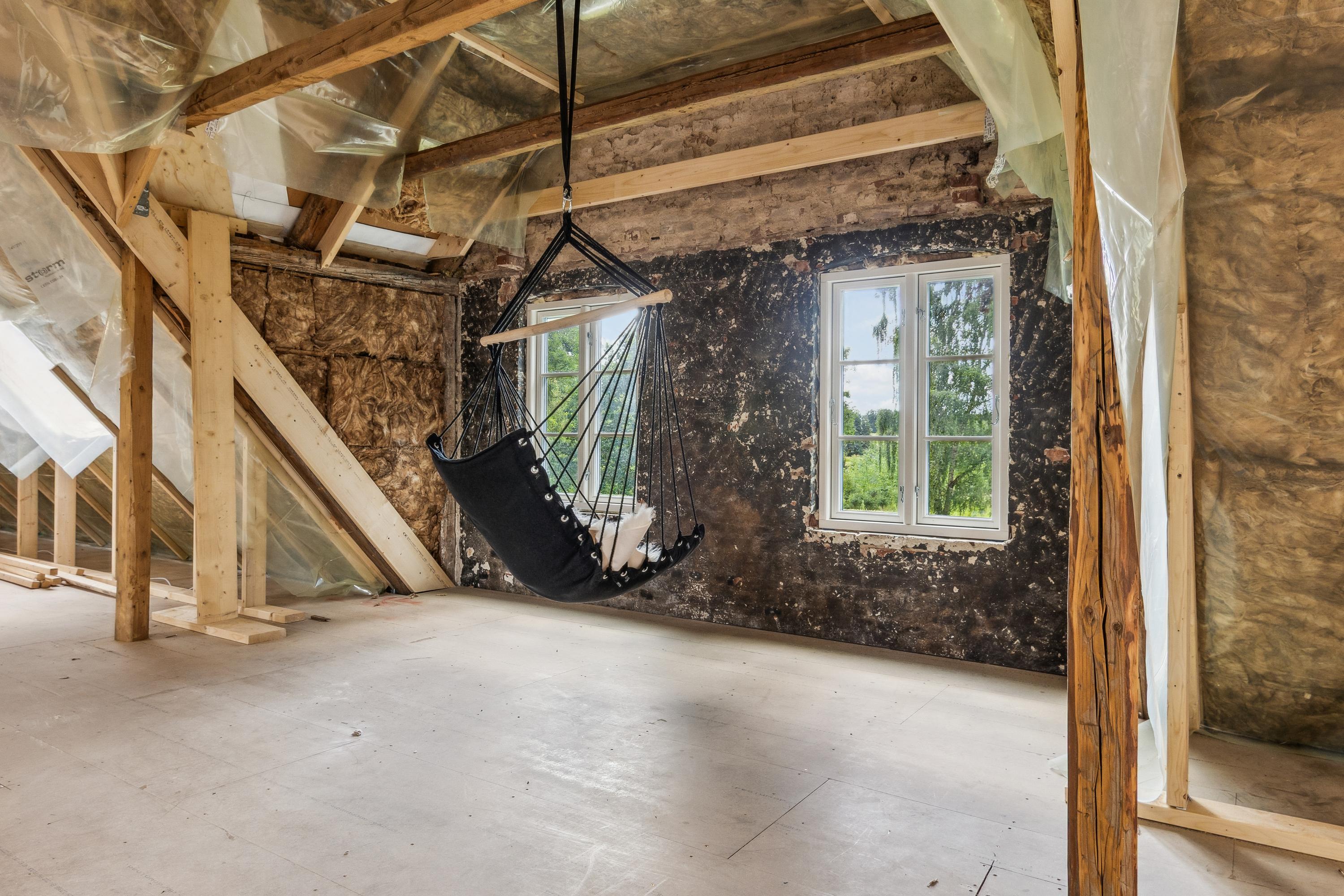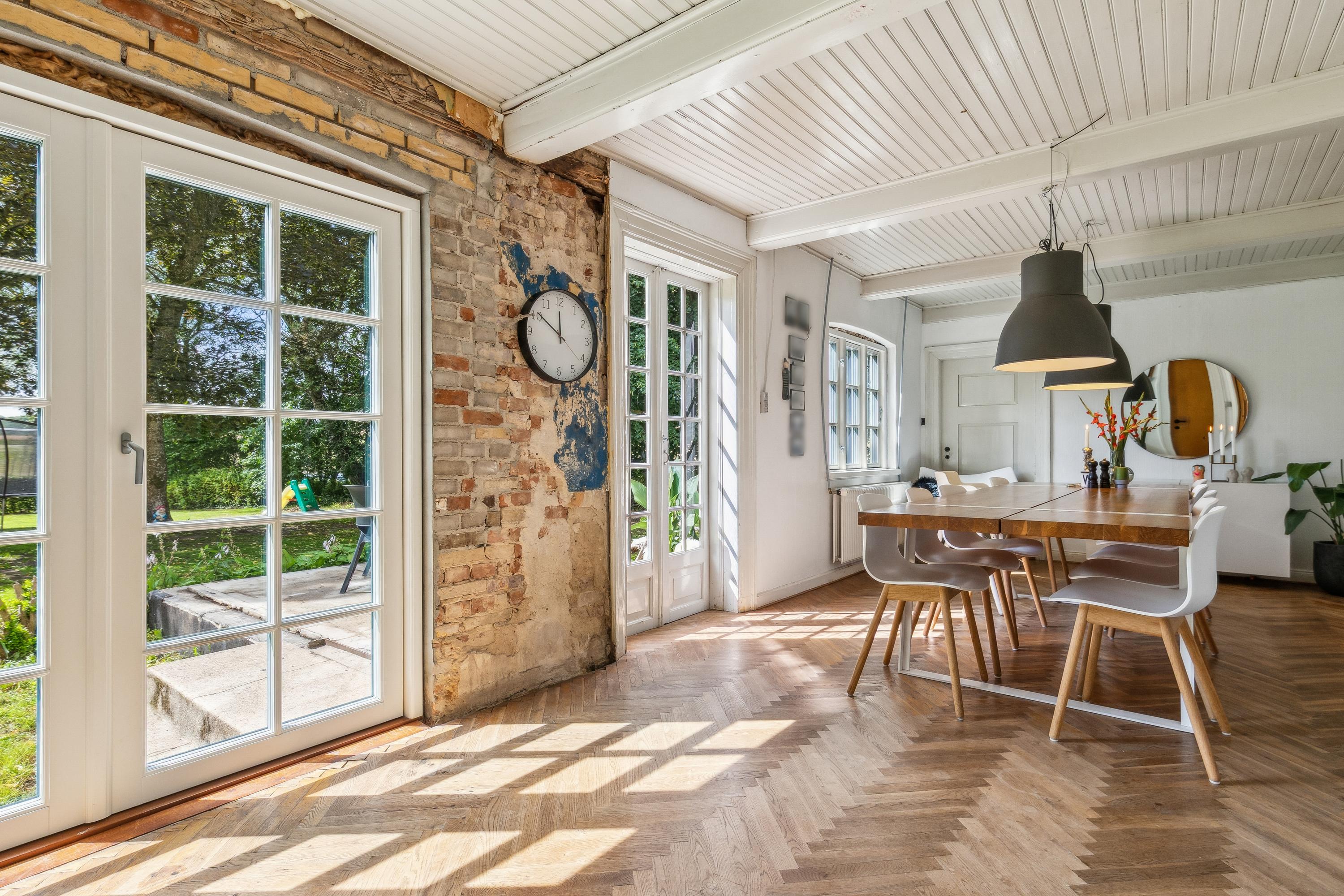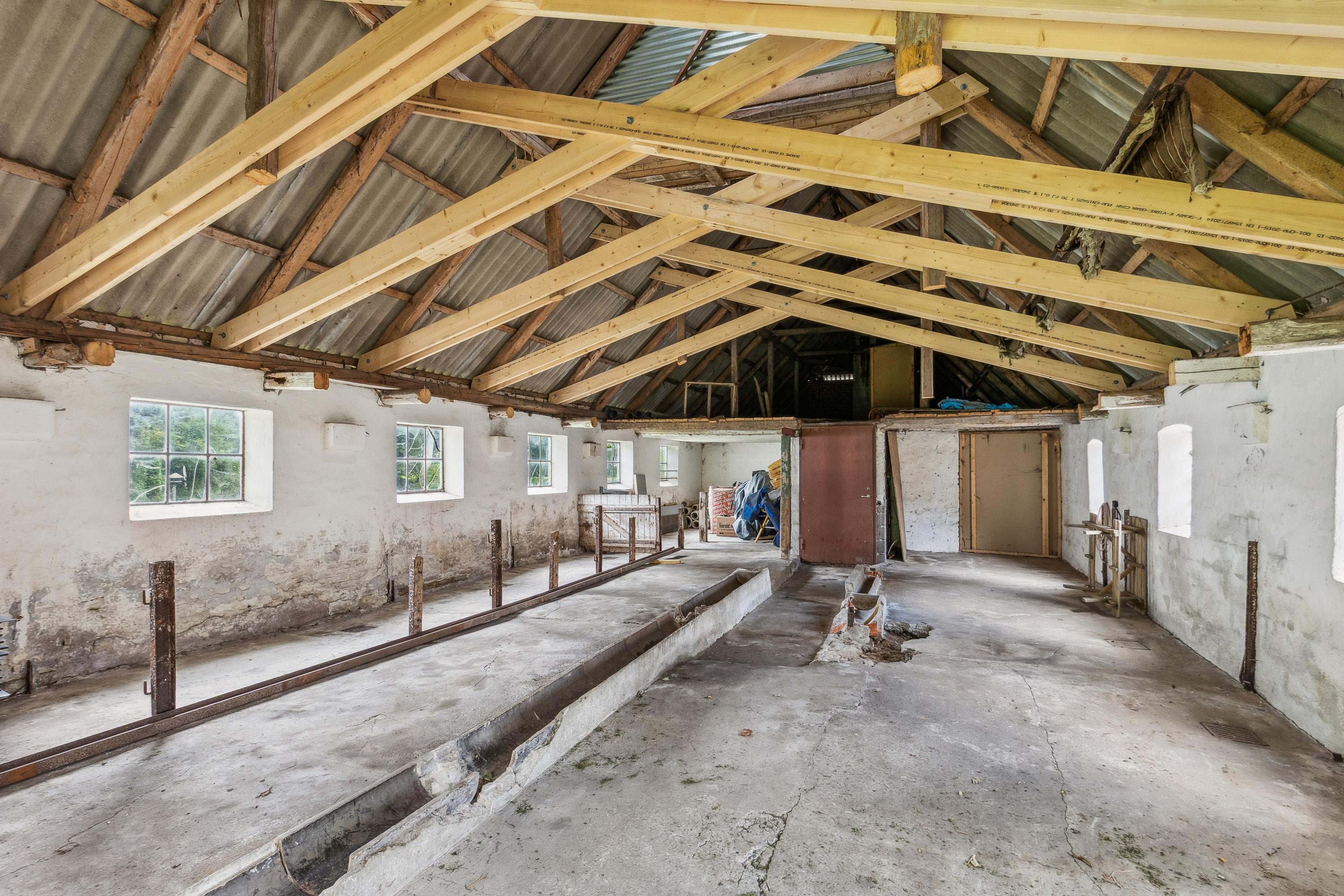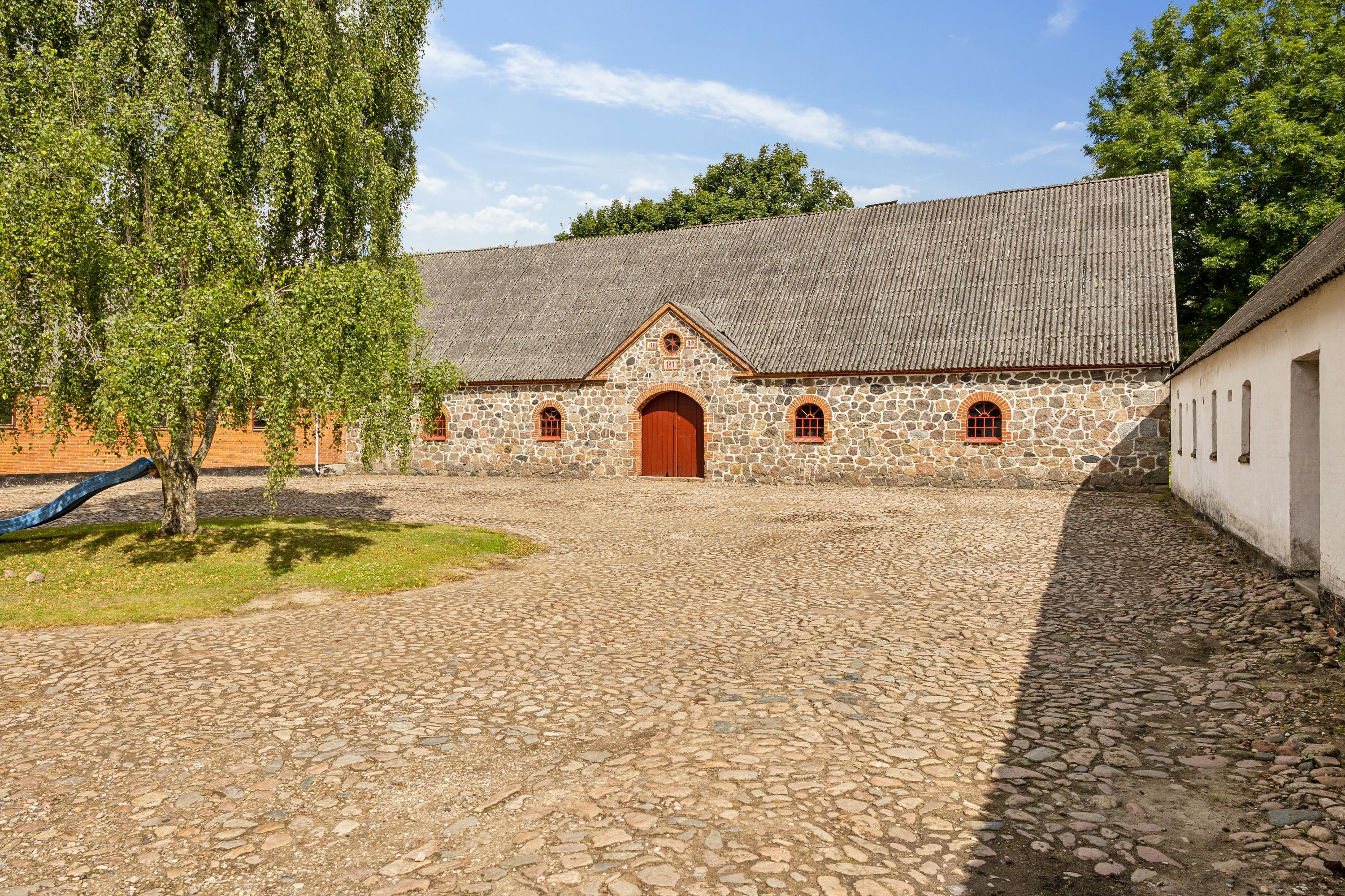 Ejendommen blev oprindeligt opført i 1877 - hvor blandt andet stuehus og den smukke kampestenslade er fra - hvor de charmerende flotte gamle bjælker
