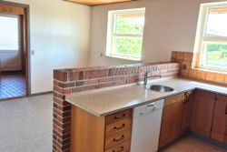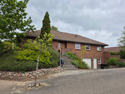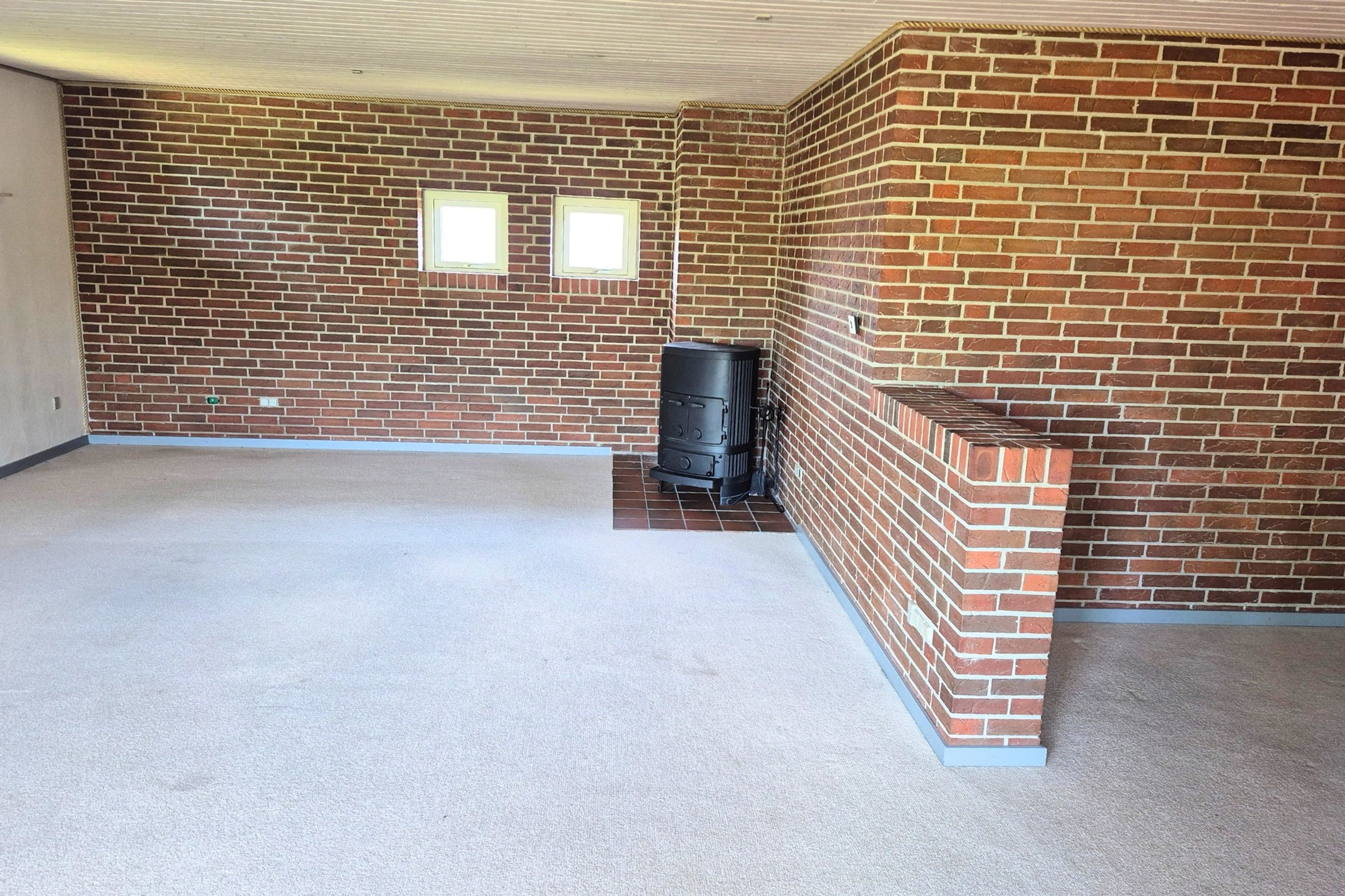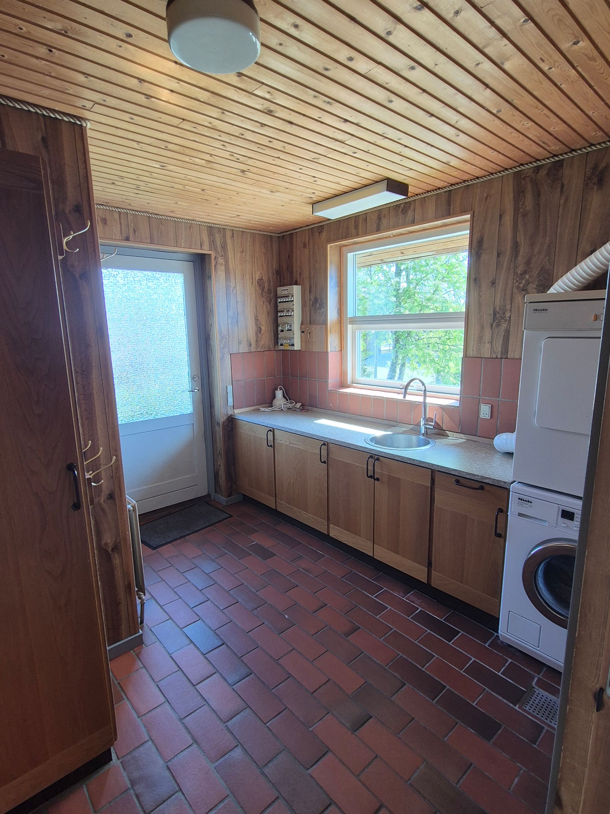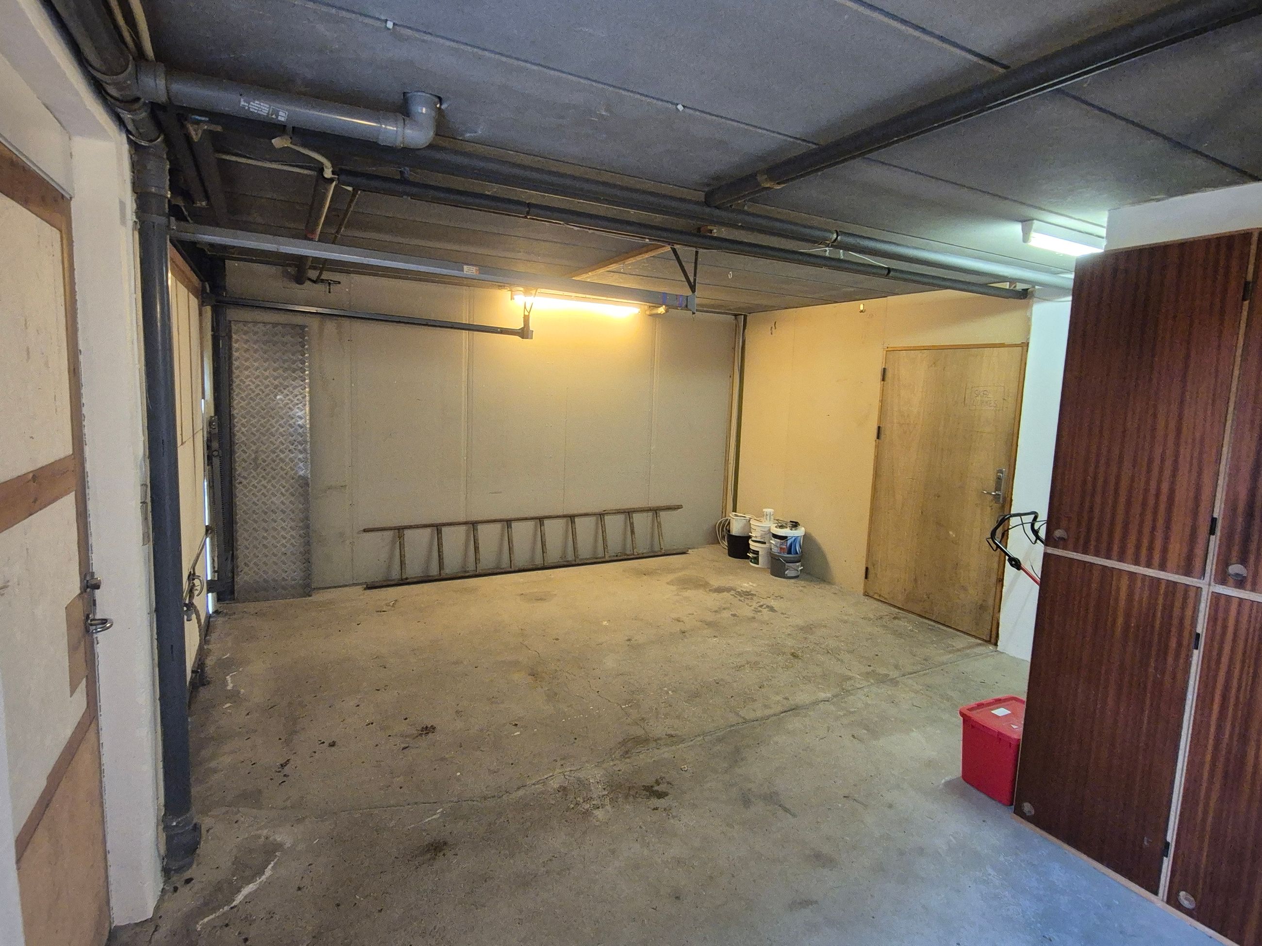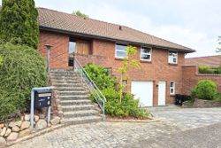 Ejendommen er flot placeret højt på en rolig, lukket villavej, hvilket skaber en fredelig atmosfære. Der er adgang til både entre og bryggers i stueplan, samt direkte adgang til husets kælderniveau, hvor der er garage og flere disponible rum – ideelle til værksted, hjemmekontor eller hobbyrum. Kælderen rummer 80 m2 udover de 185 m2 bolig, hvilket giver i alt 265 m2 anvendelig plads.