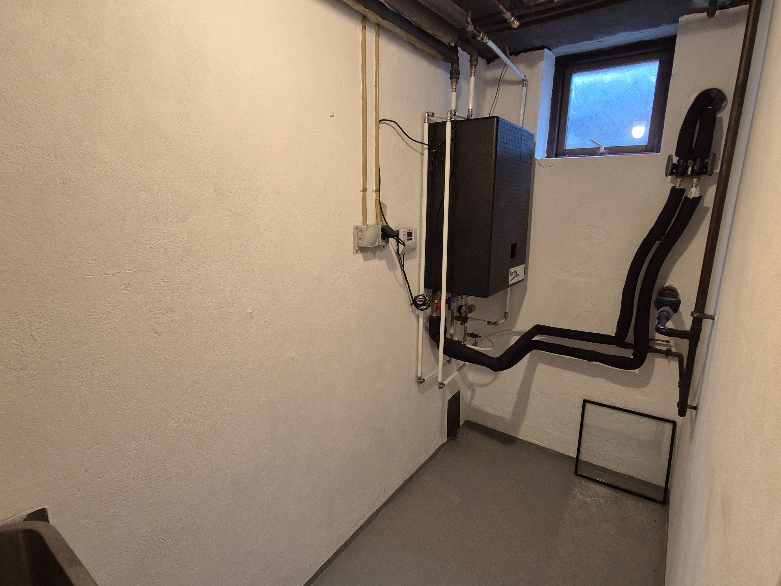 Huset er blevet tilsluttet fjernvarme, hvilket sikrer lave varmeudgifter. Samtidig har sælger udskiftet vinduerne til træ/alu i 2014.