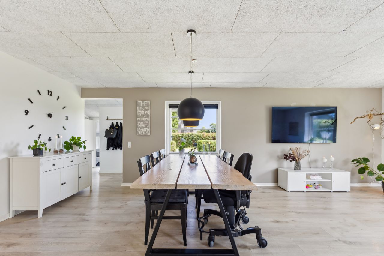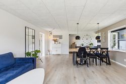 Velkommen til denne charmerende villa beliggende i det hyggelige og aktive lokalsamfund, Ølsted. Denne rummelige ejendom fra 1961 byder på hele 160 kvadratmeter fordelt over to plan, hvilket gør den ideel for den store familie eller dem, der blot ønsker ekstra plads. Når du træder ind ad døren, mødes du af en lys og indbydende entre, der fører dig videre til husets hjerte: et åbent køkken/alrum. Her finder du et lyst og moderne køkken med masser af skabsplads og arbejdsflade, perfekt til både hverdagens måltider og større middage.