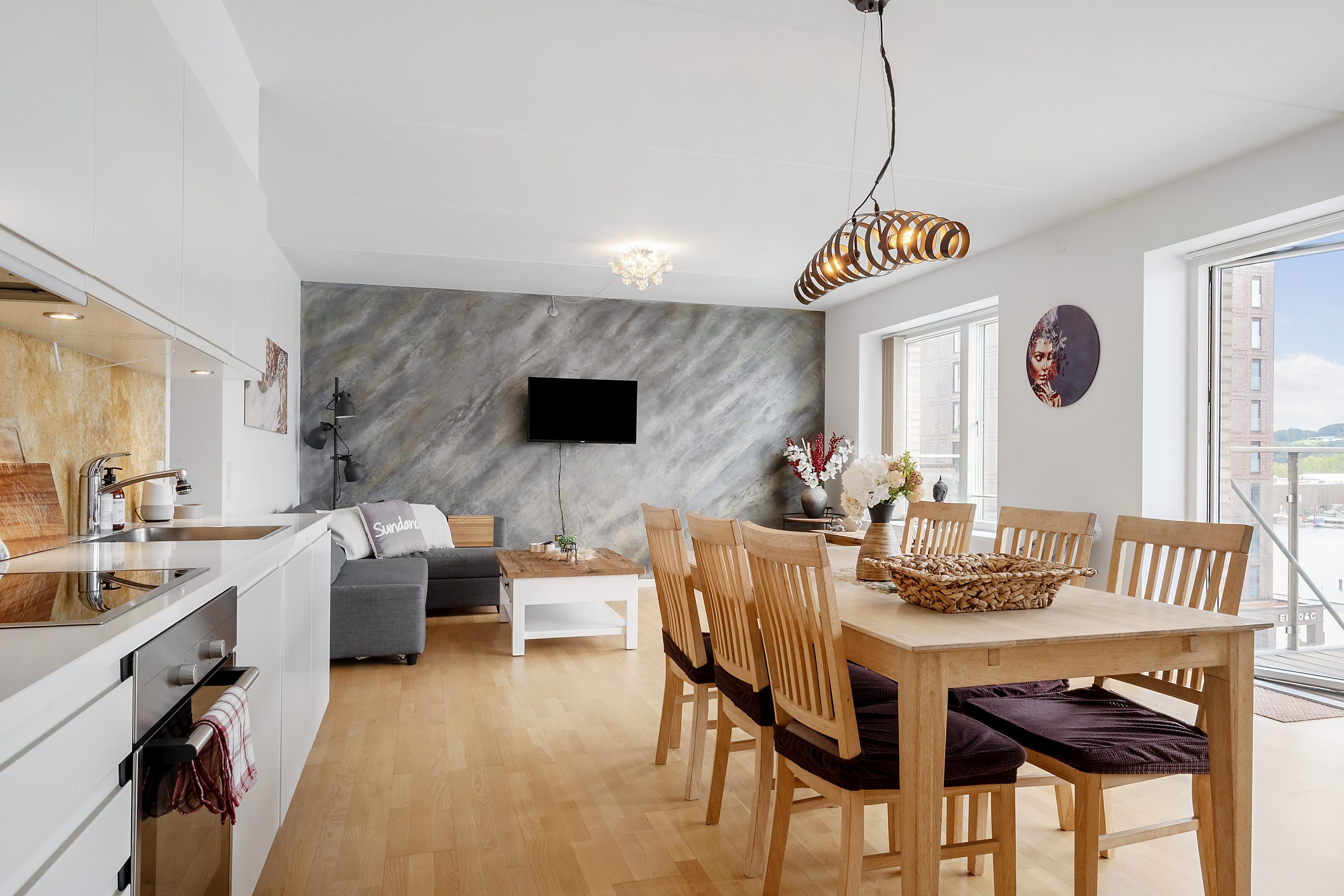 En lys og indbydende lejlighed på 85 veldisponerede kvadratmeter beliggende på Stævnen 26 i Vejle midt i det attraktive havneområde, hvor arkitektur, vand og byliv smelter sammen. Her får du en bolig med både sjæl og funktionalitet, og med en beliggenhed, der gør hverdagen både nemmere og