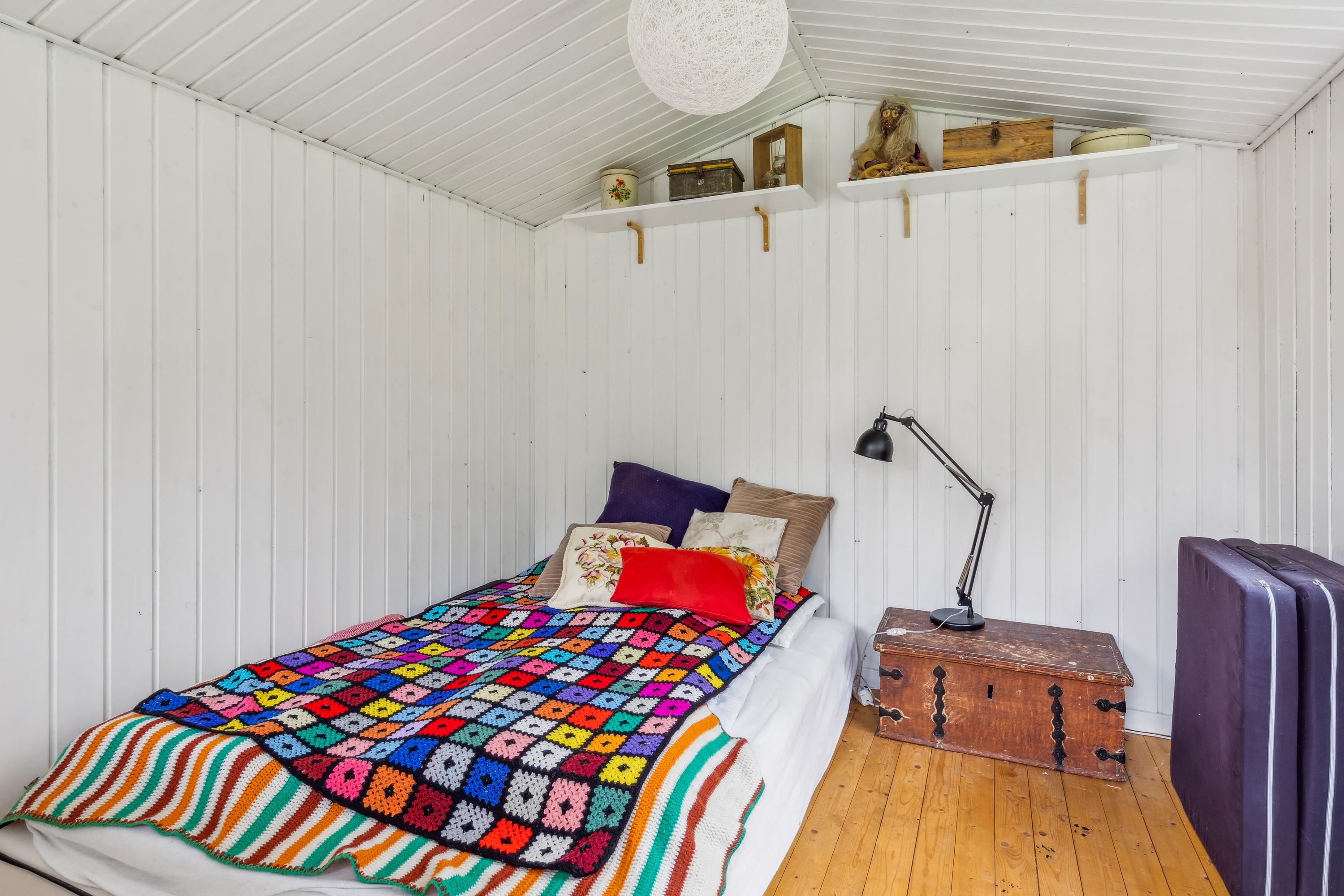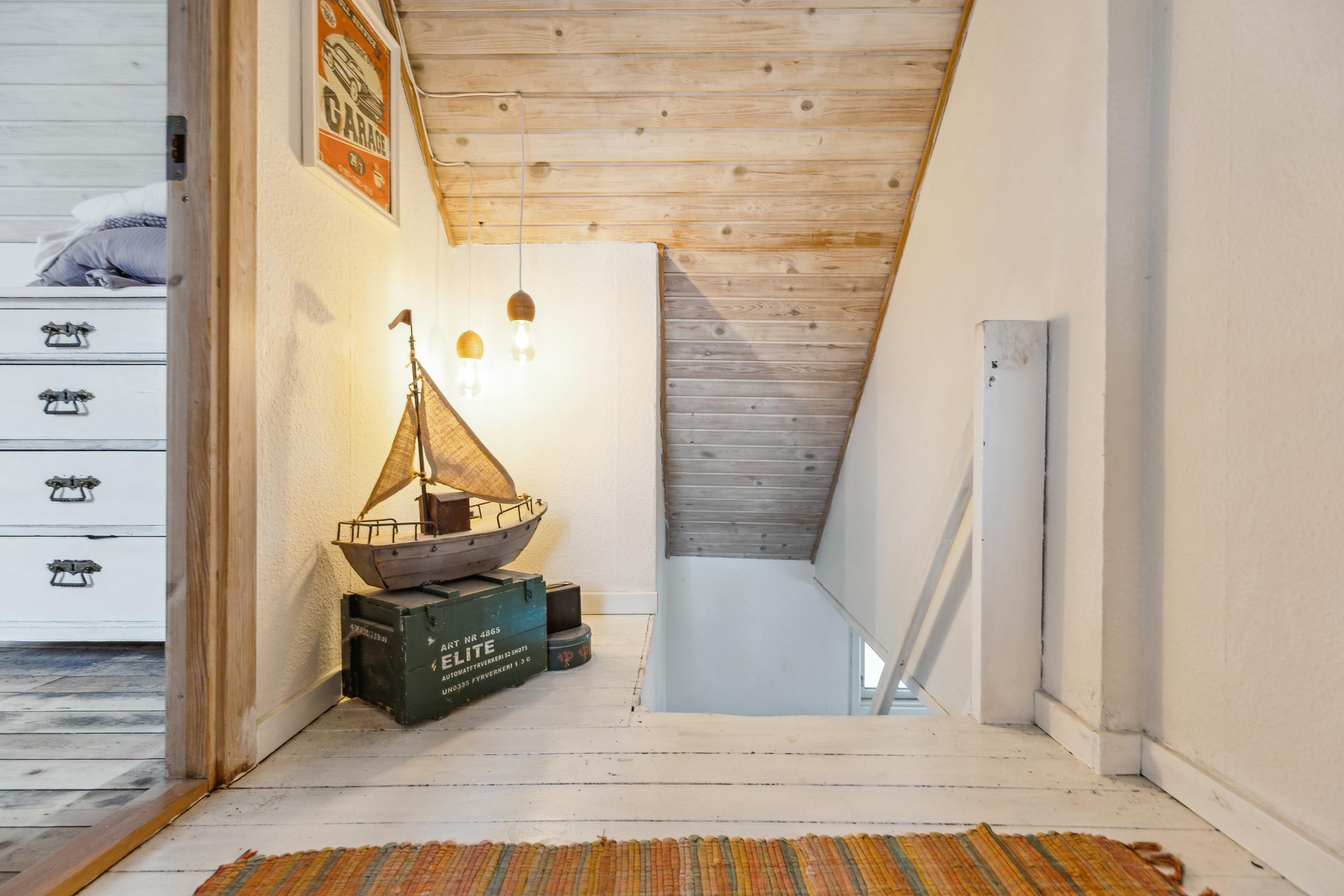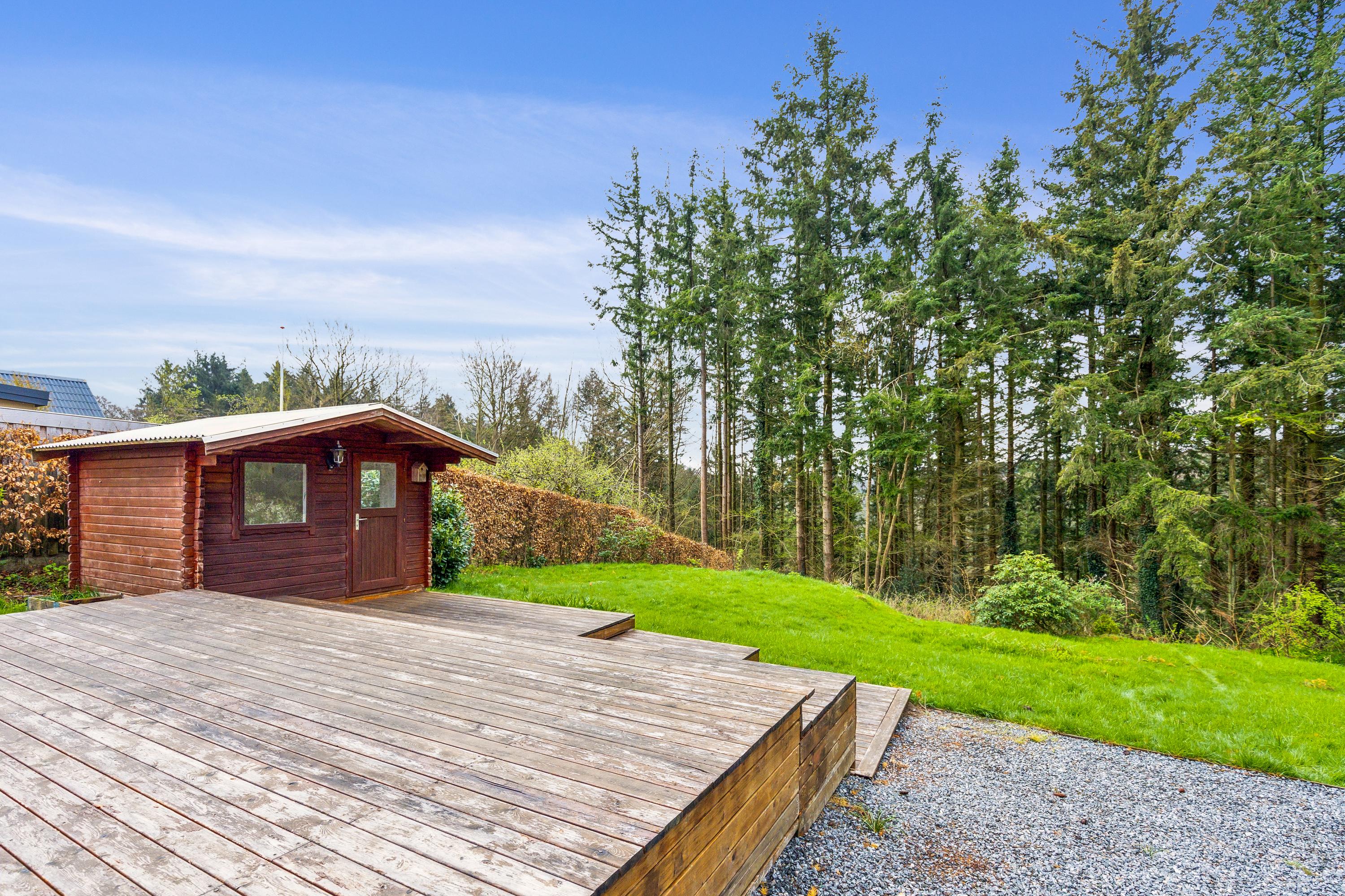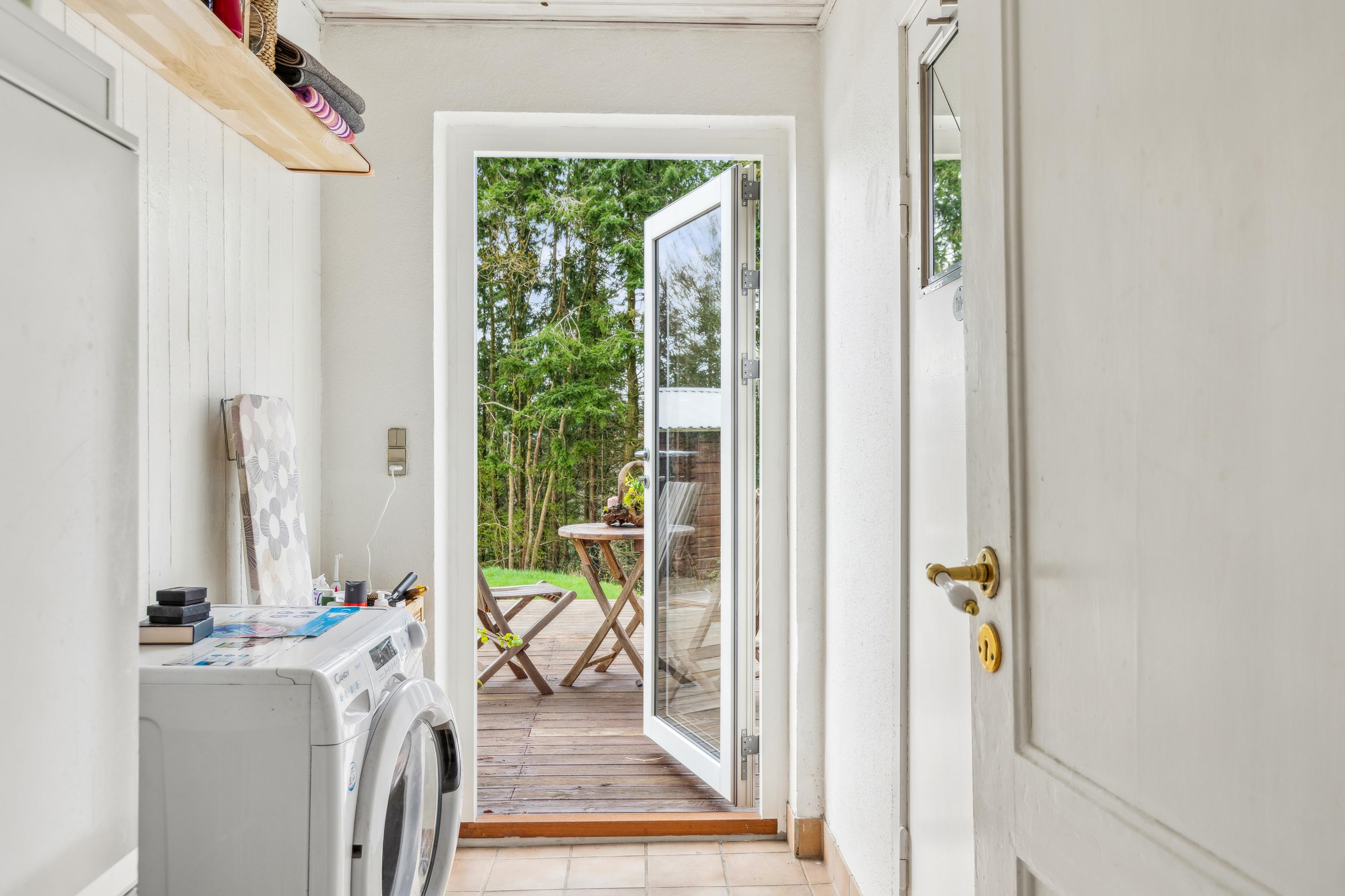 Ved ankomst til villaen mødes I af garagen, hvor bilen kan holde eller til brug til opbevaring. Haven er naturskøn og grænser op