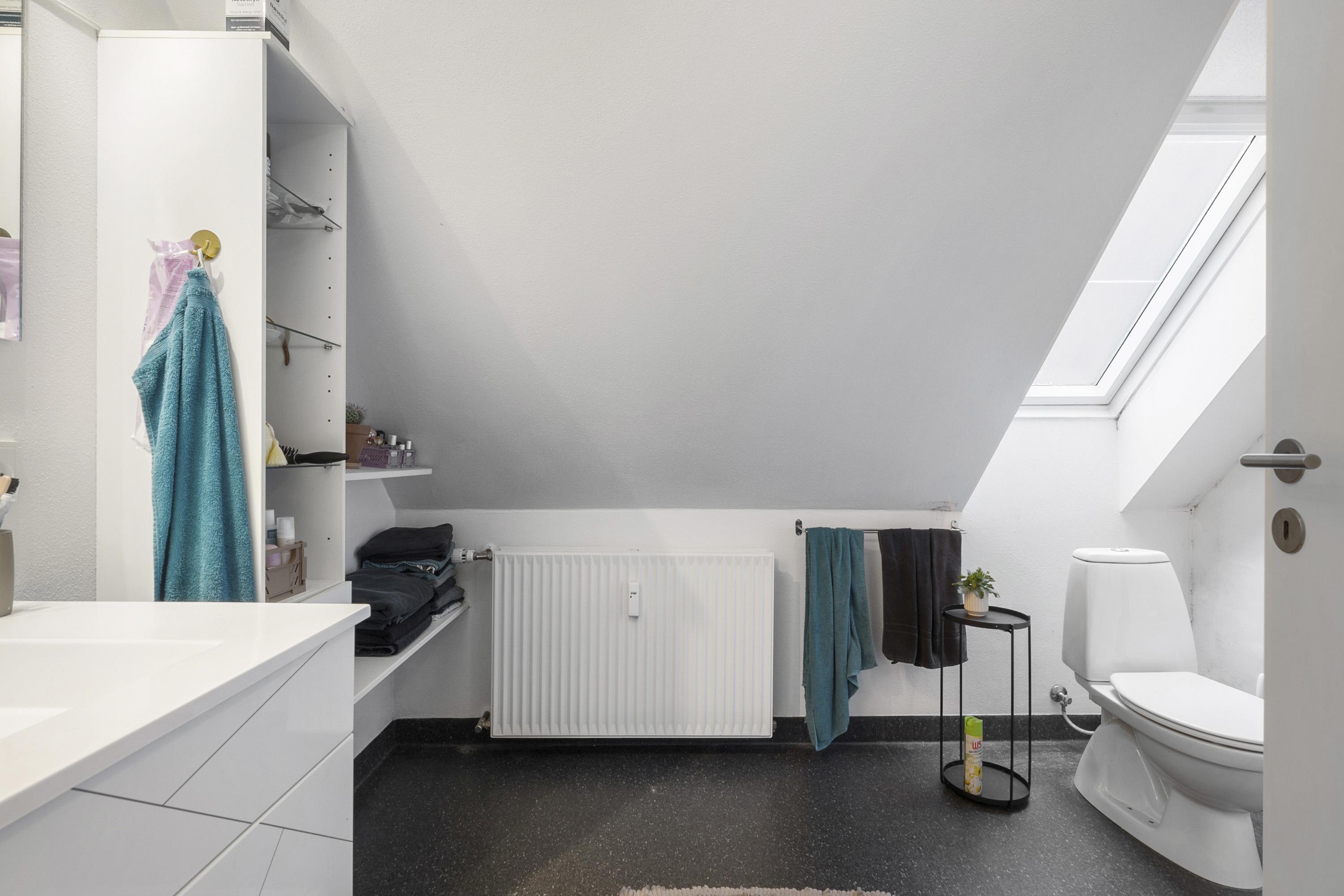 Du får lille bryggers med plads til vaskesøjle, og så får du et lækkert stort åbent køkkenalrum og stue, der følger rumdelere med der giver en god indretningsfornemmelse så du kan have både kontor, stue