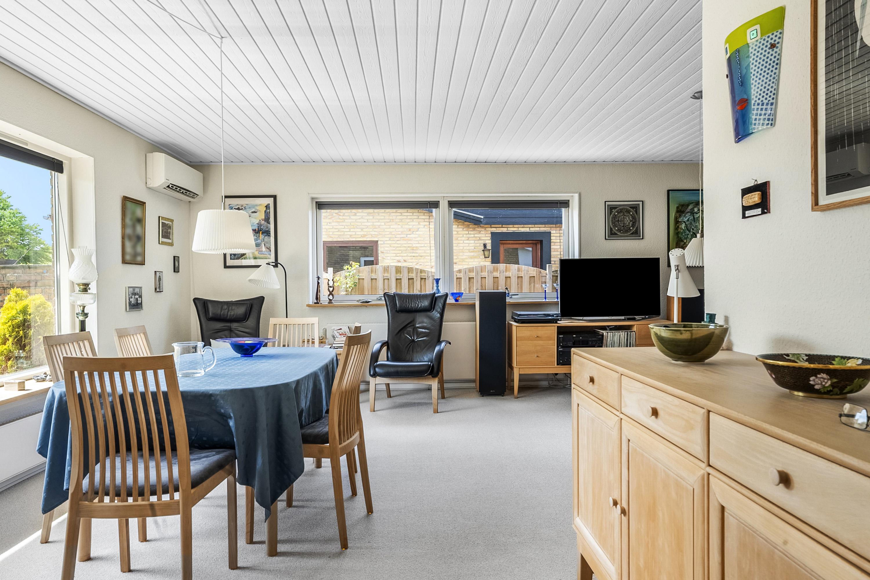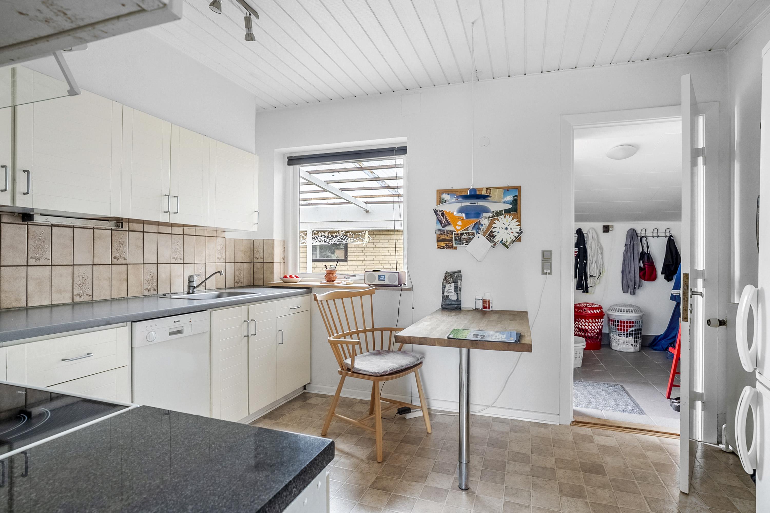 Villa på 104 kvm er beliggende i rolige og familievenlige omgivelser i Grejs. Boligen byder på en funktionel planløsning med tre soveværelser, et køkken, samt en spisestue og stue i åben forbindelse, hvilket giver et lyst og luftigt opholdsrum.