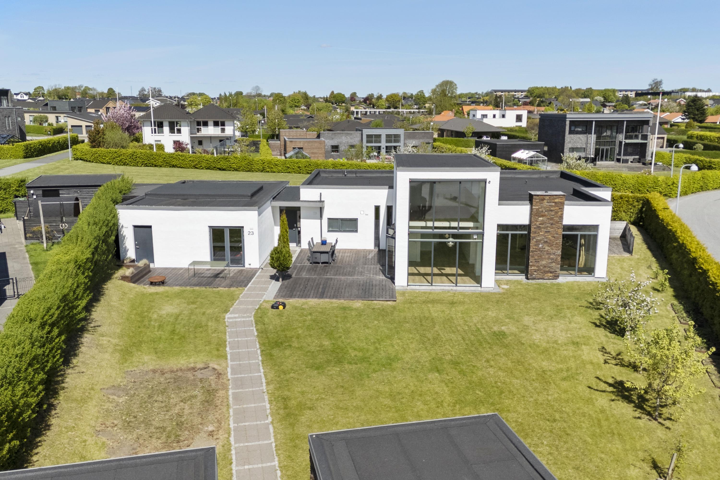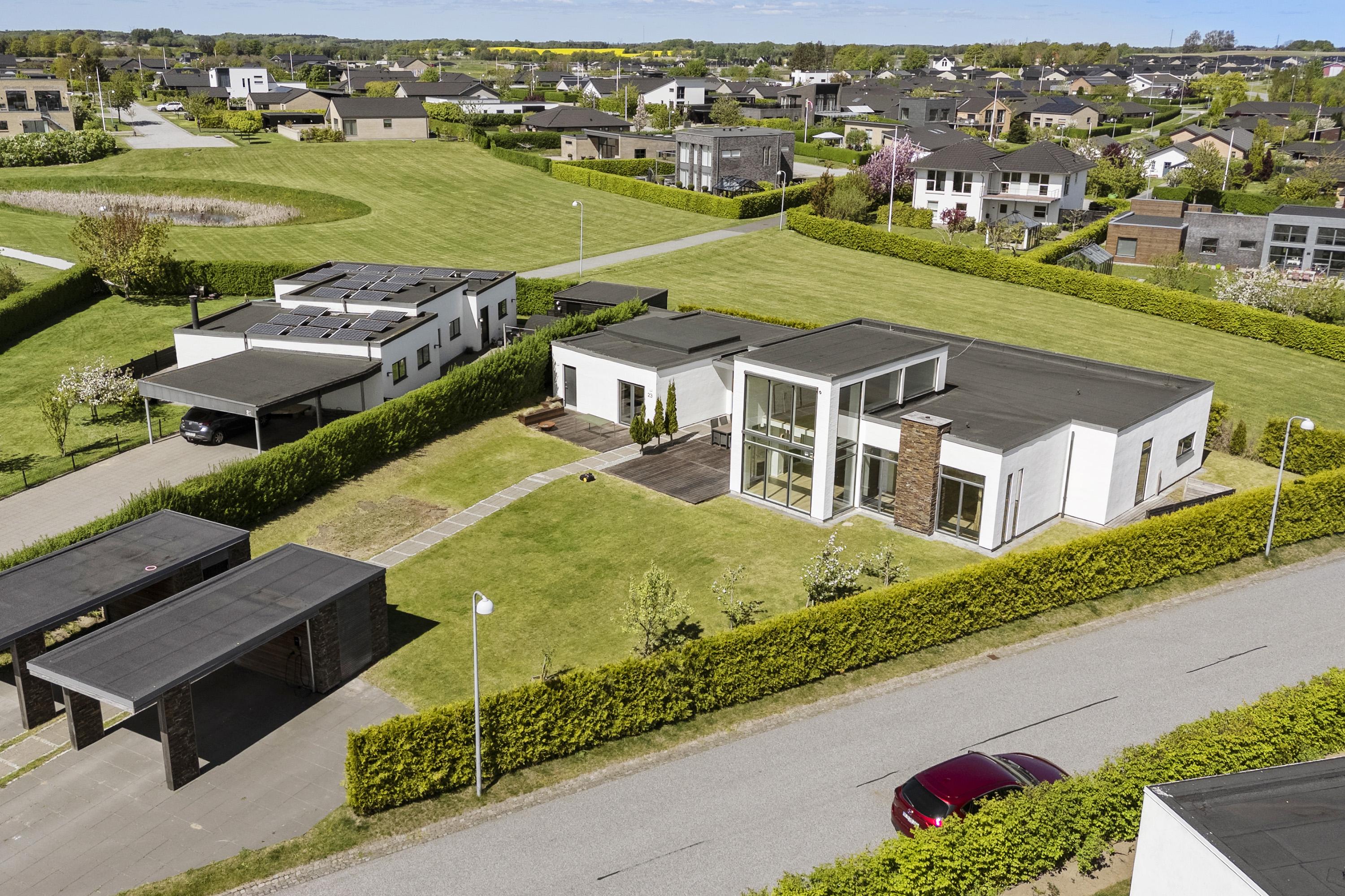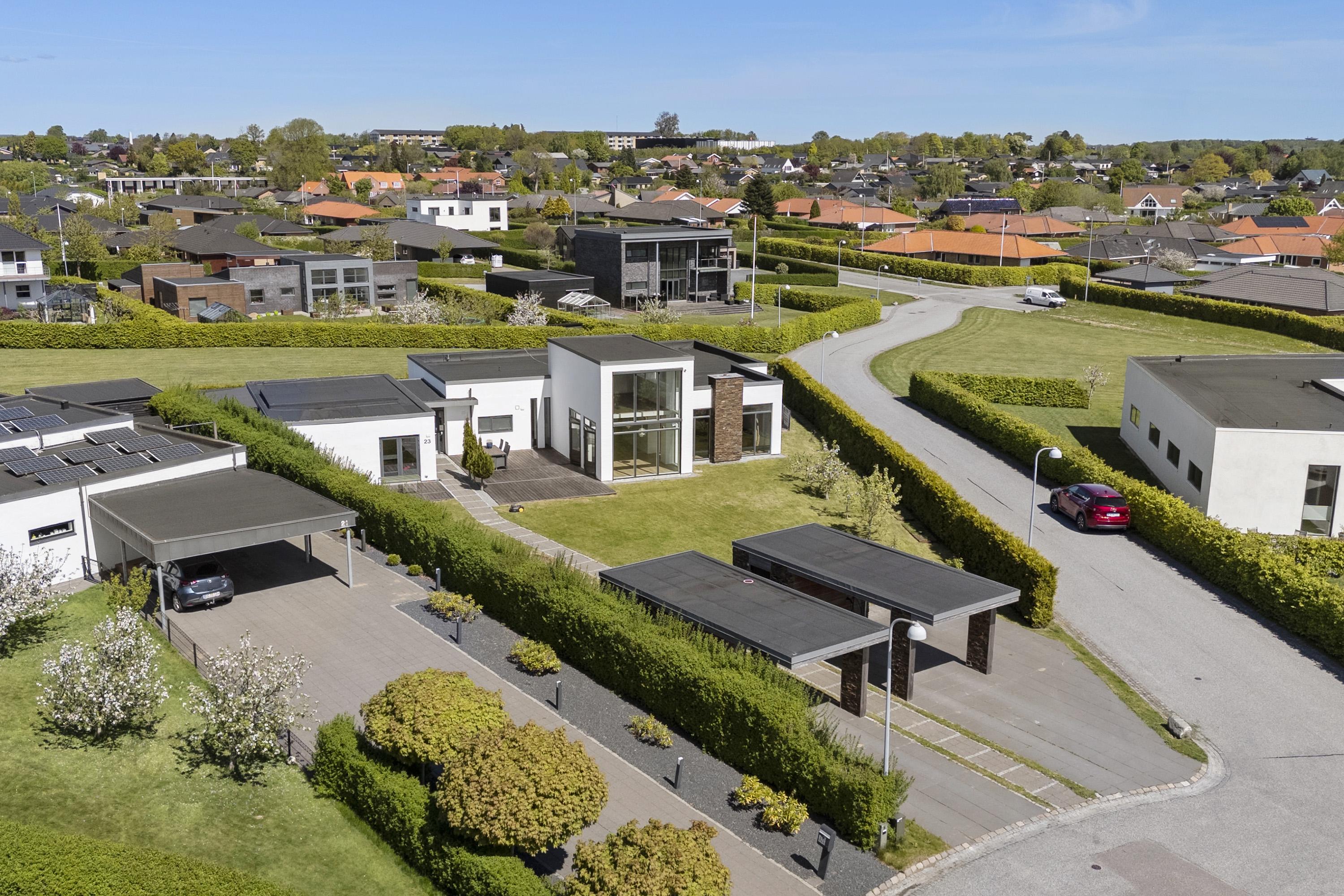 Velkommen til denne fantastiske moderne funkisvilla, der imponerer med sin stilfulde arkitektur og rummelige indretning. Med en ideel beliggenhed på Medeavej 23 på Uhrhøj, er dette hjem det perfekte valg for dem, der søger en kombination af elegance, komfort, masser af plads og attraktiv