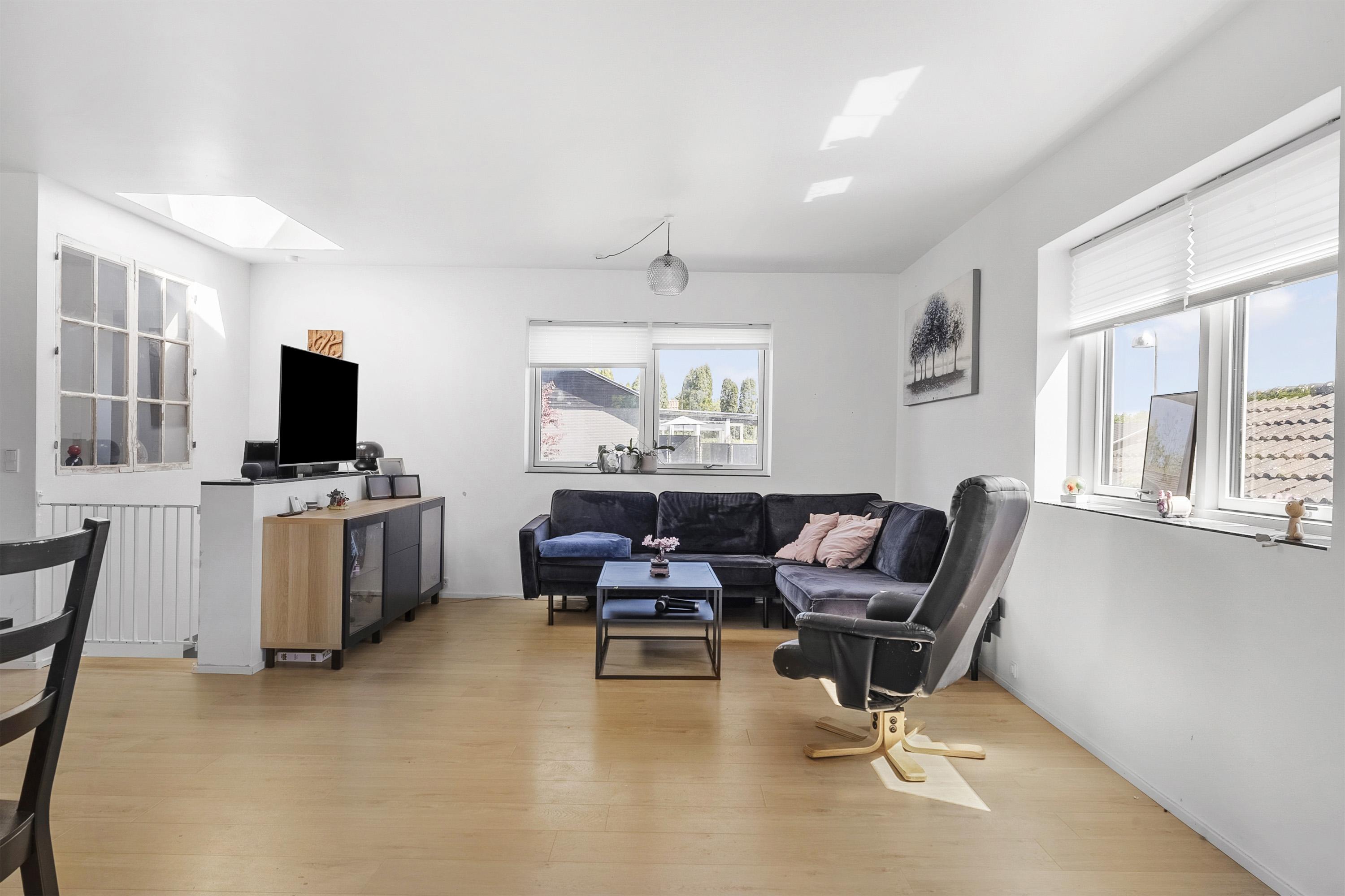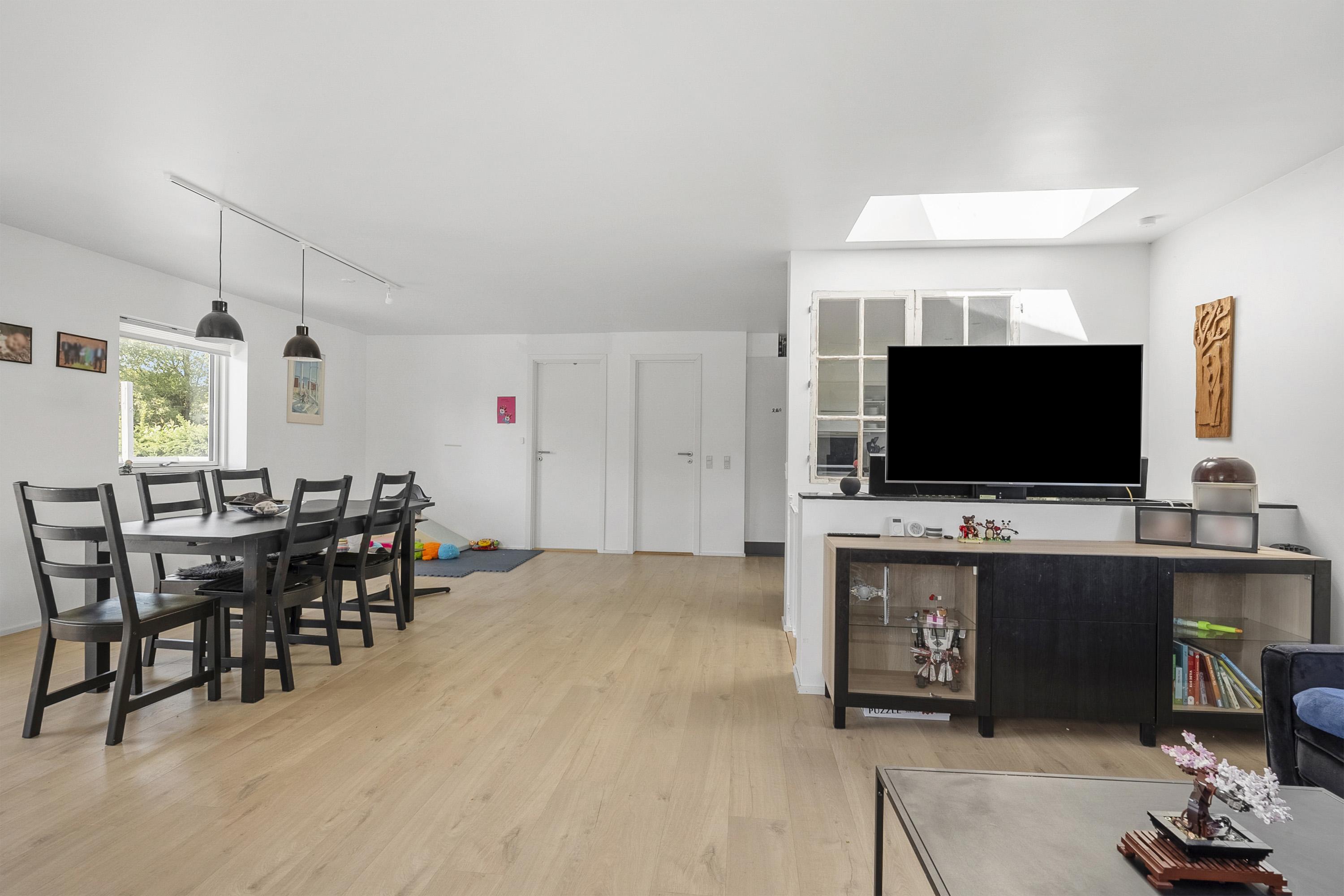 I det attraktive og rolige område i Blomsterkvarteret på Søndermarken finder du dette charmerende grå træhus, som rummer hele 164 etagemeter fordelt på beboelse og gode, disponible rum i kælderen. I stueplan finder du entre, åbent køkken i forbindelse med spisestue samt stue. Udover et dejligt