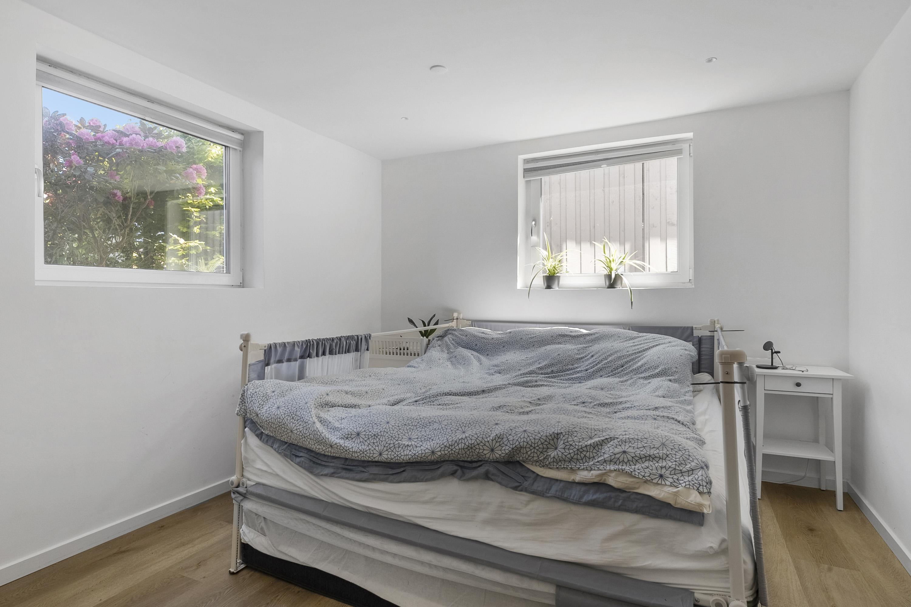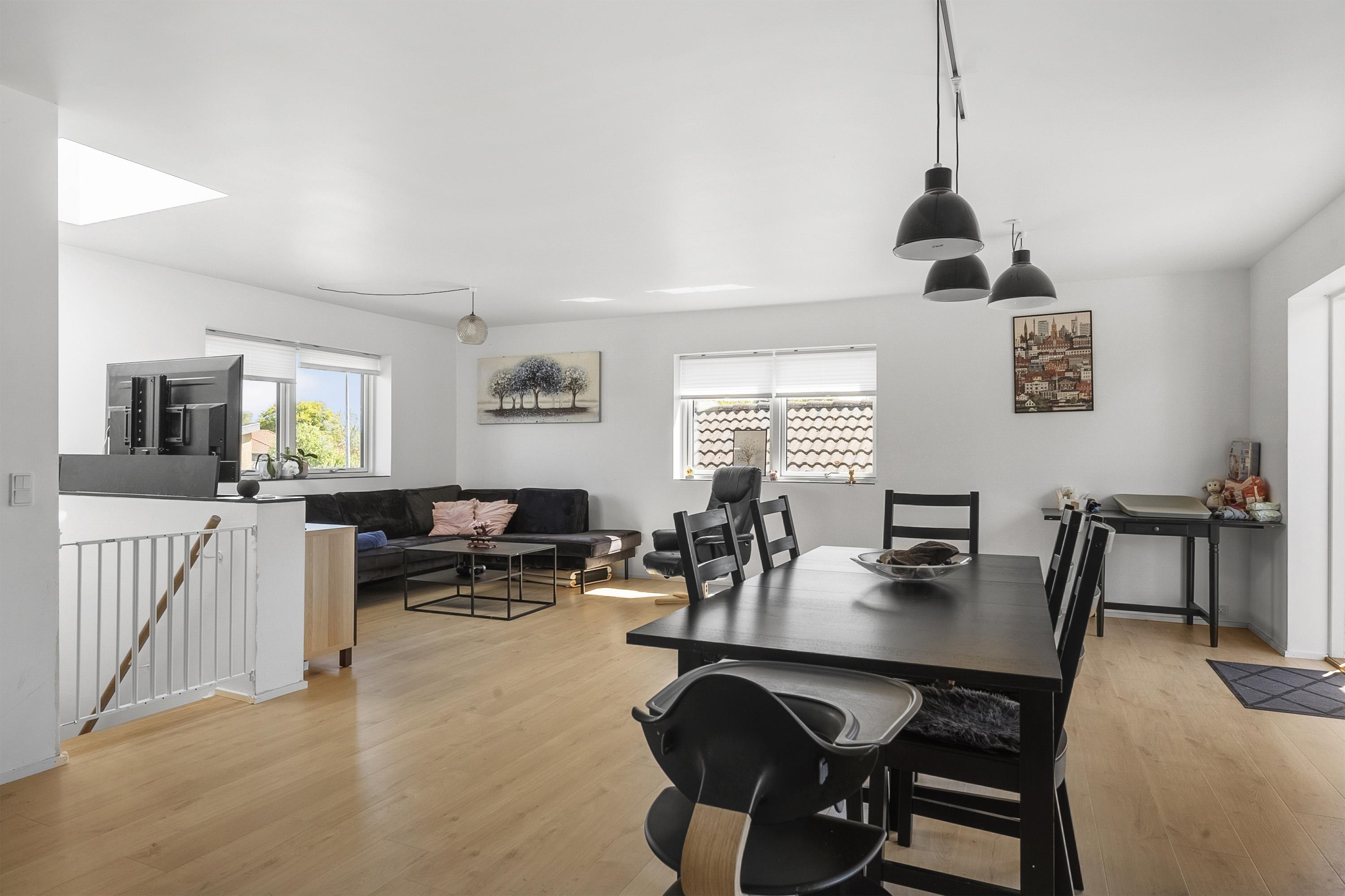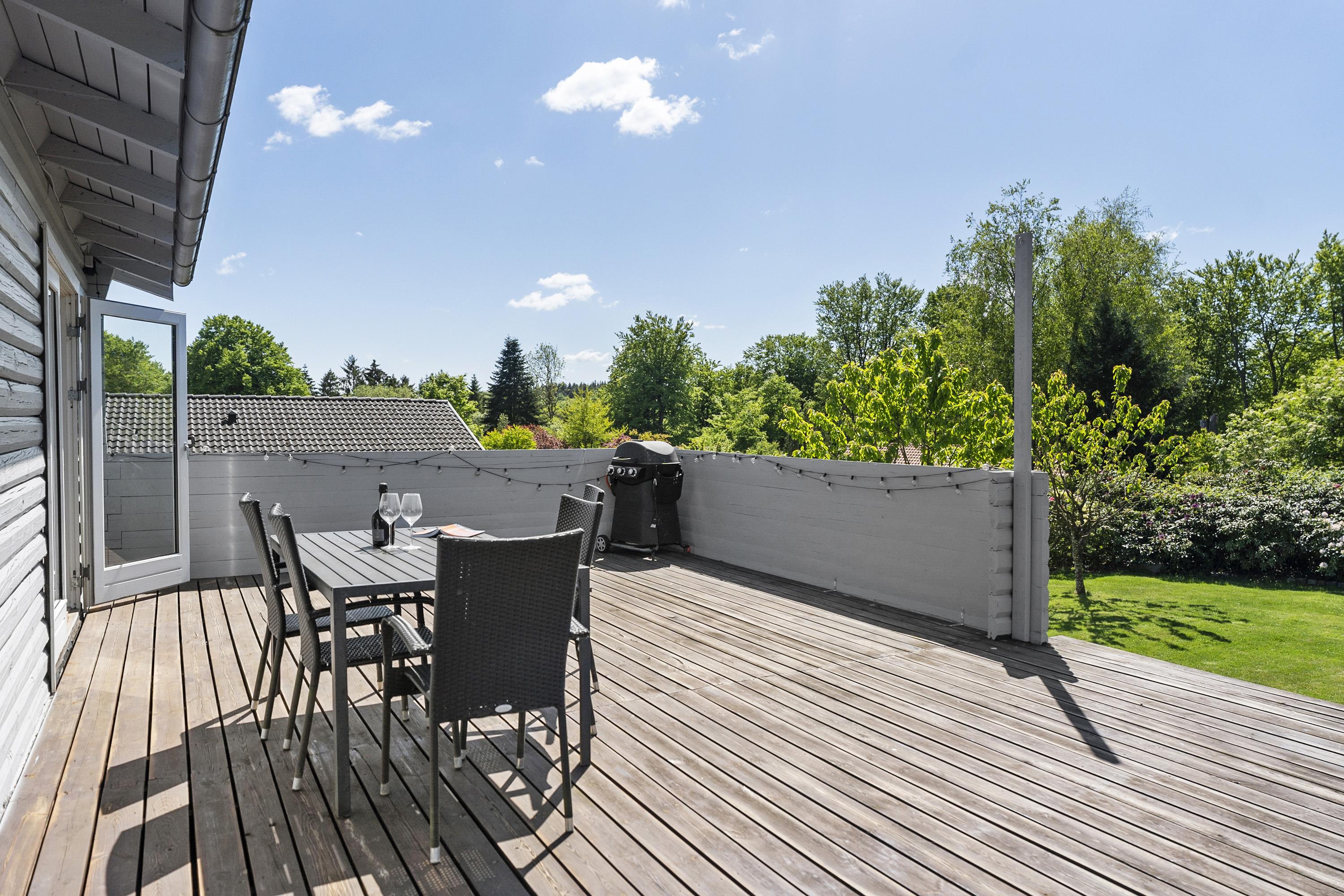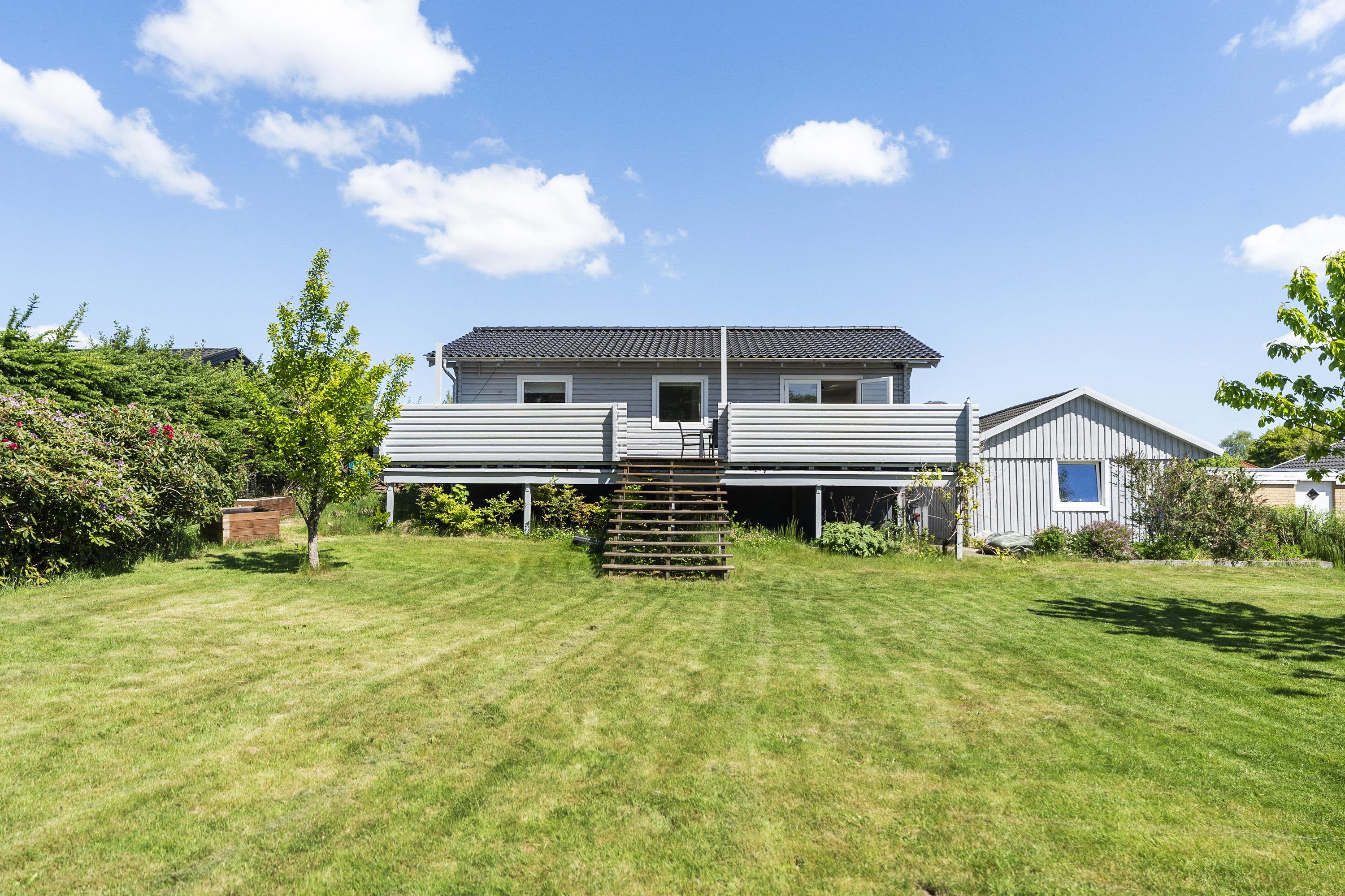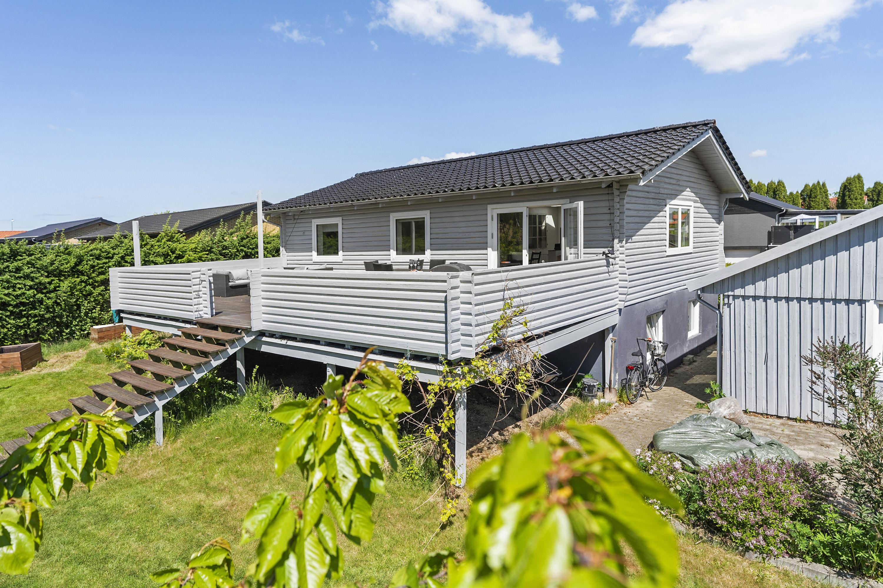 Hyggeligt gråt træhus – 164 etagemeter med masser af plads og skøn have