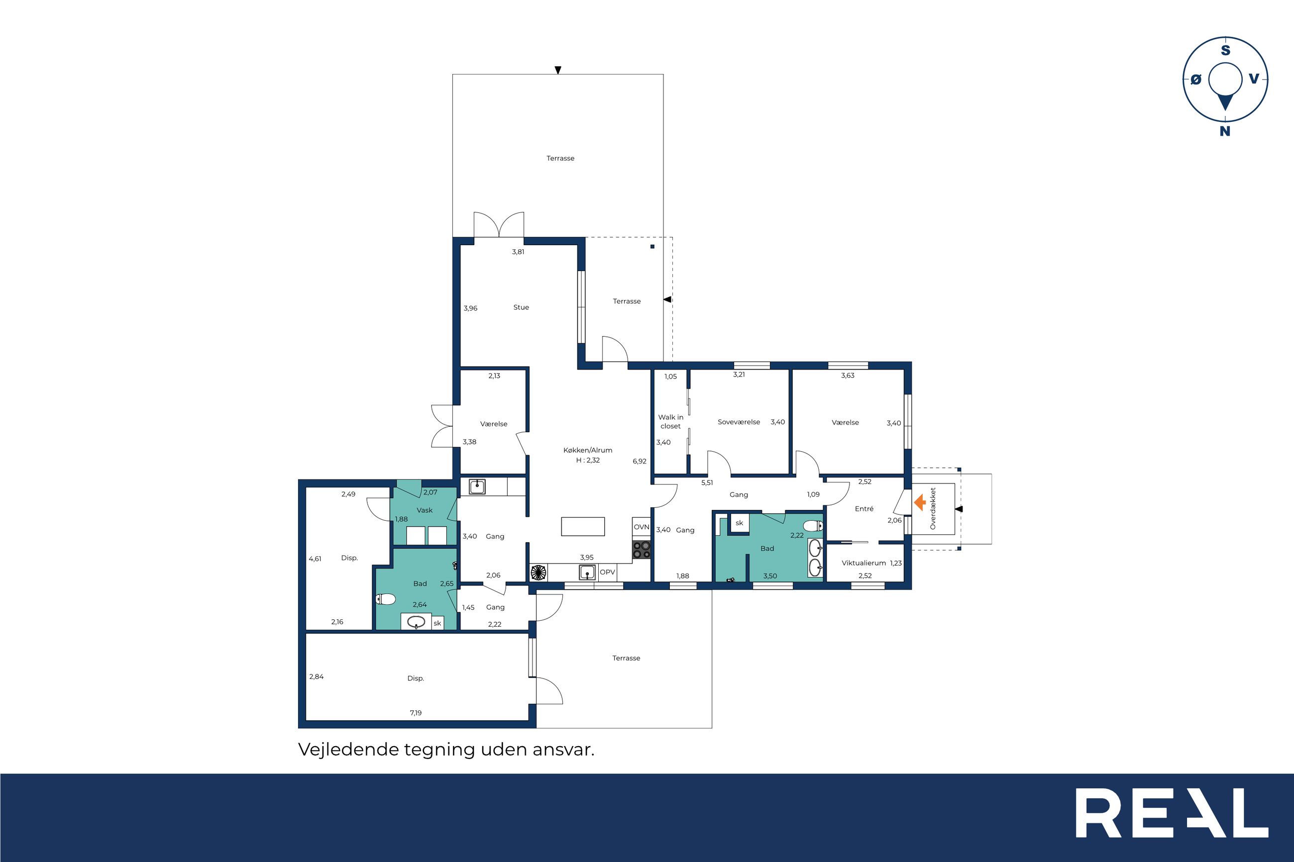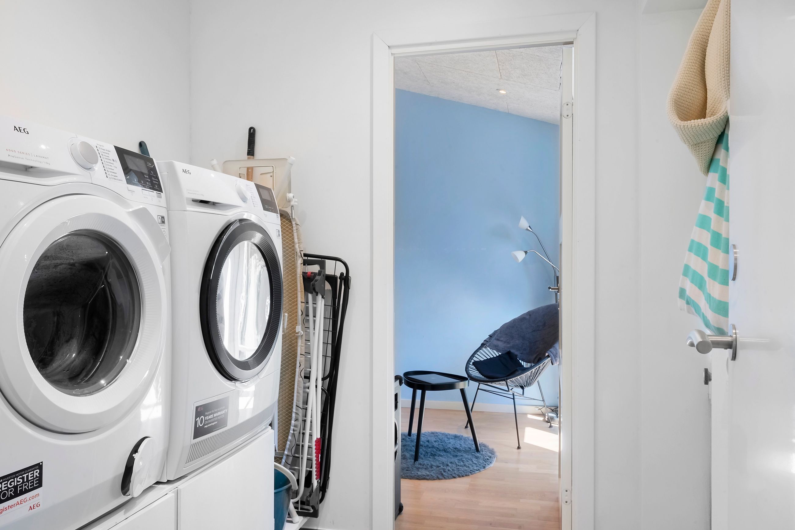 Hertil kommer et praktisk bryggers i udhusdelen, der understøtter boligens gode funktionalitet og hverdagens logistik.
