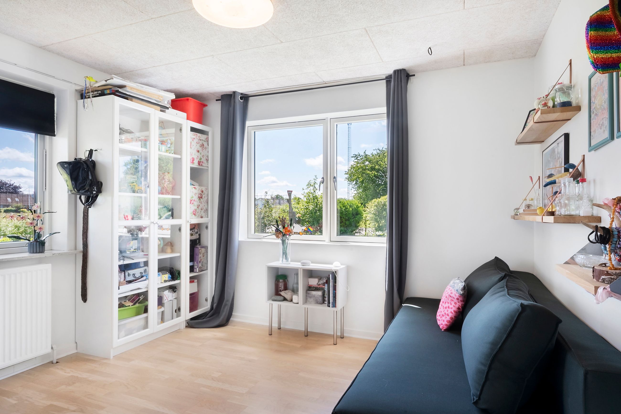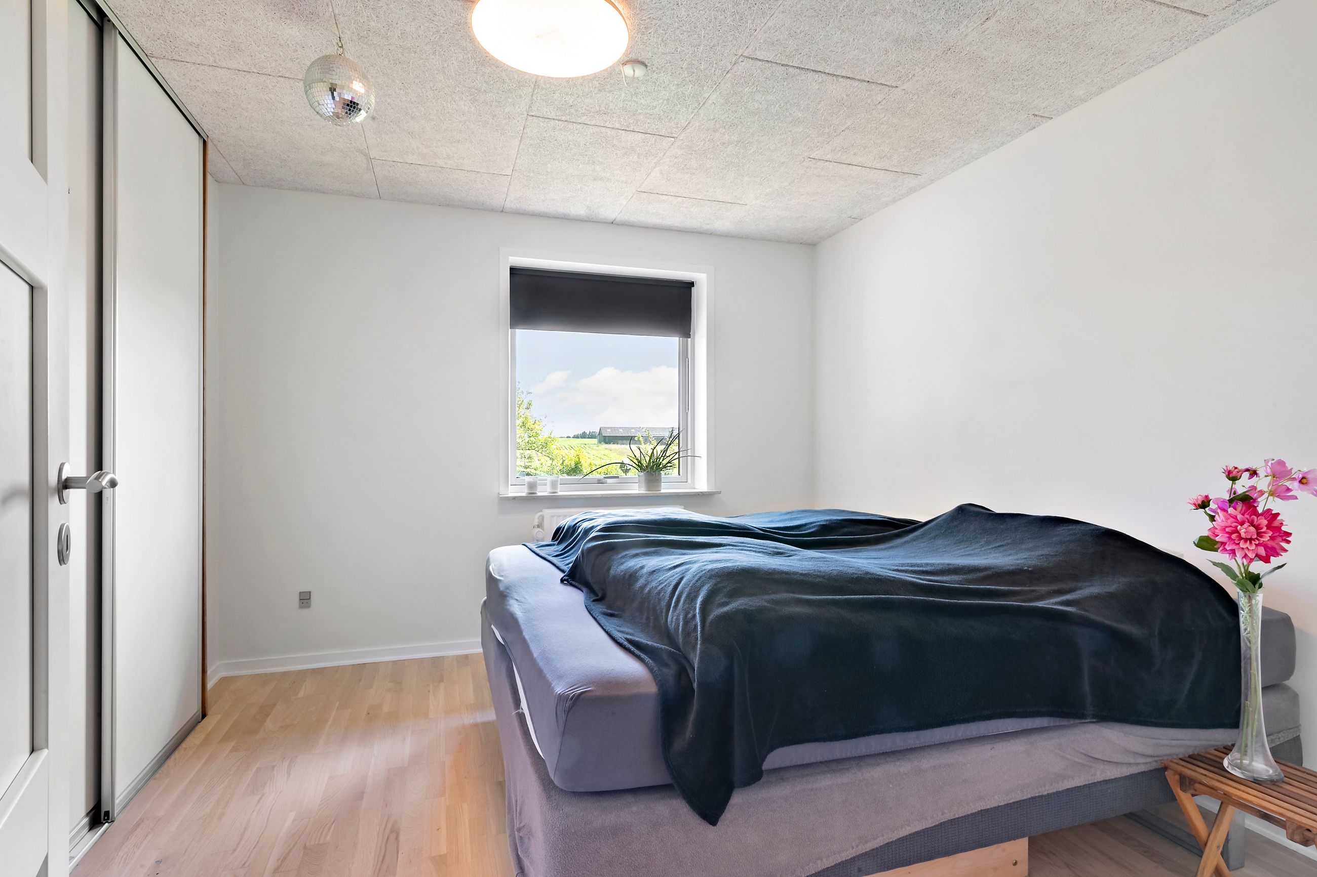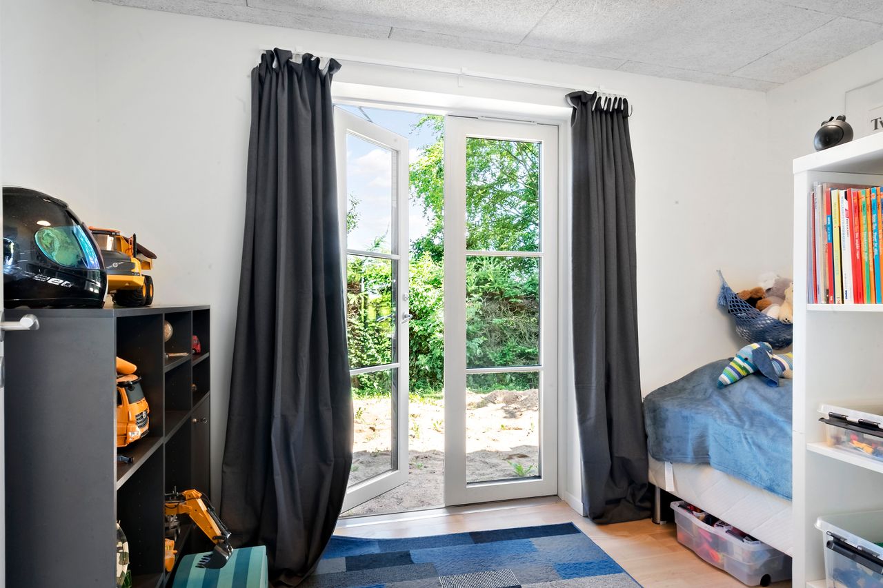 Boligen byder desuden på endnu et lyst værelse med udgang til haven samt et ekstra badeværelse med brus – ideelt til børnefamilien.