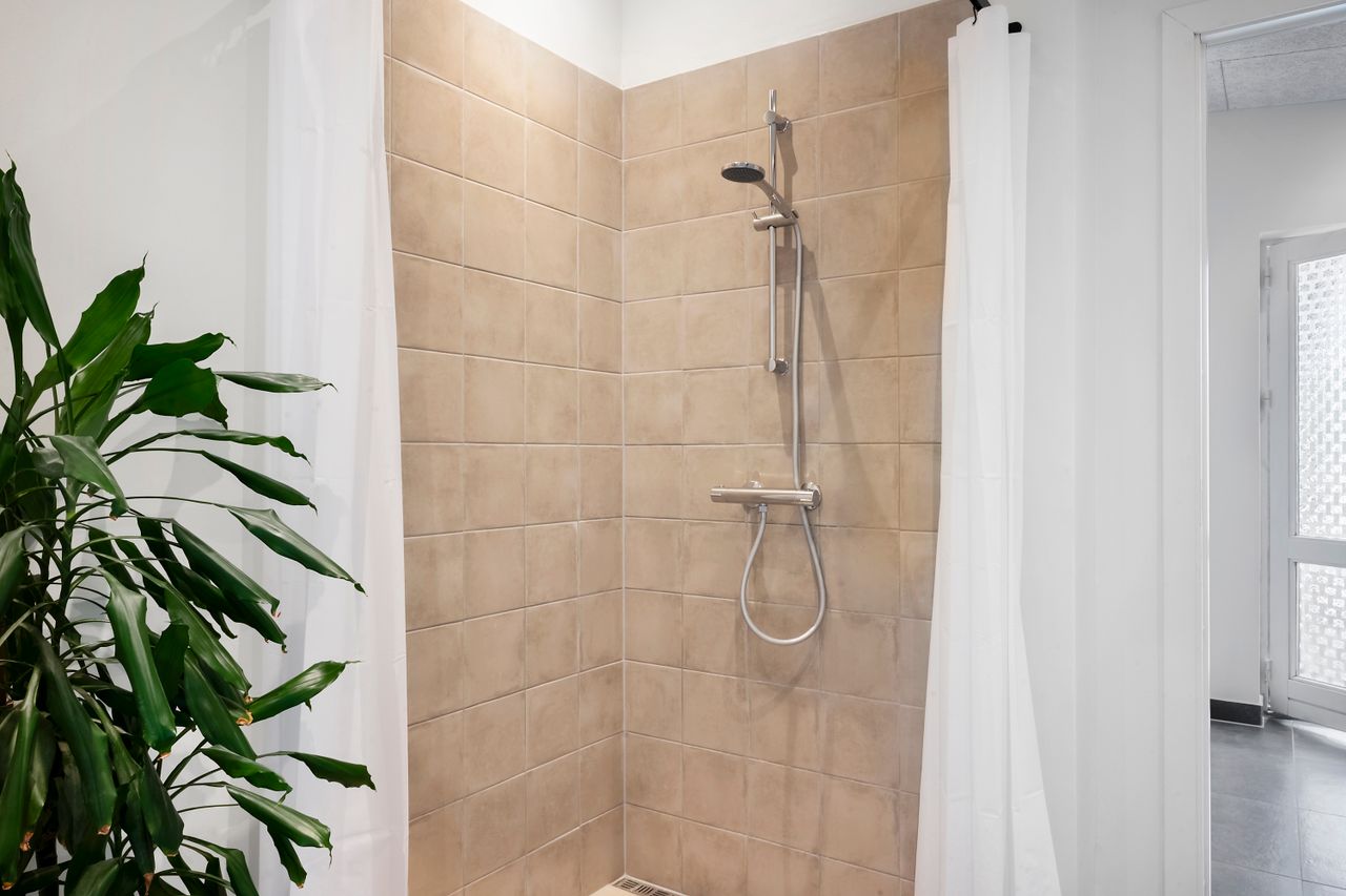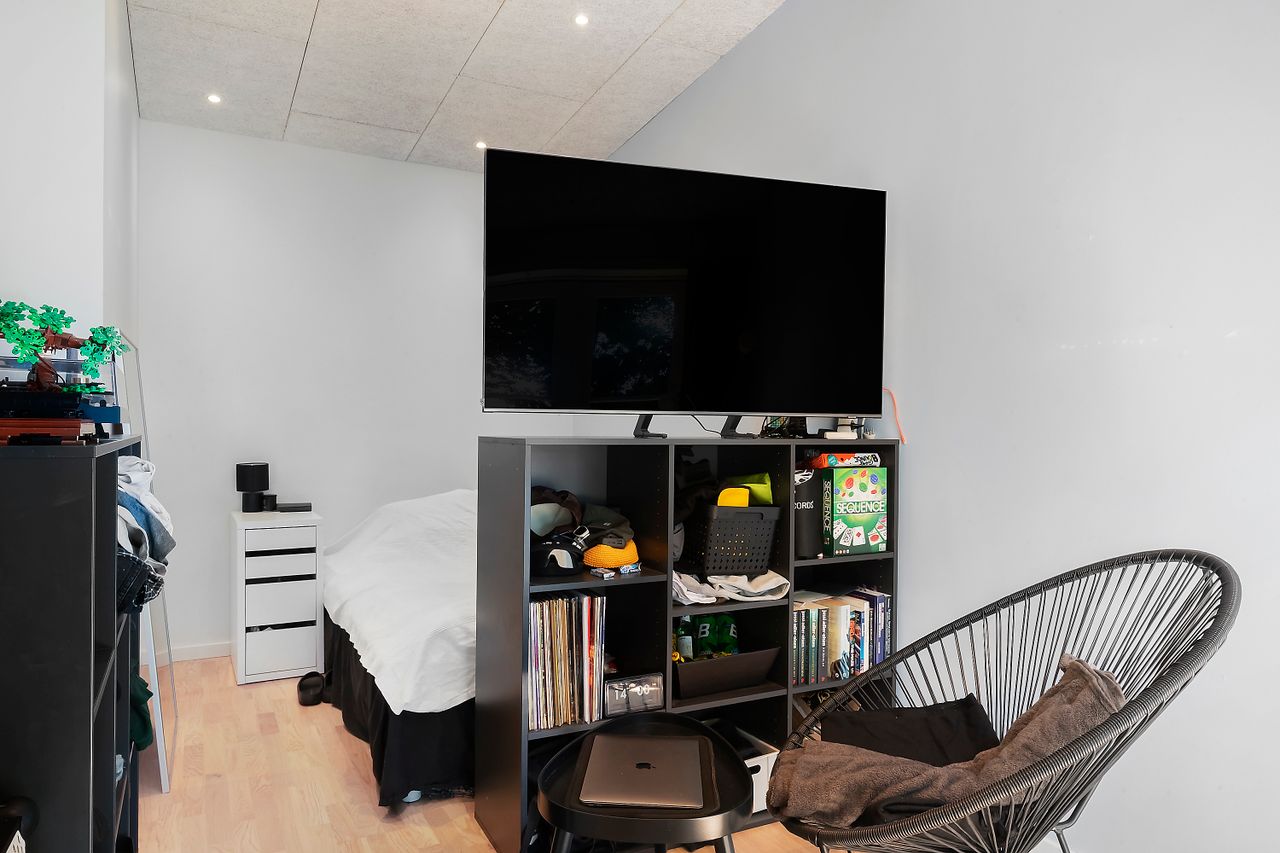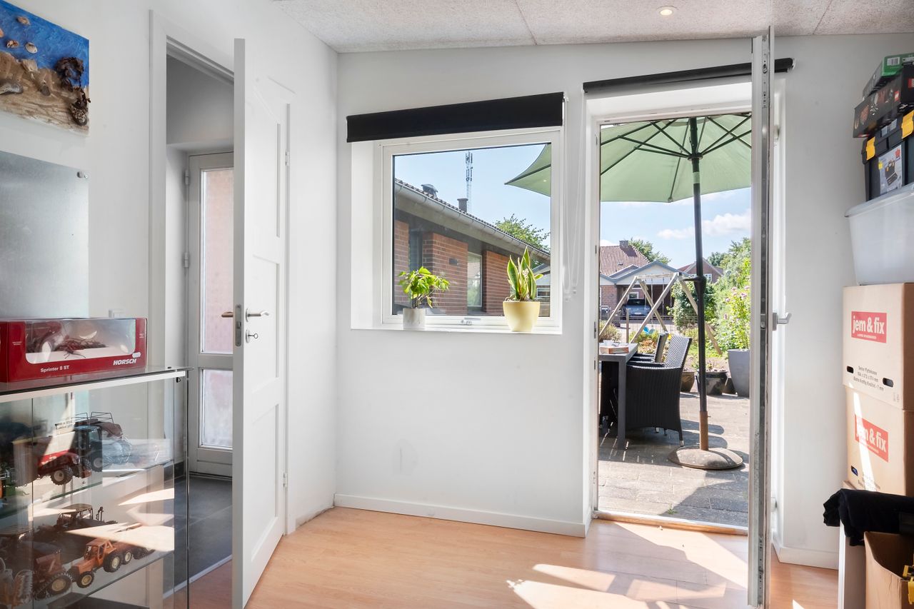 Boligen byder desuden på endnu et lyst værelse med udgang til haven samt et ekstra badeværelse med brus – ideelt til børnefamilien.