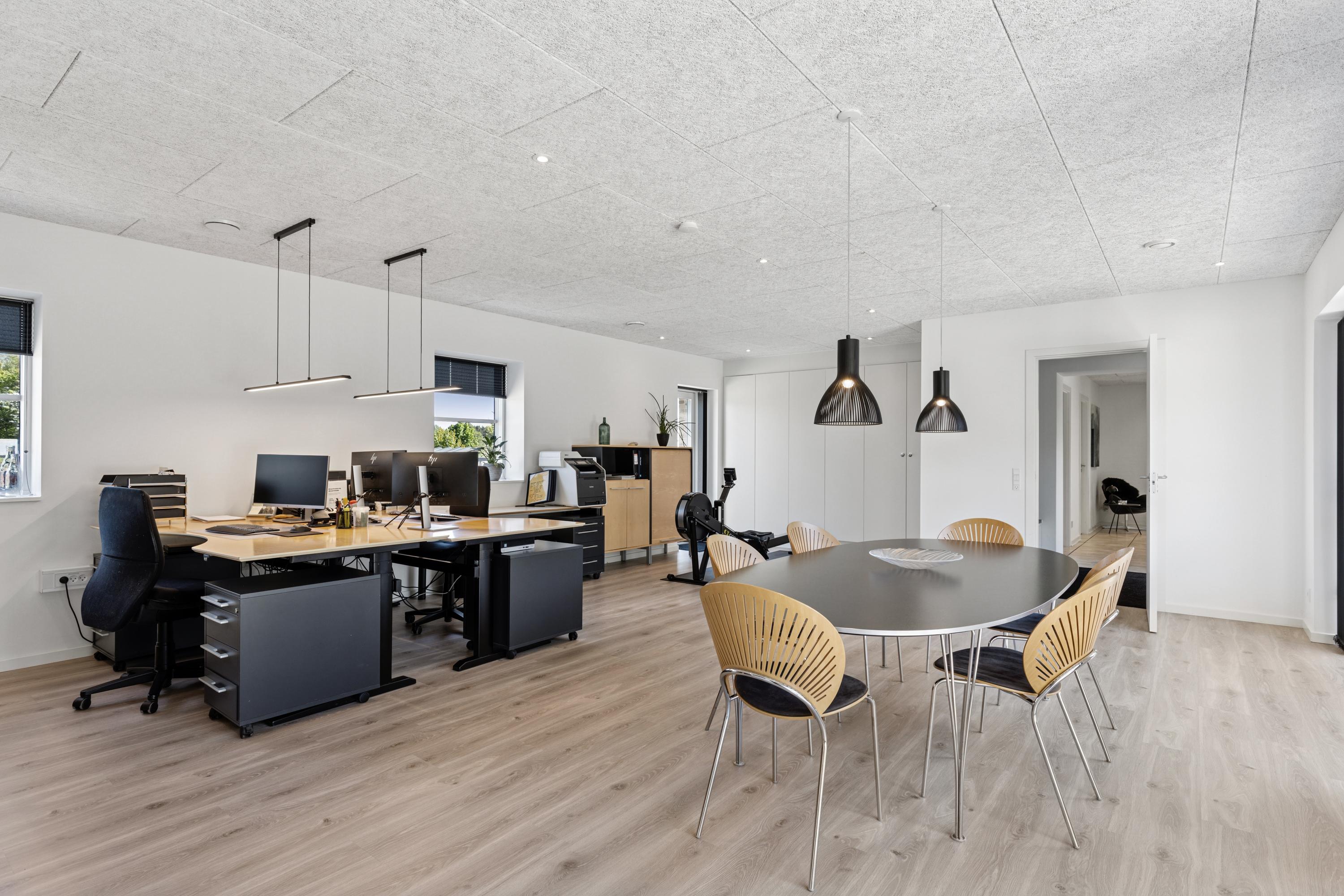 - Erhvervsareal: 647 m2 med kontorer, værksteder, lager, depotrum og en fantastisk gildesal