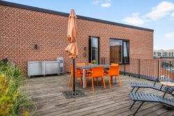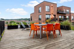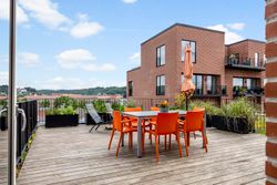 Men det er uden tvivl tagterrassen, der sætter prikken over i’et. Her er rigelig plads til både spisebord og loungemøbler, så du kan nyde solen hele dagen – hvad enten du vil samle vennerne til middag eller bare nyde et stille øjeblik for dig selv under åben himmel.