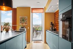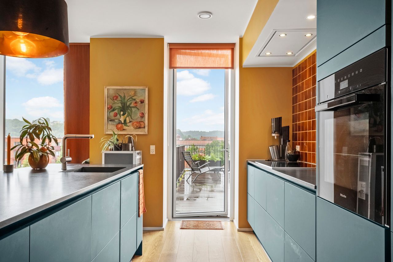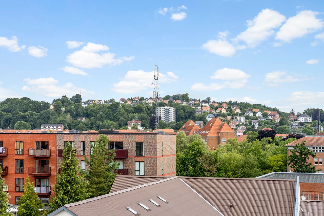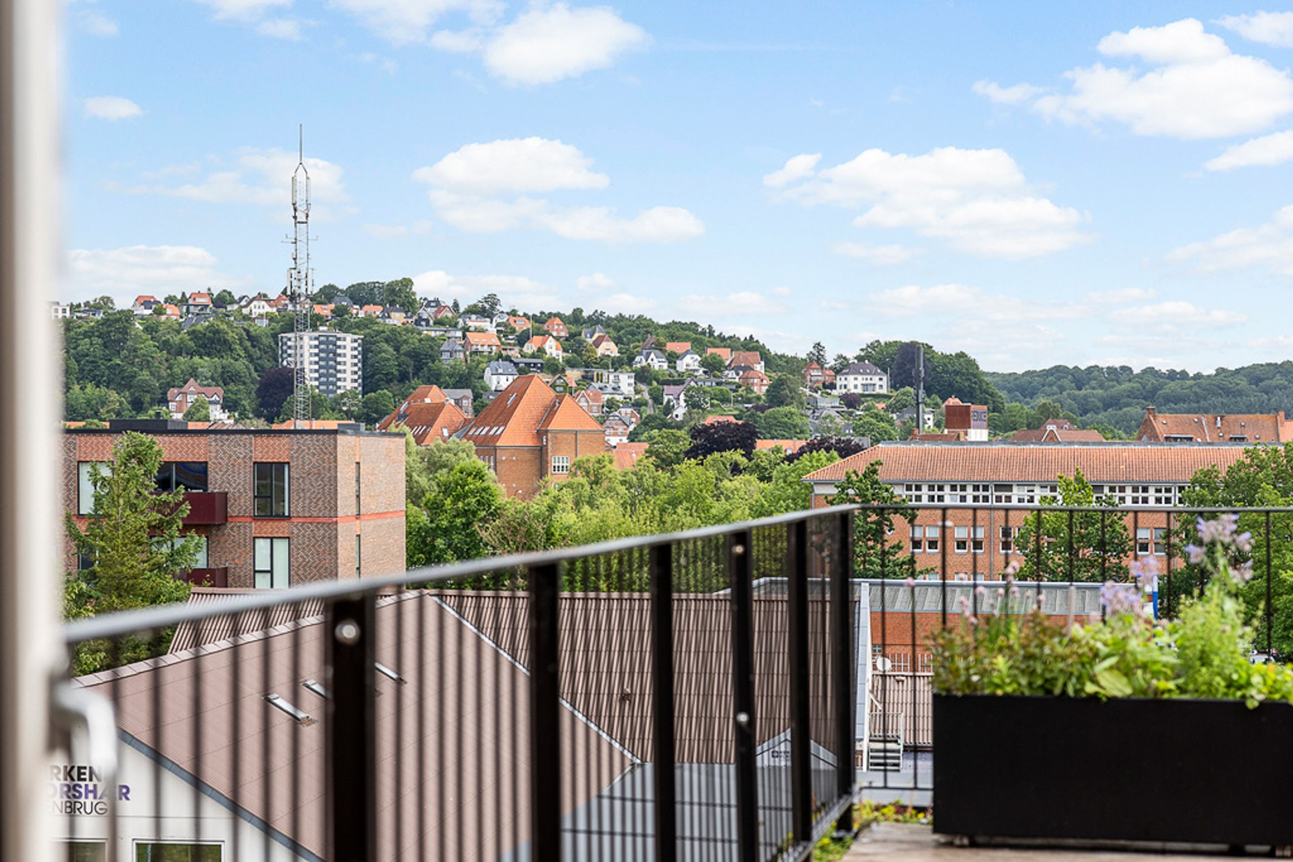 Forestil dig at starte dagen med en kop kaffe på din egen private tagterrasse, mens solen stille rammer trætoppene i parken og spejler sig i den nærliggende sø. Velkommen til Flegmade 9P, 3. sal – en lys og indbydende taglejlighed midt i Vejle, hvor hver kvadratmeter emmer af livskvalitet.