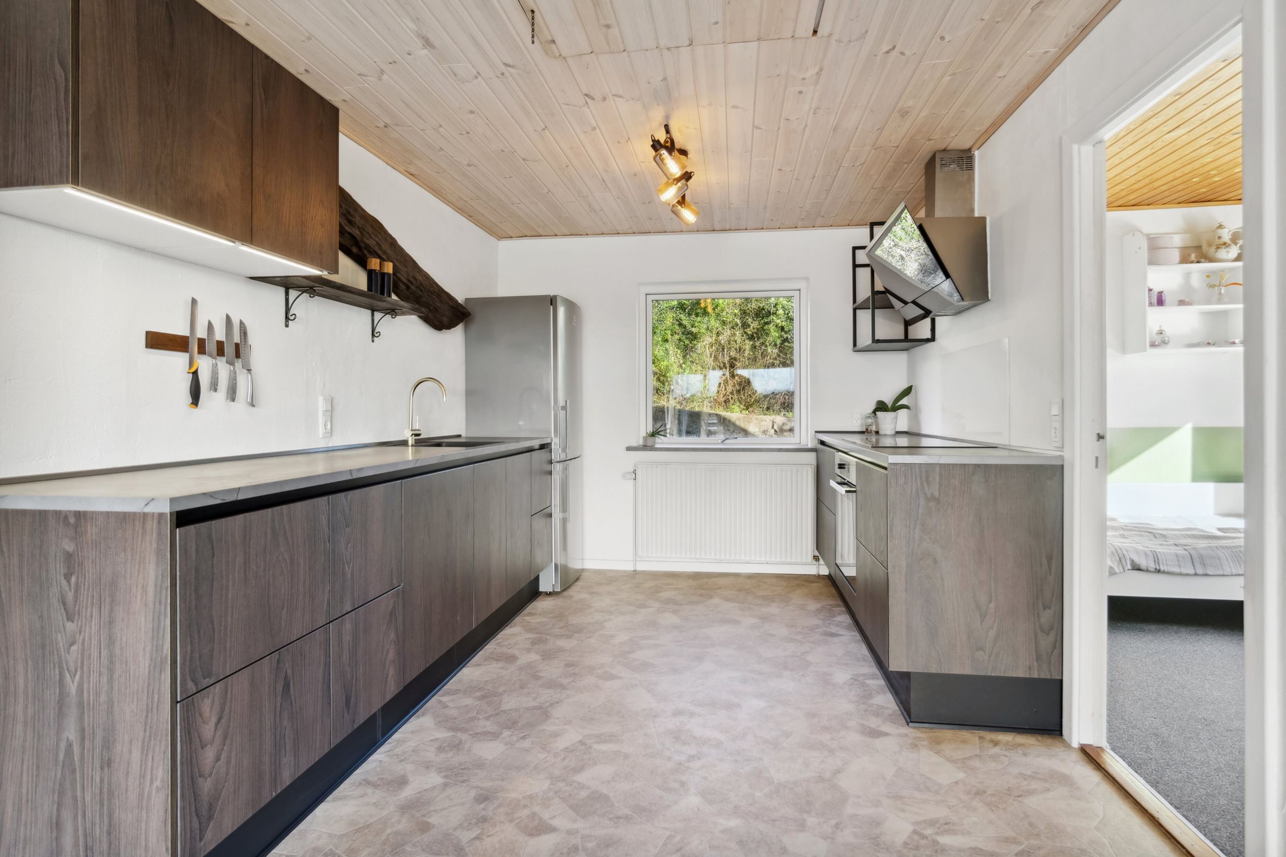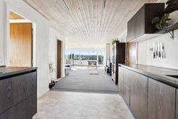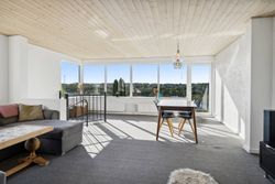 Indendørs bydes du velkommen af et lyst og indbydende køkken-alrum, hvor de store vinduespartier trækker den fantastiske udsigt helt ind i rummet. Køkkenet er moderne og stilfuldt, og alrummet glider naturligt over i den rummelige stue med plads til både hverdag og gæster.