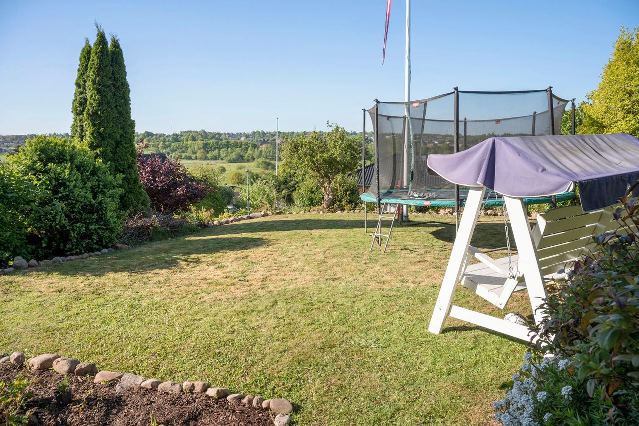 Haven er nem at holde og vender perfekt mod syd, så du får sol det meste af dagen. Der er god plads til både leg, afslapning og hyggelige stunder – alt sammen med udsigt som lærred i baggrunden.