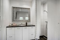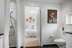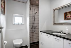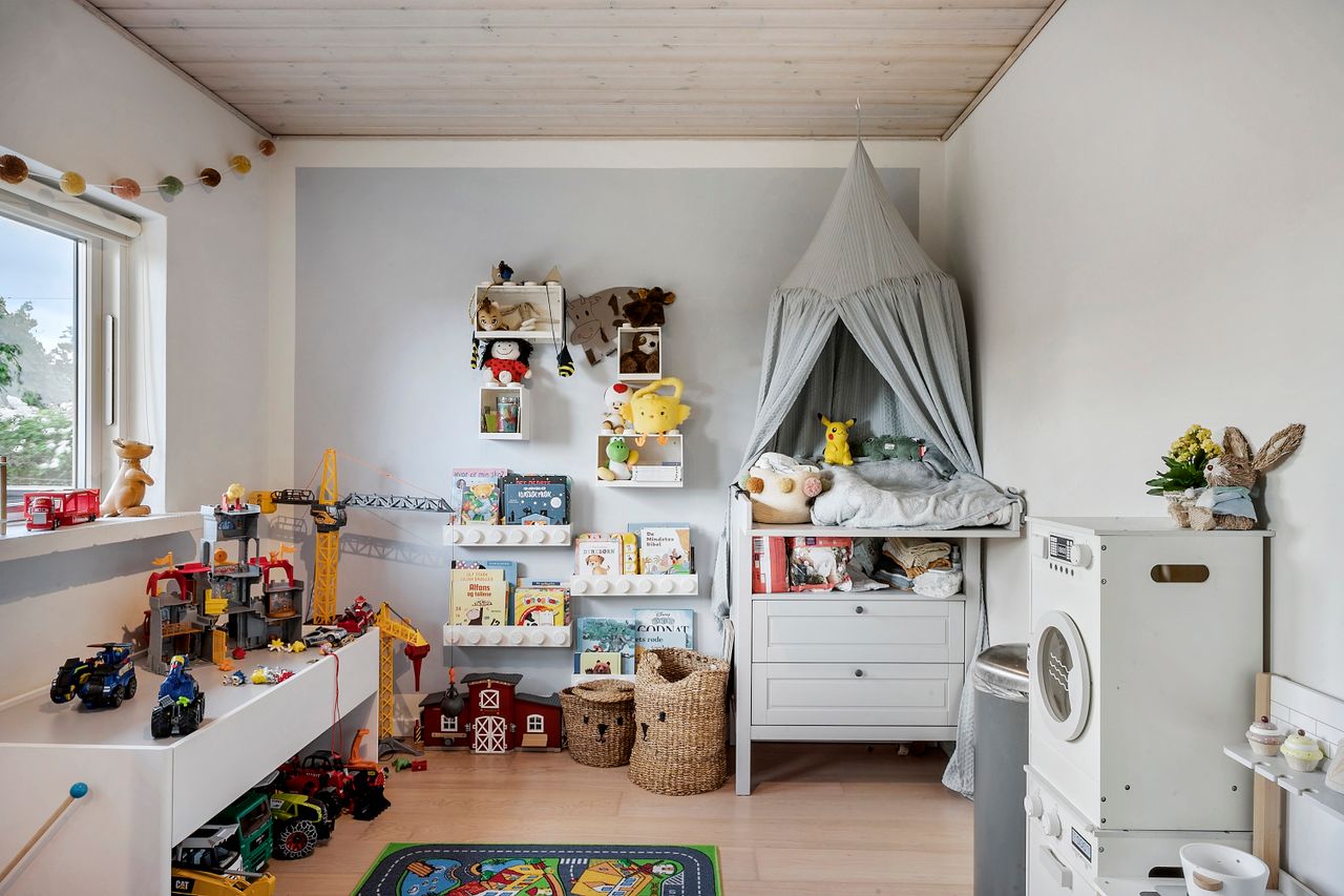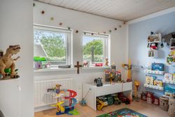 Børnene får deres egen afdeling med to gode værelser og endnu et badeværelse i samme stil som det andet. Her er mulighed for at lukke døren ud til køkken-alrummet, når der skal være ro – eller når teenagerne larmer lidt for meget.