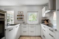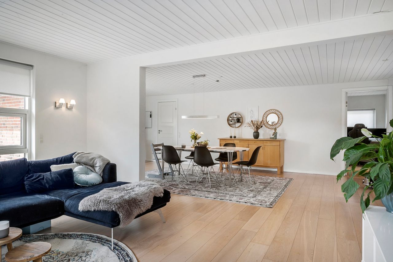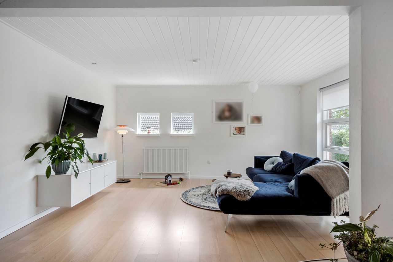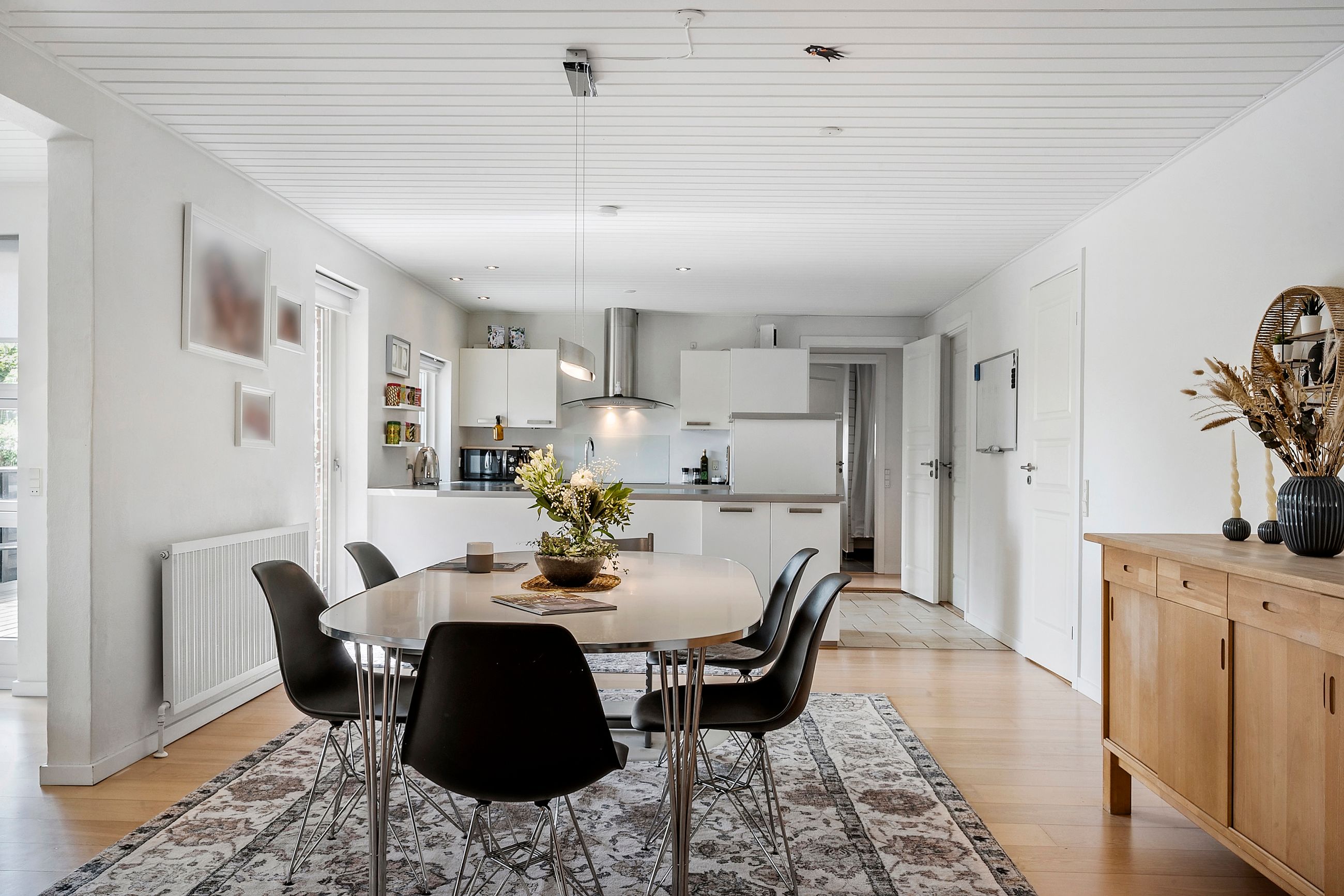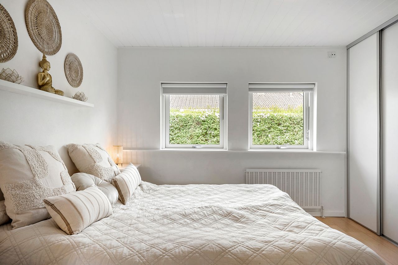 Villaen fra 1983 rummer alt, hvad familien behøver – samlet på ét plan. Det centrale samlingspunkt i hjemmet er det lyse og moderne køkken-alrum, hvor der er god plads til både madlavning og familieliv. Herfra er der adgang til forældreafdelingen, som består af et rummeligt soveværelse med god skabsplads og eget badeværelse i moderne stil. I forlængelse heraf ligger et praktisk kontor, som også kan tilgås fra stuen – perfekt til hjemmearbejde eller lektielæsning.