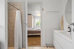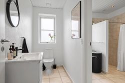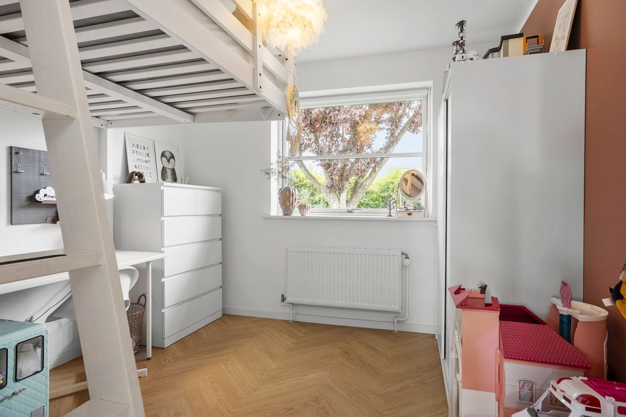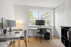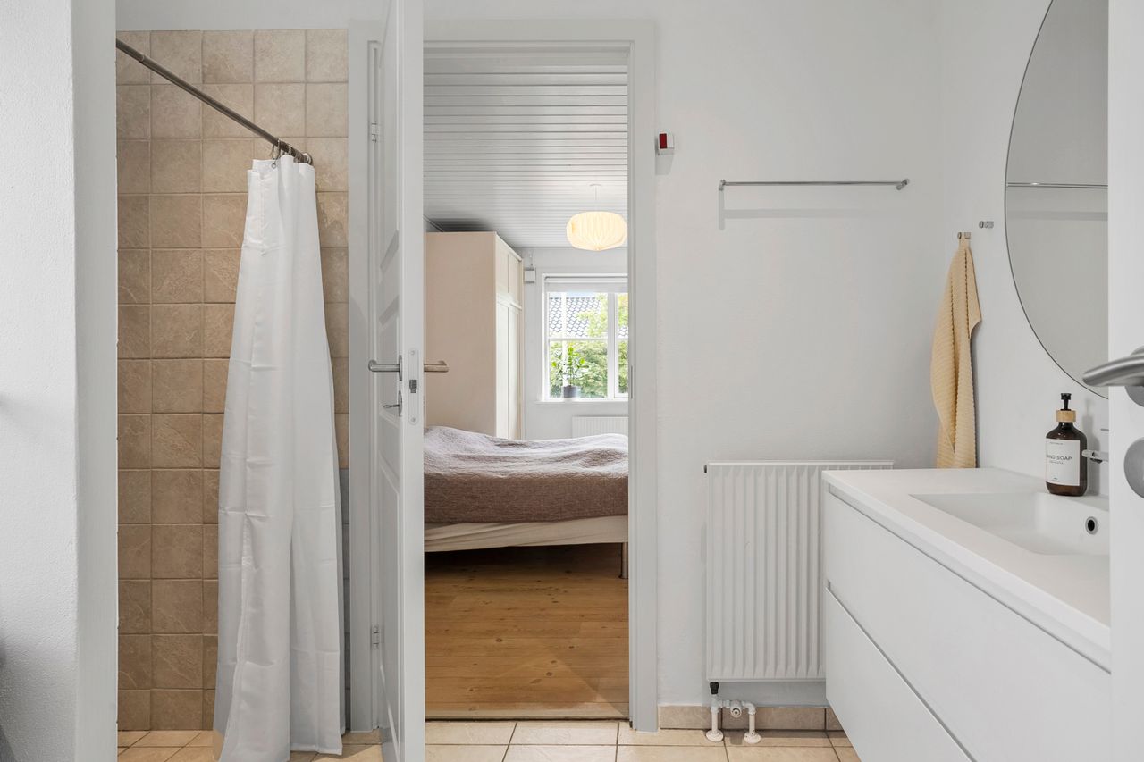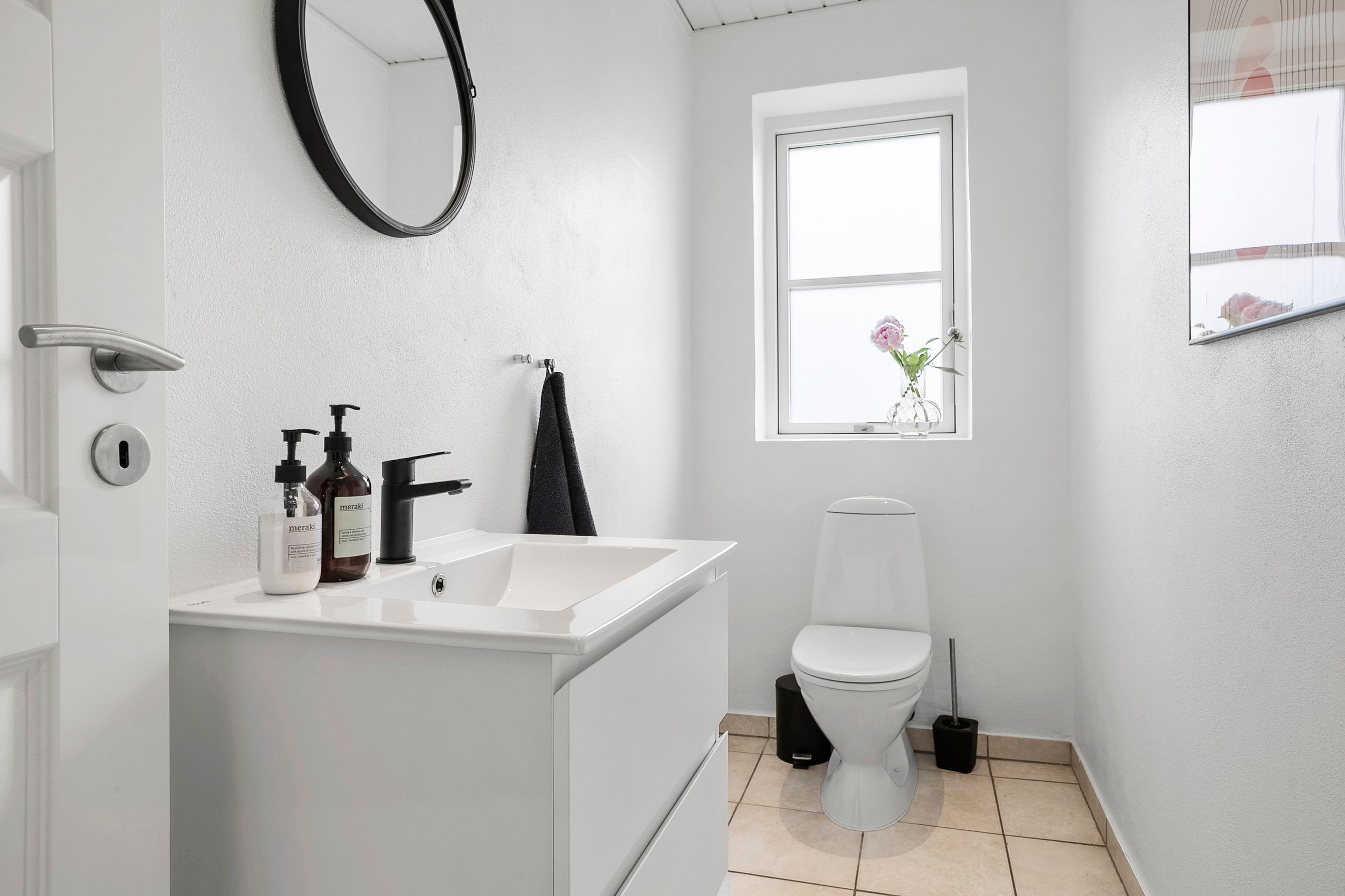 Planløsningen er gennemtænkt og velfungerende. Fra leverummet er der adgang til to gode børneværelser og et rummeligt forældresoveværelse med eget badeværelse – praktisk forbundet med boligens gæstetoilet. Derudover får I et ekstra værelse, som i dag bruges til kontor med indbygget skab, perfekt til hjemmearbejde eller hobbyaktiviteter.