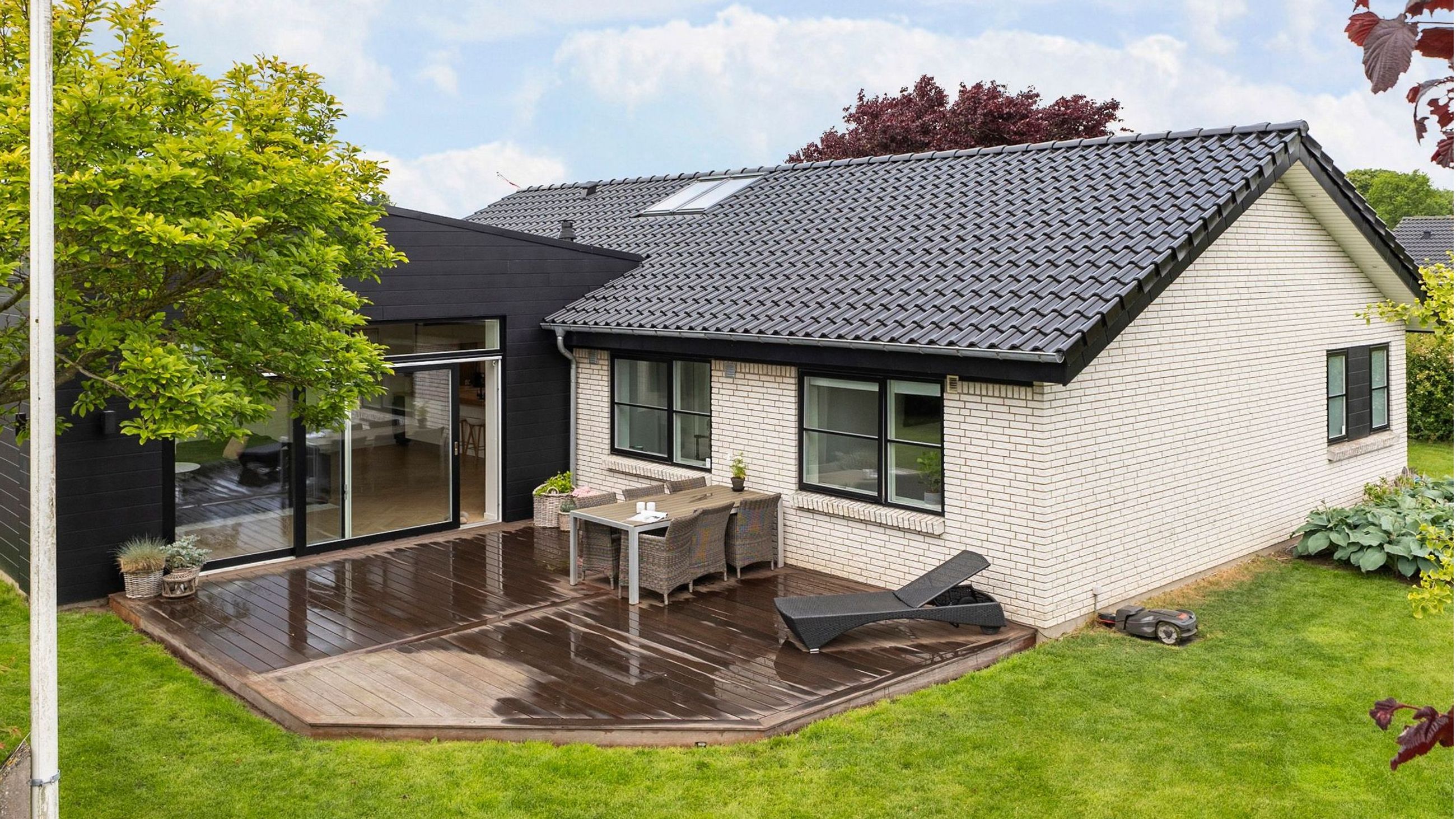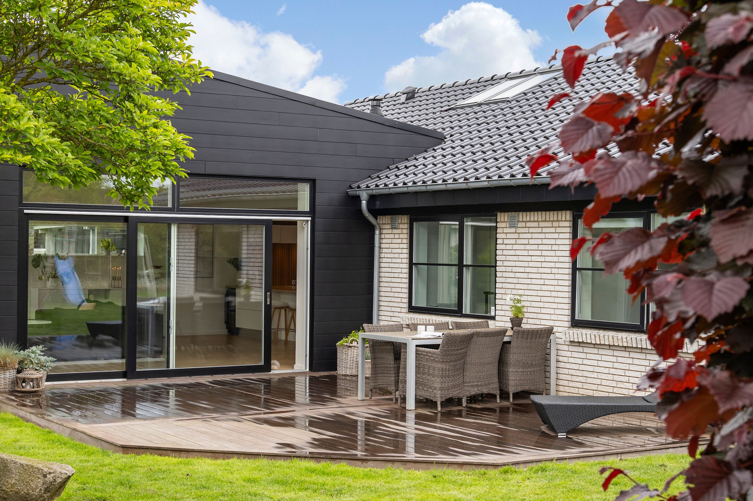 Villaen er opført i ét plan og blev i 2018 gennemgribende moderniseret med en stilfuld tilbygning.