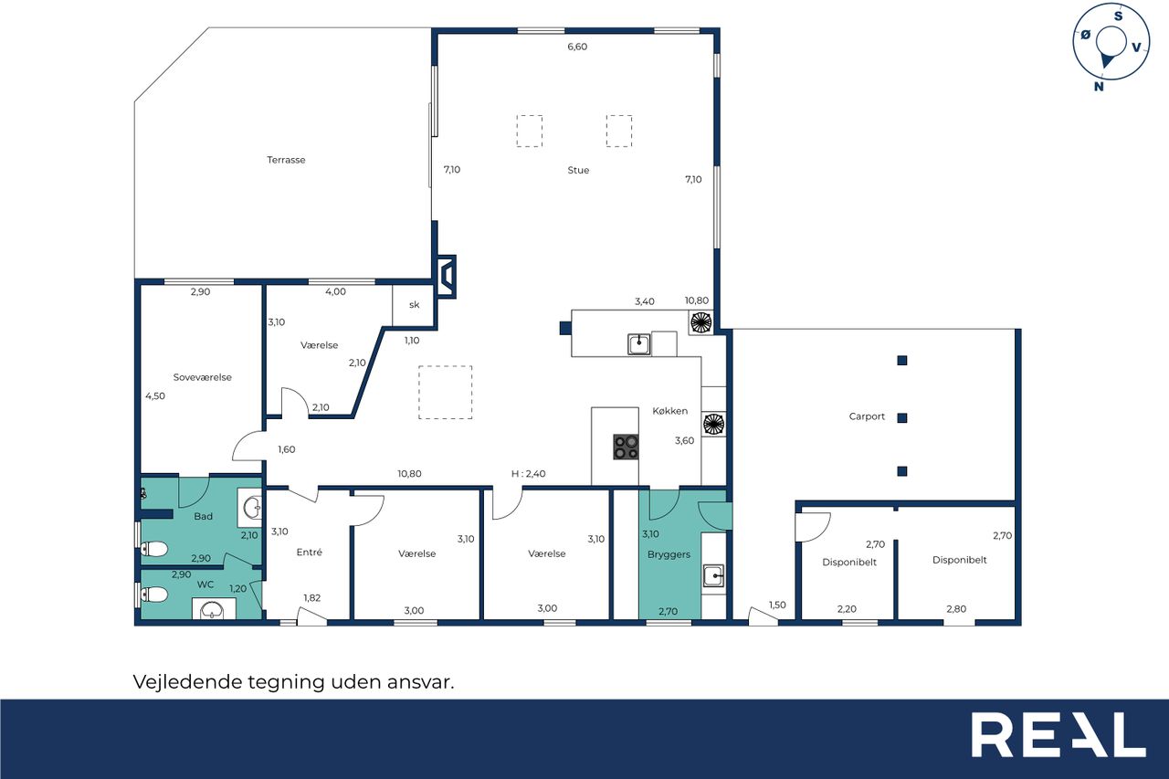 Til ejendommen hører også en carport samt et disponibelt rum med mange anvendelsesmuligheder – f.eks. til opbevaring, værksted eller hobbyrum.